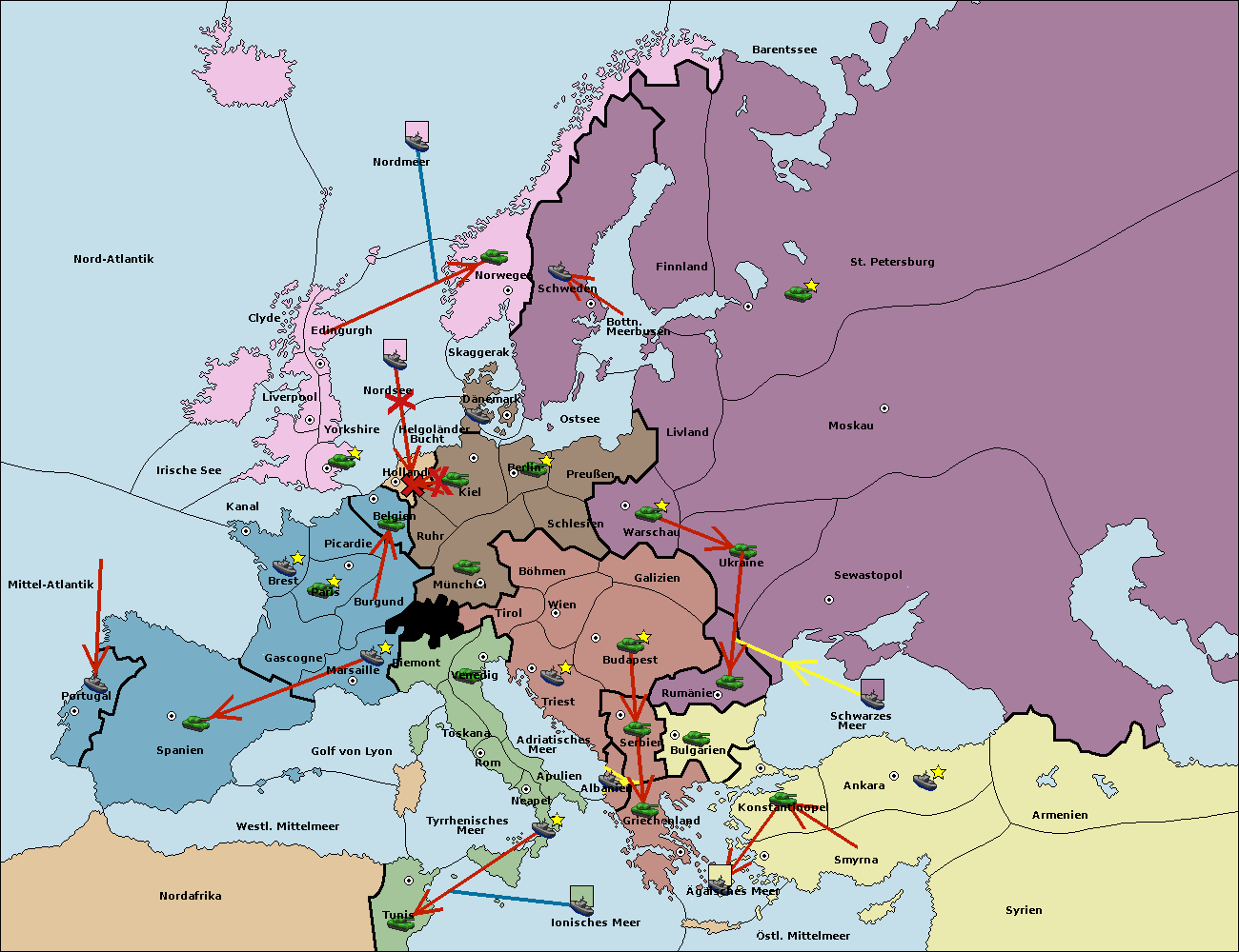 • Die Flotte in Nordsee move nach Holland. (gescheitert)