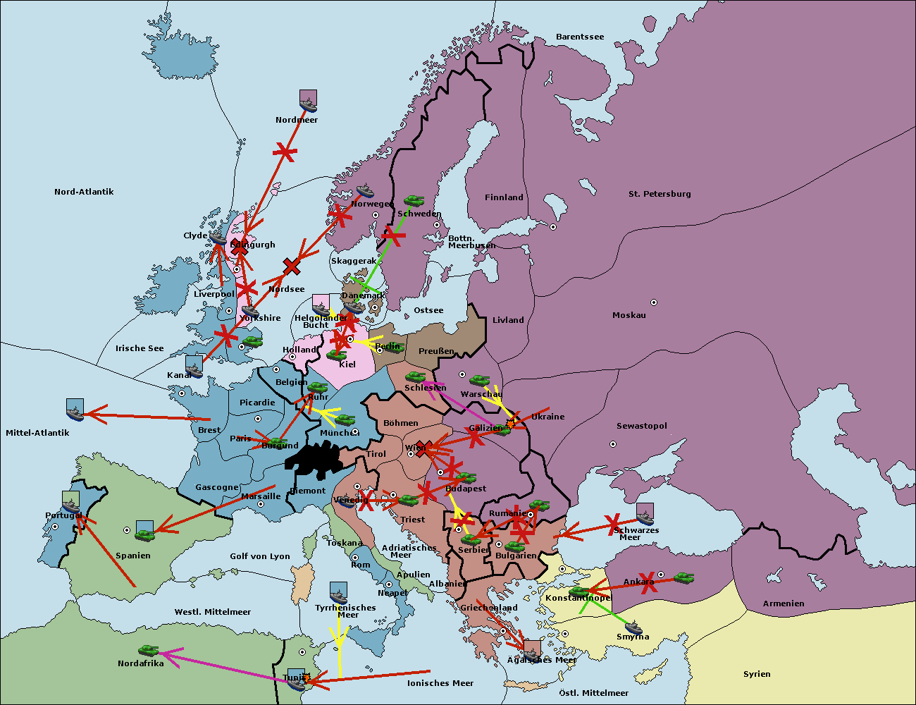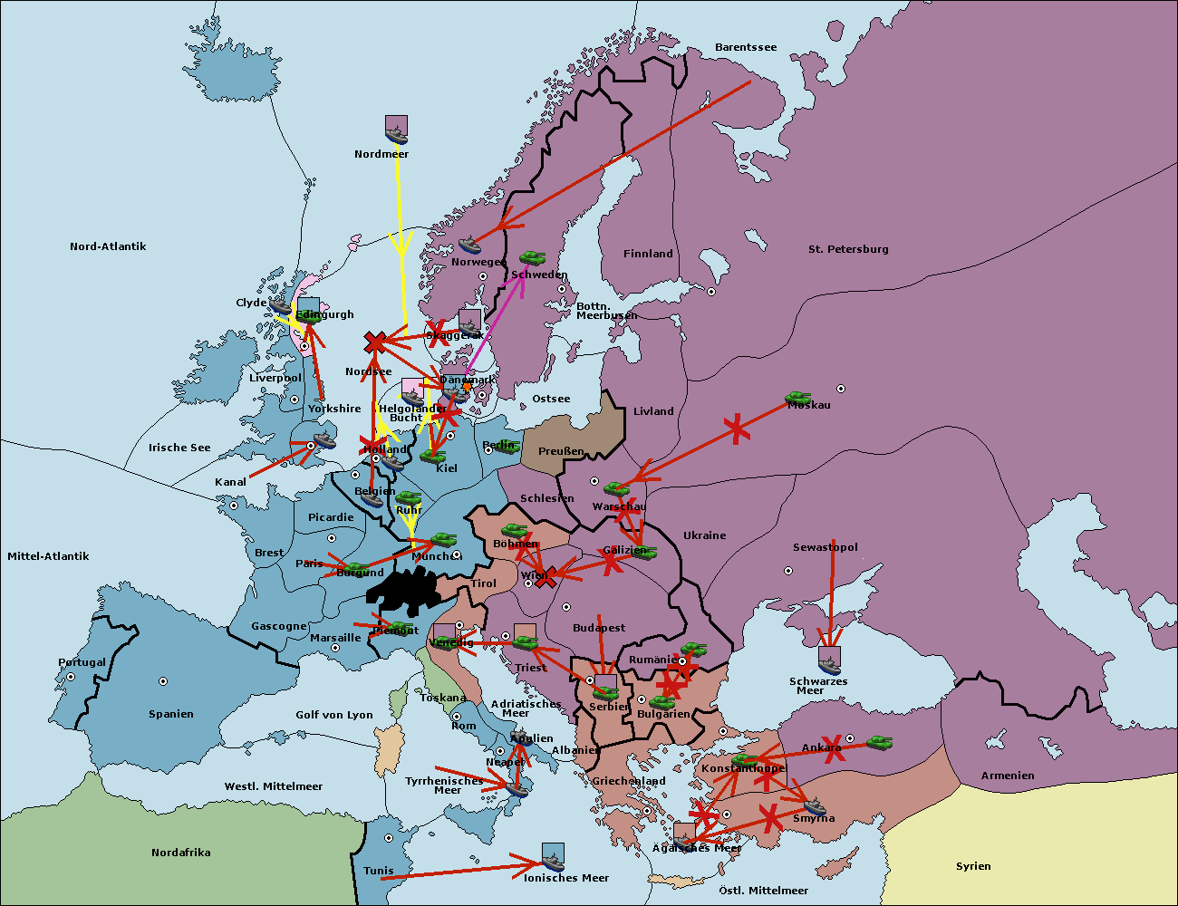 • Die Armee in Triest support move nach Serbien von Bulgarien. (gescheitert)