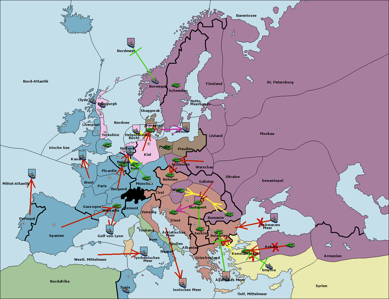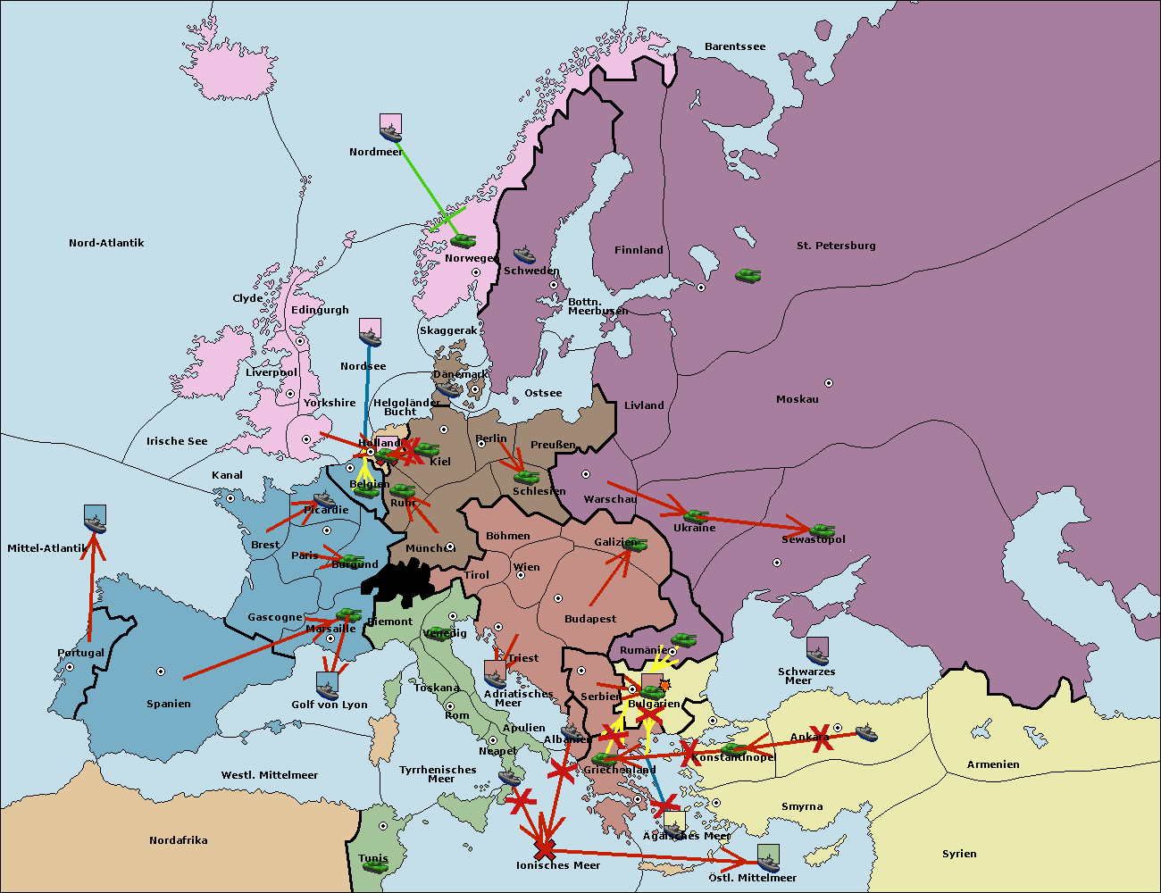 • Die Armee in Bulgarien wird zerstörtFlotte in Bulgarien gebaut.
