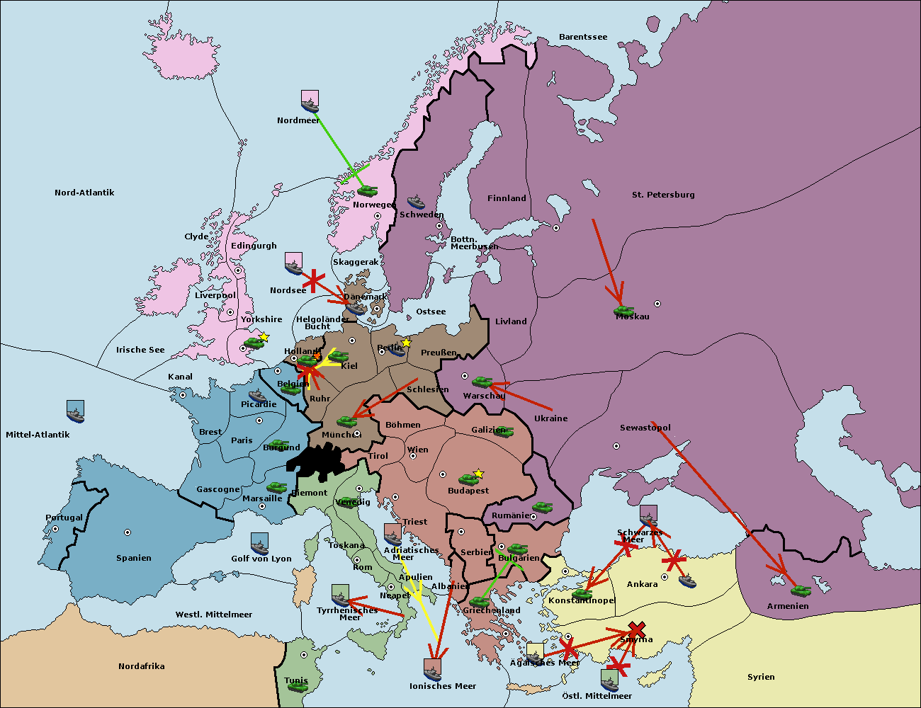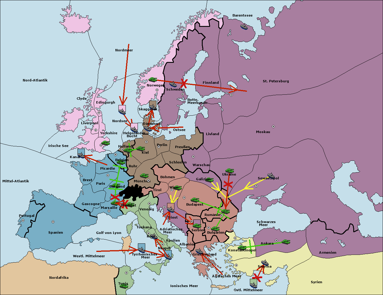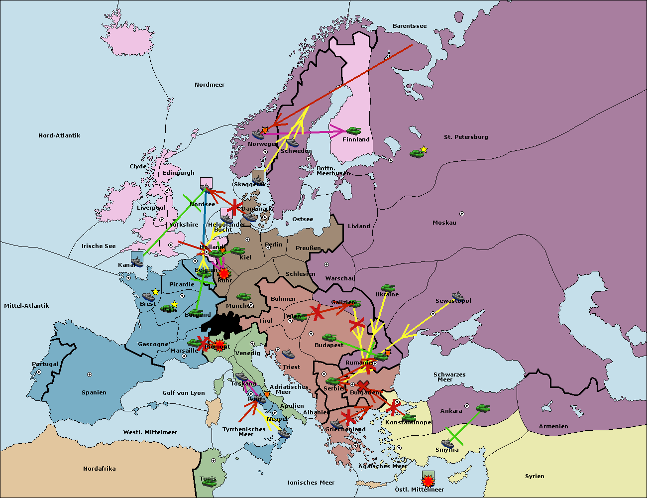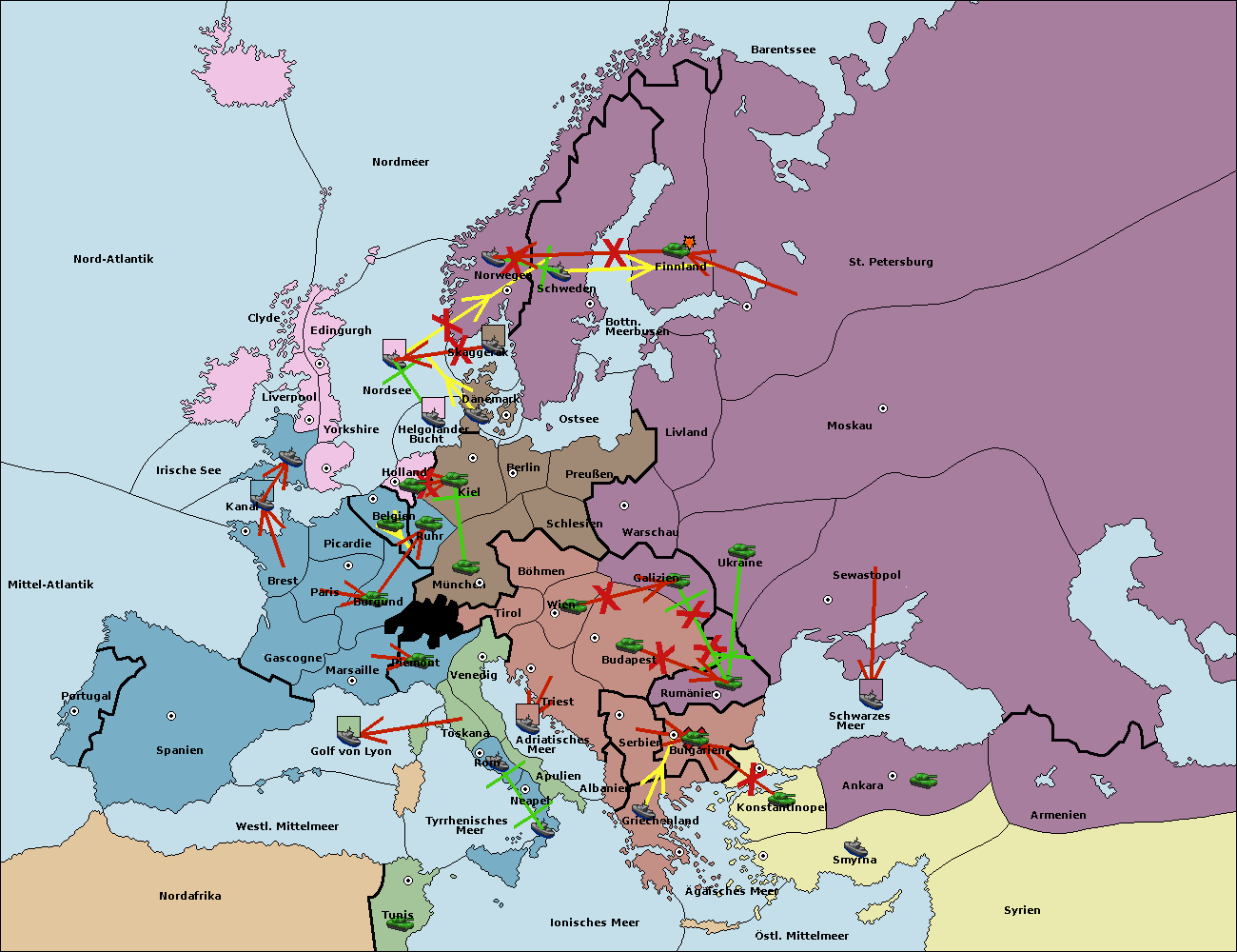 • Die Flotte in St. Petersburg (Nordküste) move nach Norwegen.