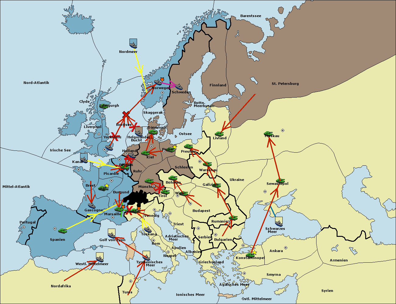 • Die Flotte in Nord Afrika move nach westl. Mittelmeer.