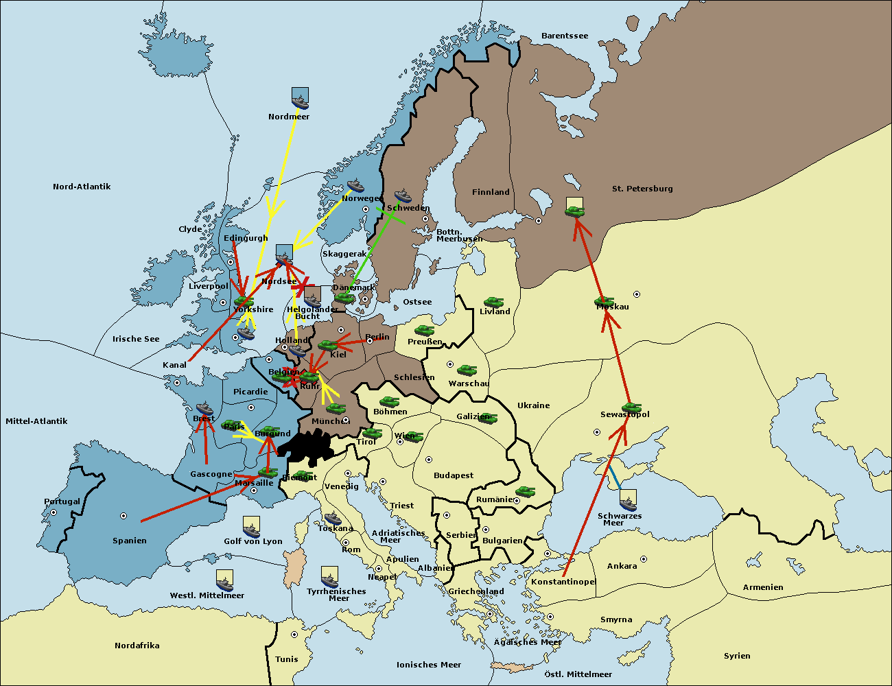 • Die Flotte in Holland support move nach Belgien von Ruhr. (gescheitert)