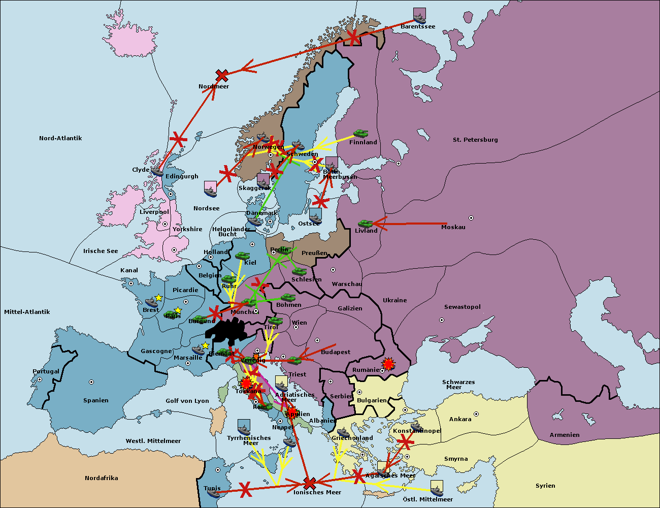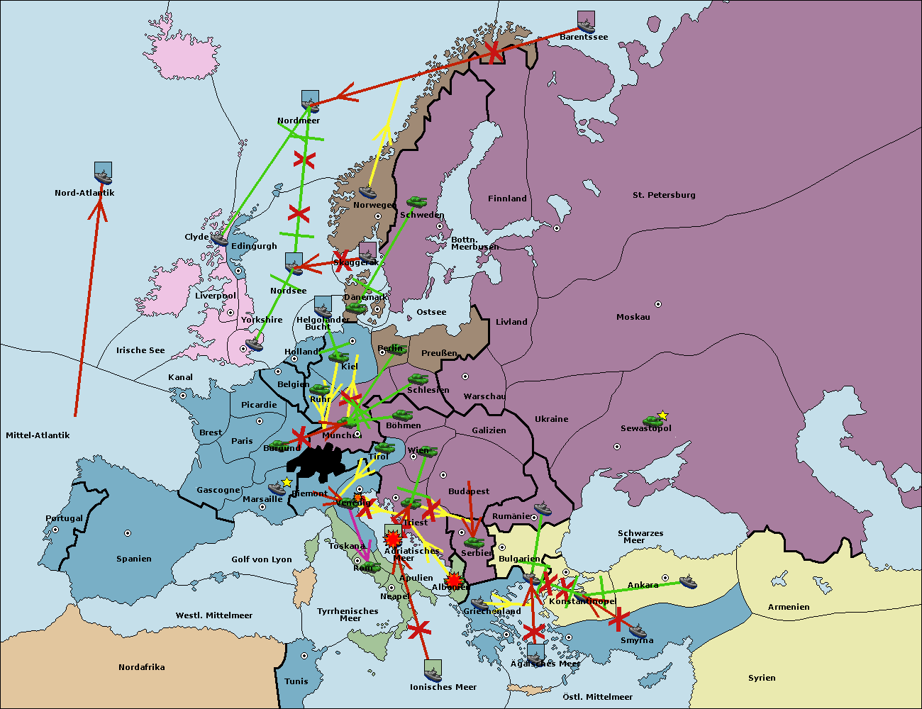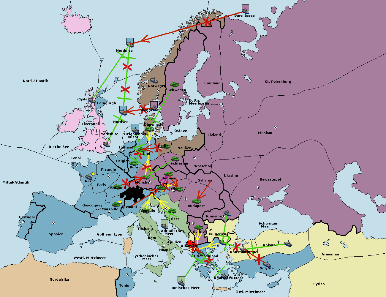 • Die Flotte in Schwarzes Meer support move nach Bulgarien von Konstantinopel. (gescheitert)