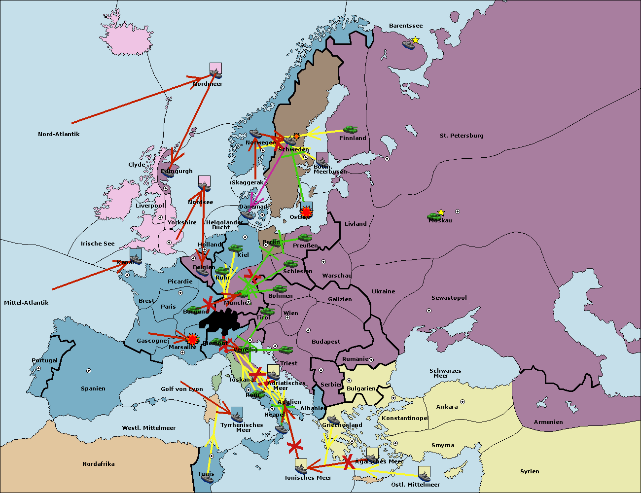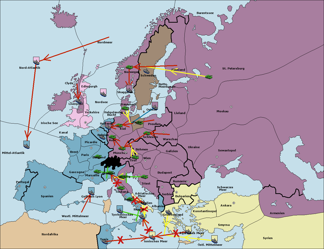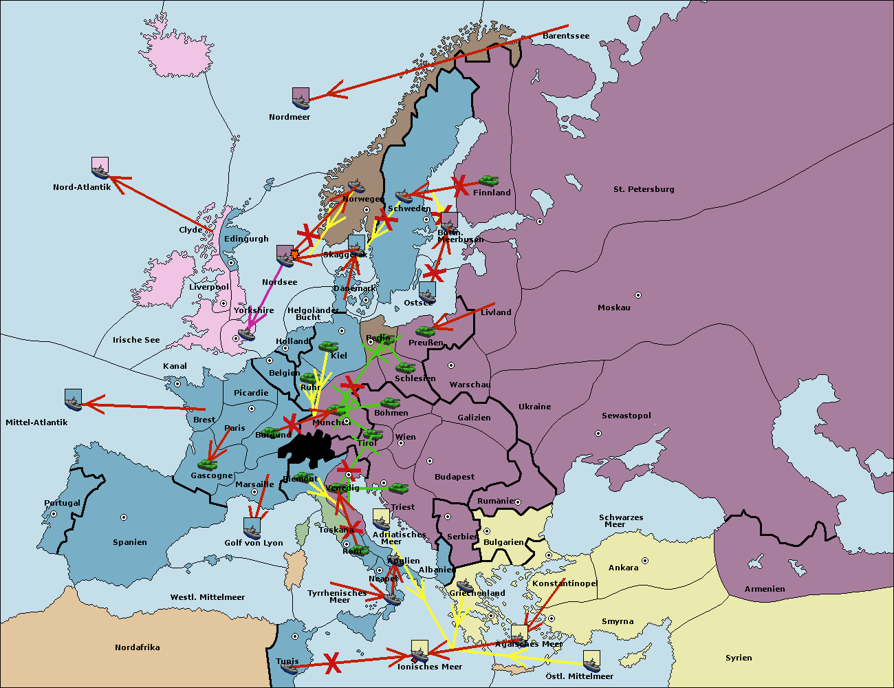 • Die Flotte in Schwarzes Meer support move nach Bulgarien von Konstantinopel. (gescheitert)