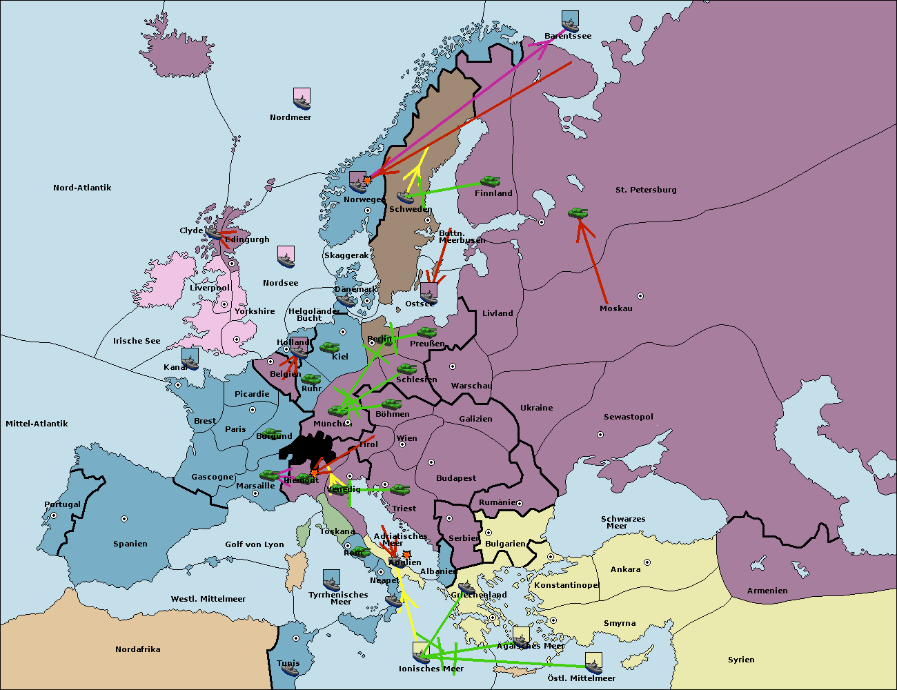 • Die Armee in St. Petersburg move nach Norwegen. (gescheitert)