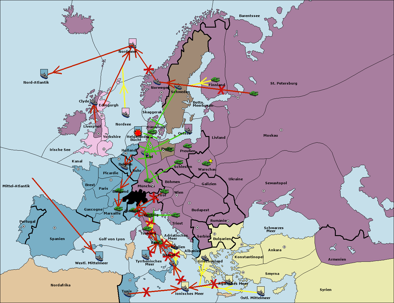 • Die Flotte in Nordsee move nach Helgoländer Bucht. (gescheitert)