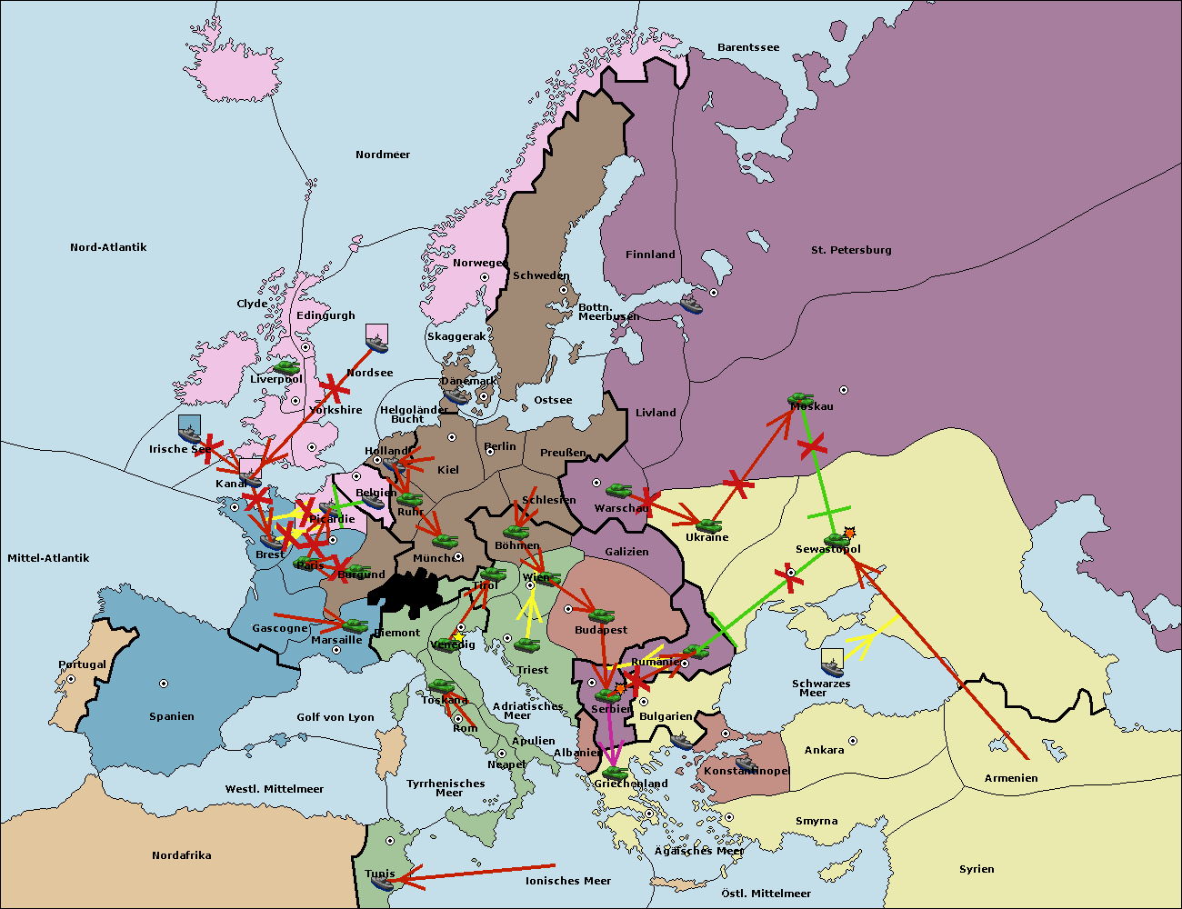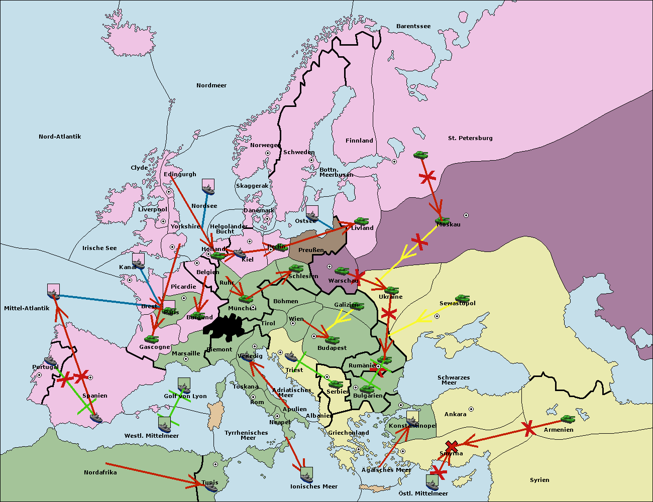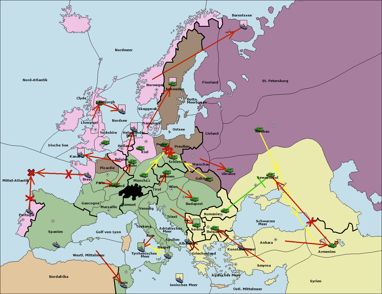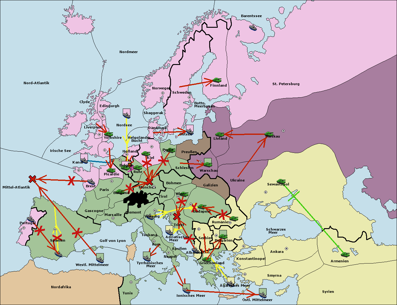 • Die Armee in Warschau support move nach Moskau von Sewastopol. (gescheitert)