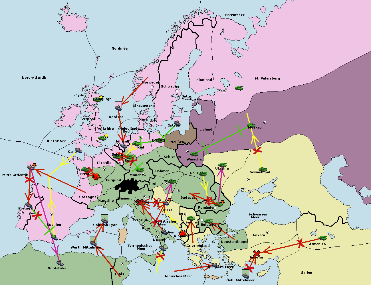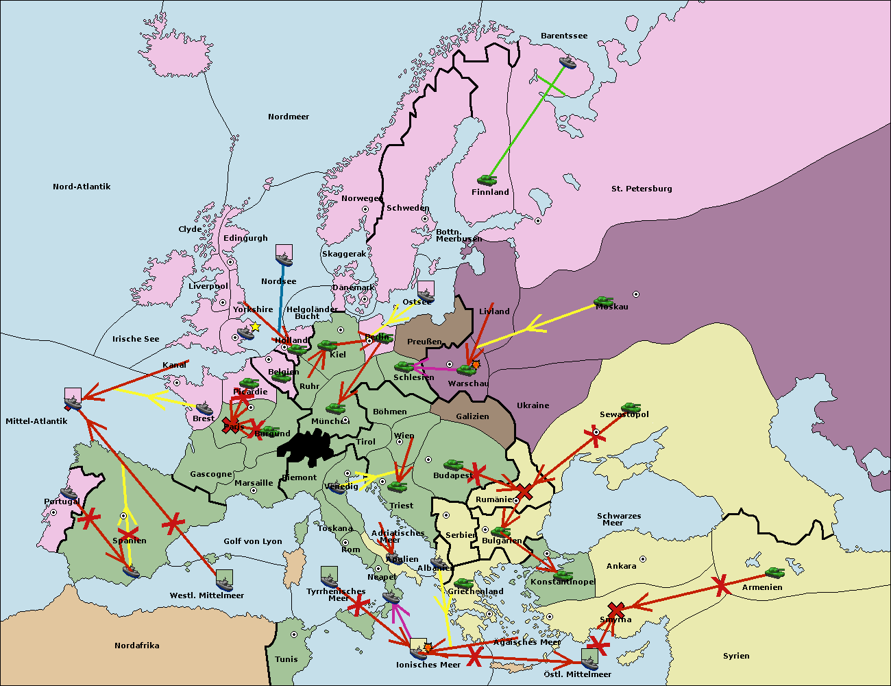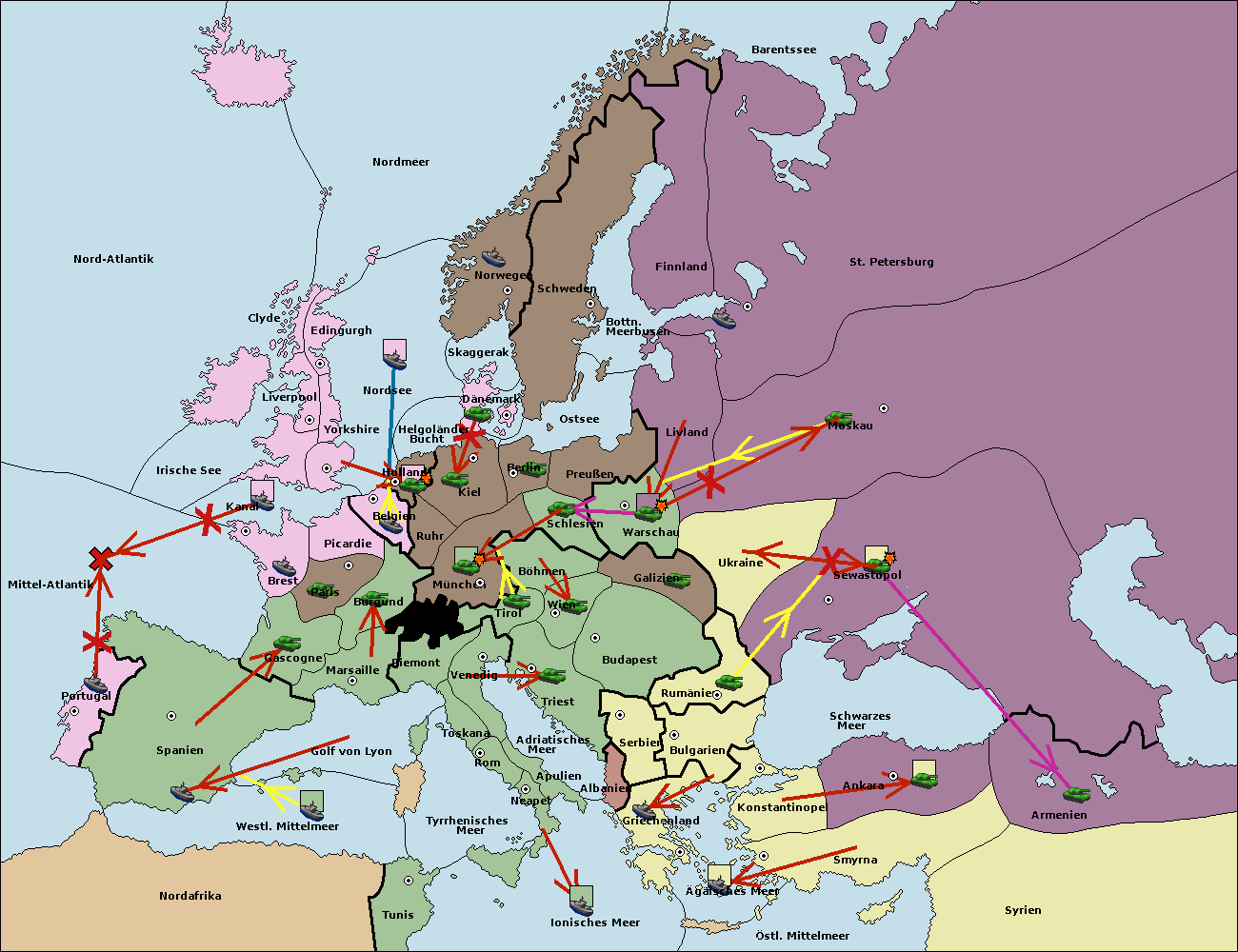 • Die Armee in Warschau support move nach Moskau von Sewastopol. (gescheitert)