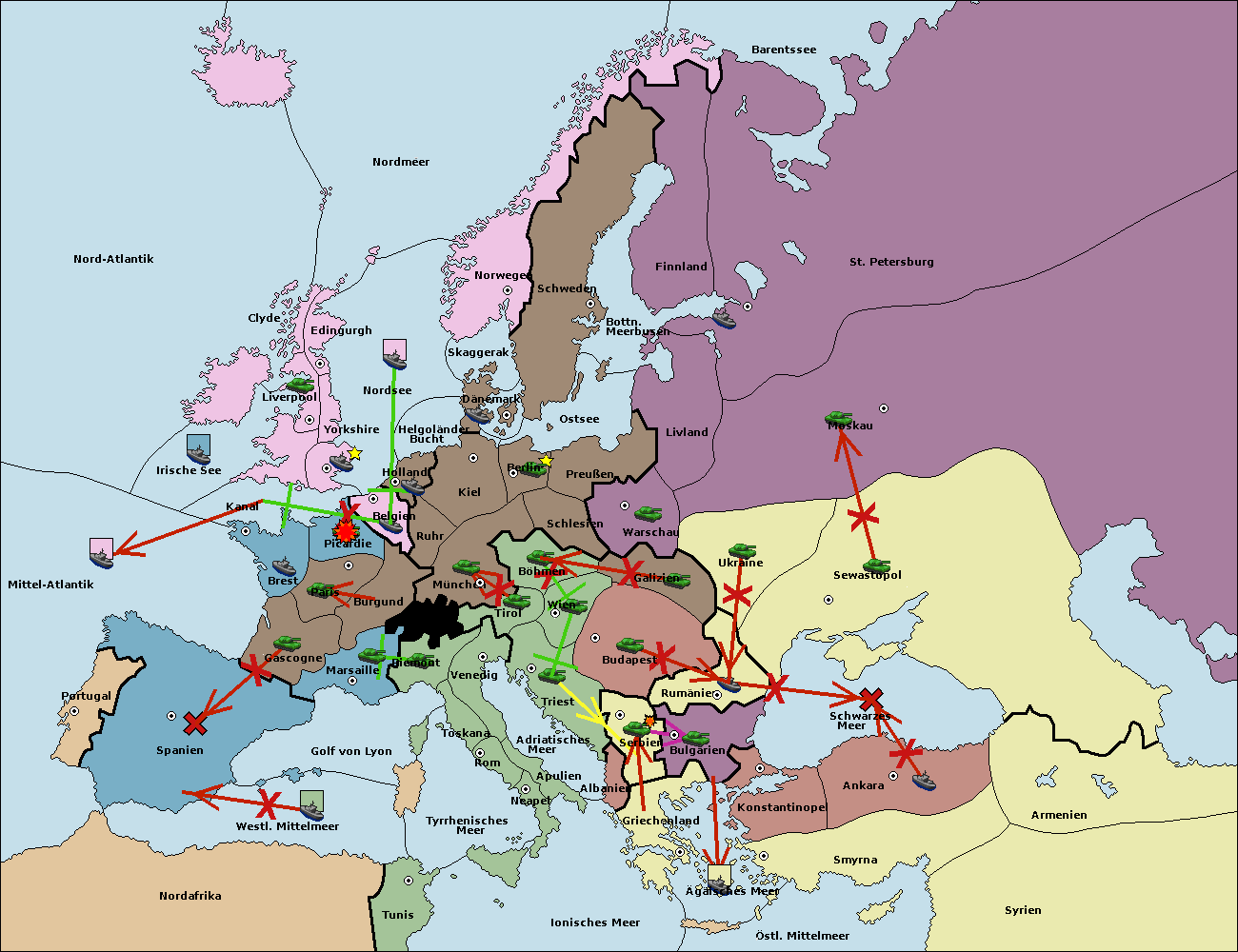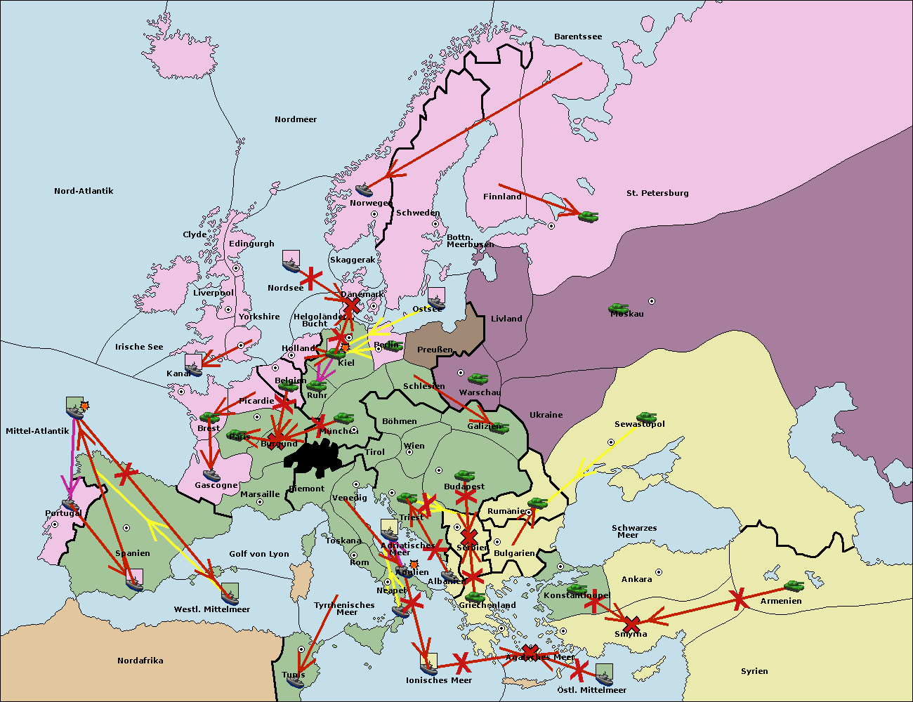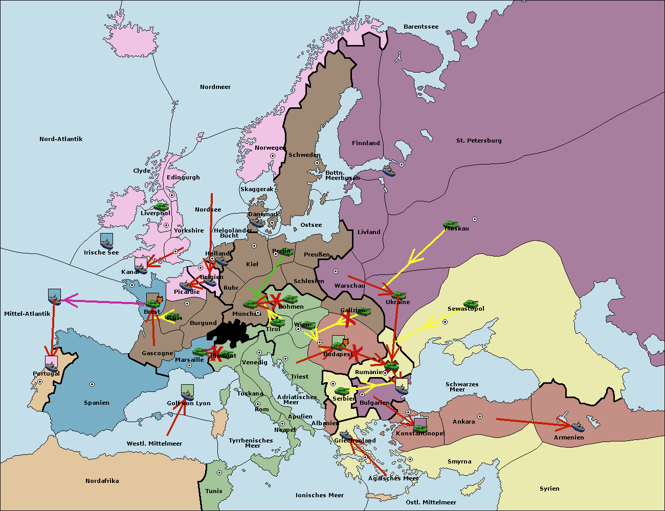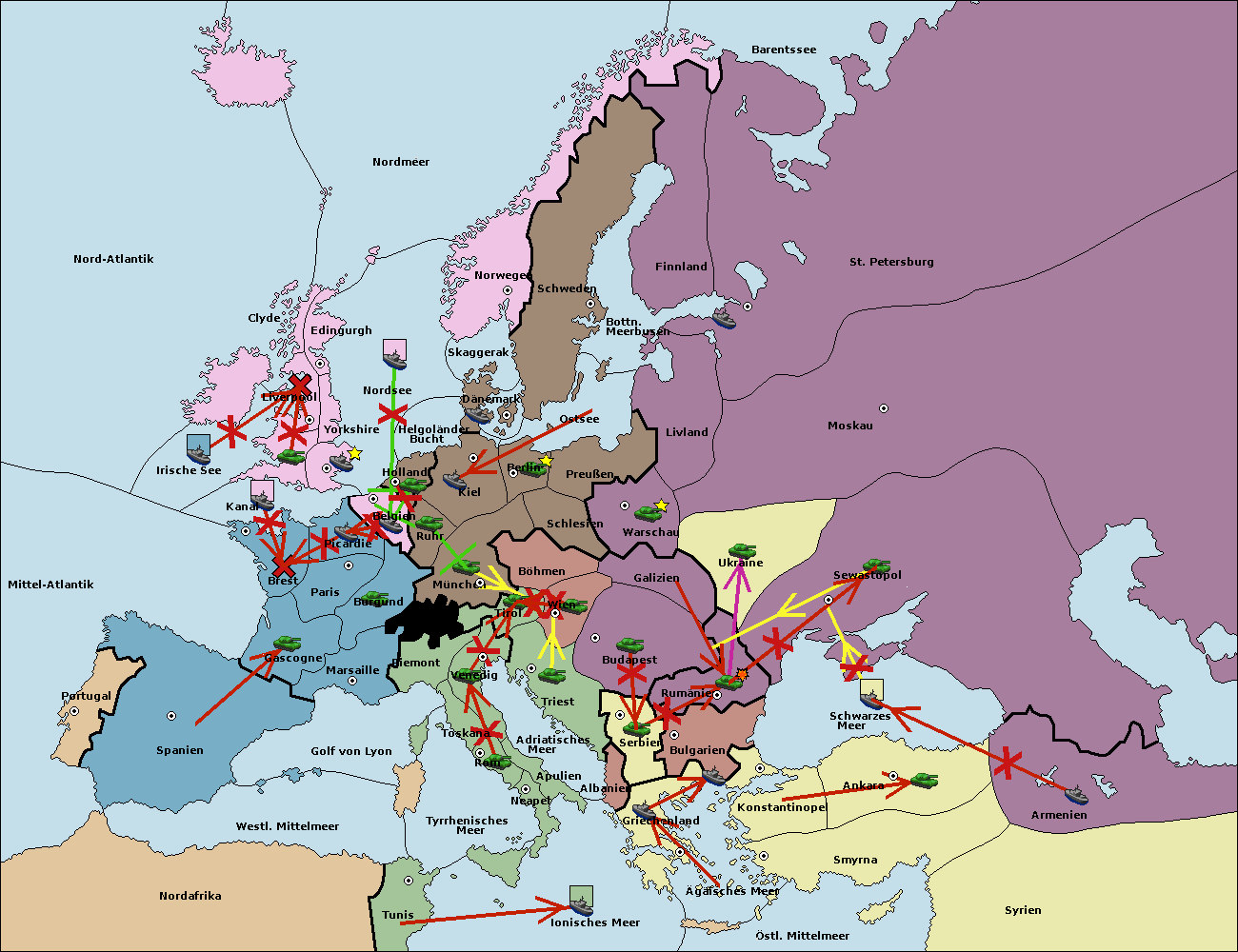 • Die Armee in Warschau support move nach Moskau von Sewastopol. (gescheitert)