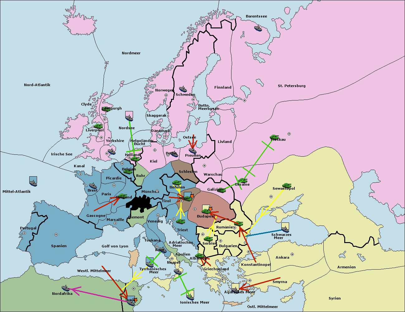 • Die Armee in Triest support move nach Wien von Tirol.