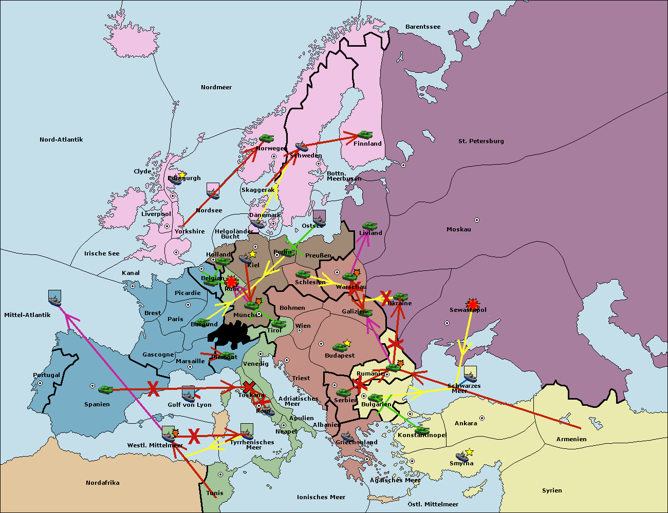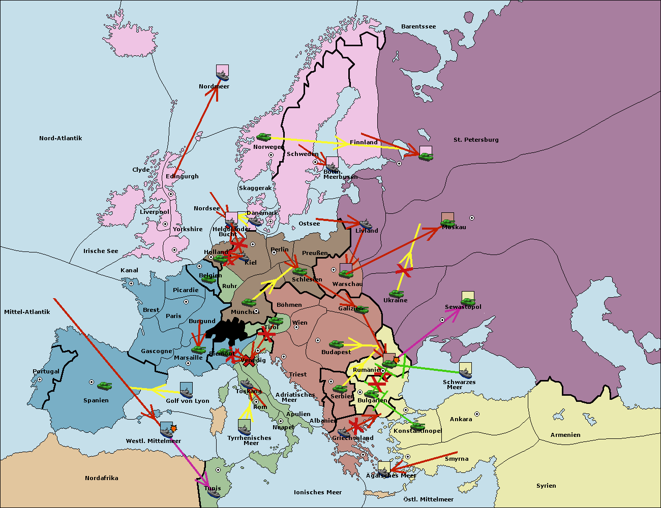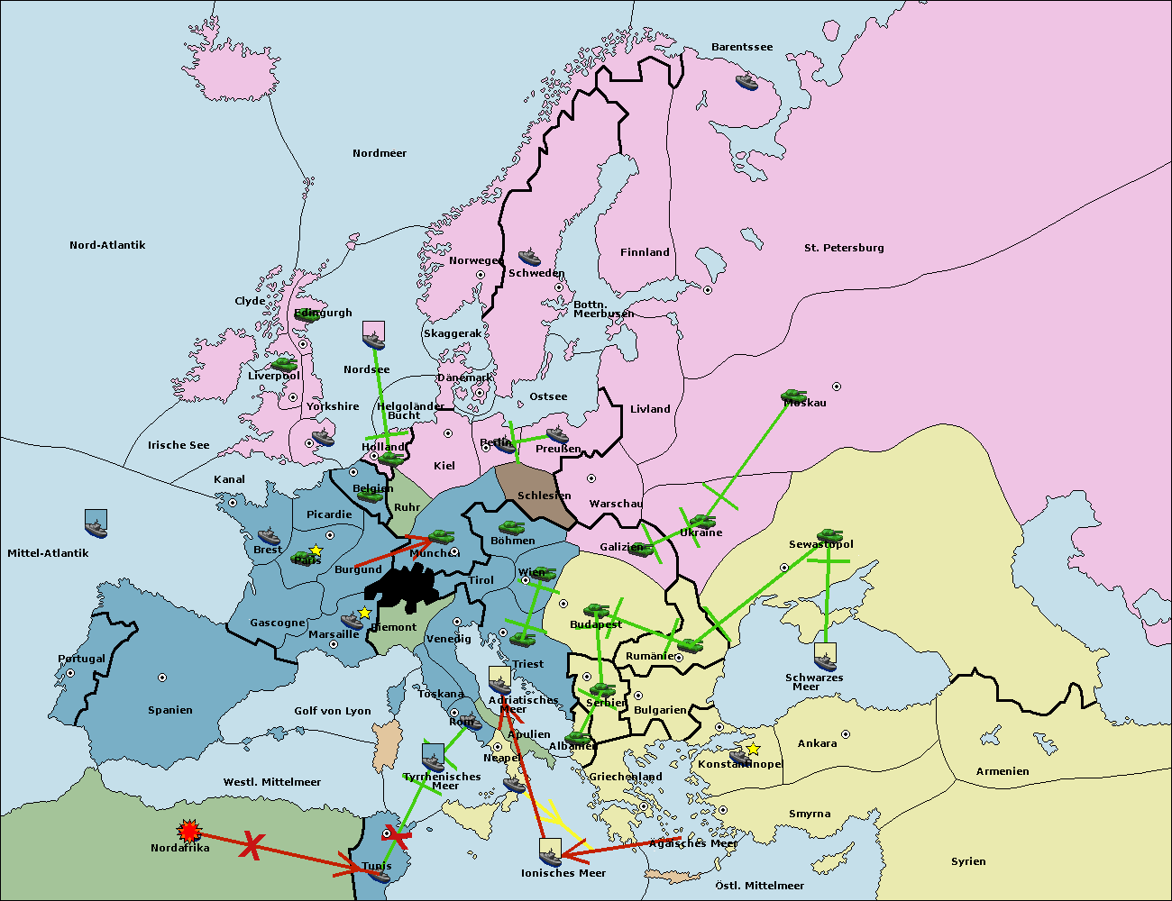 • Die Flotte in Nord Afrika move nach Tunis. (gescheitert)