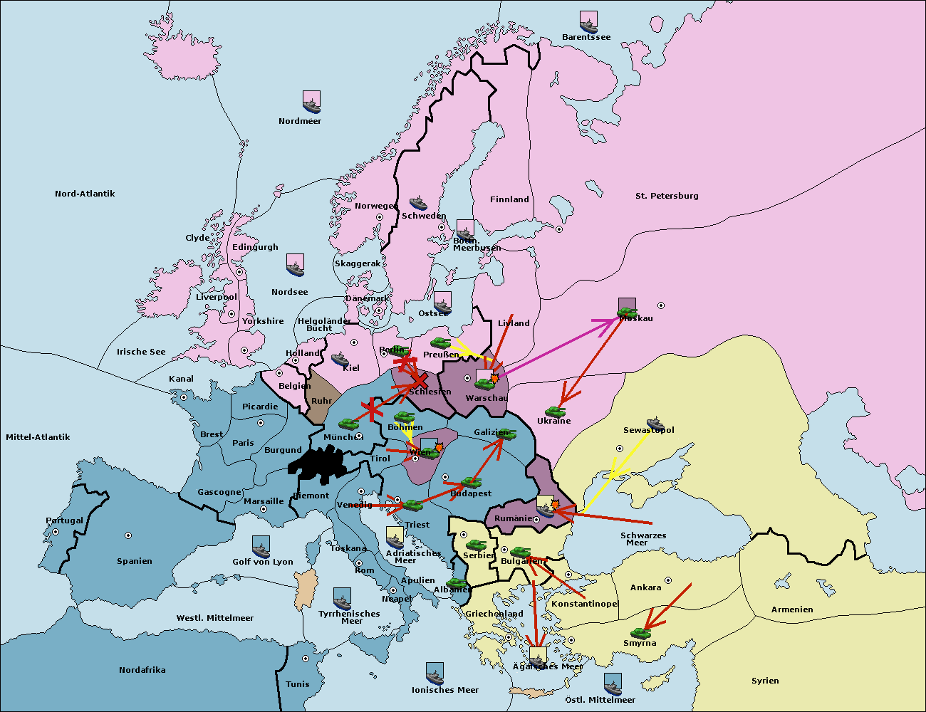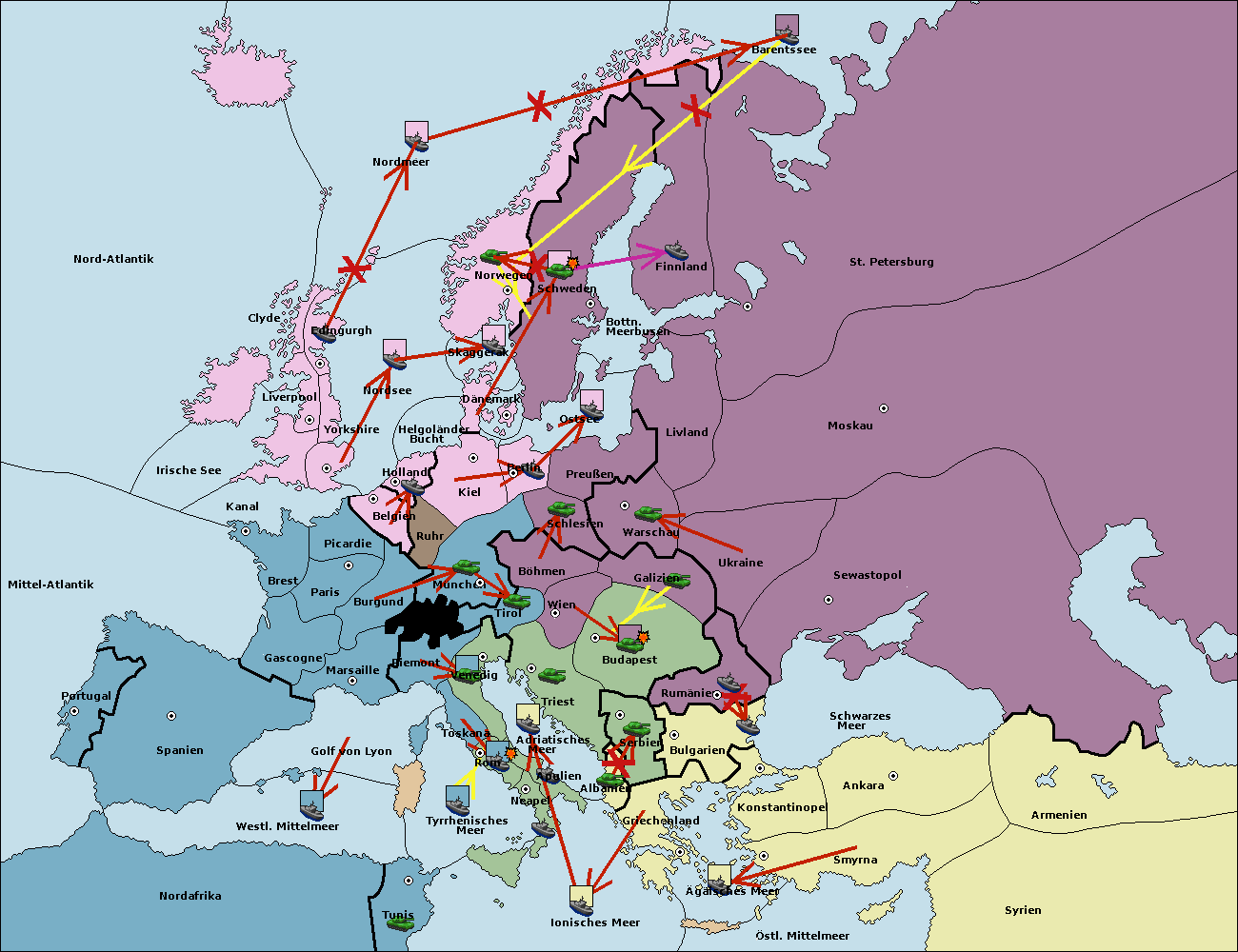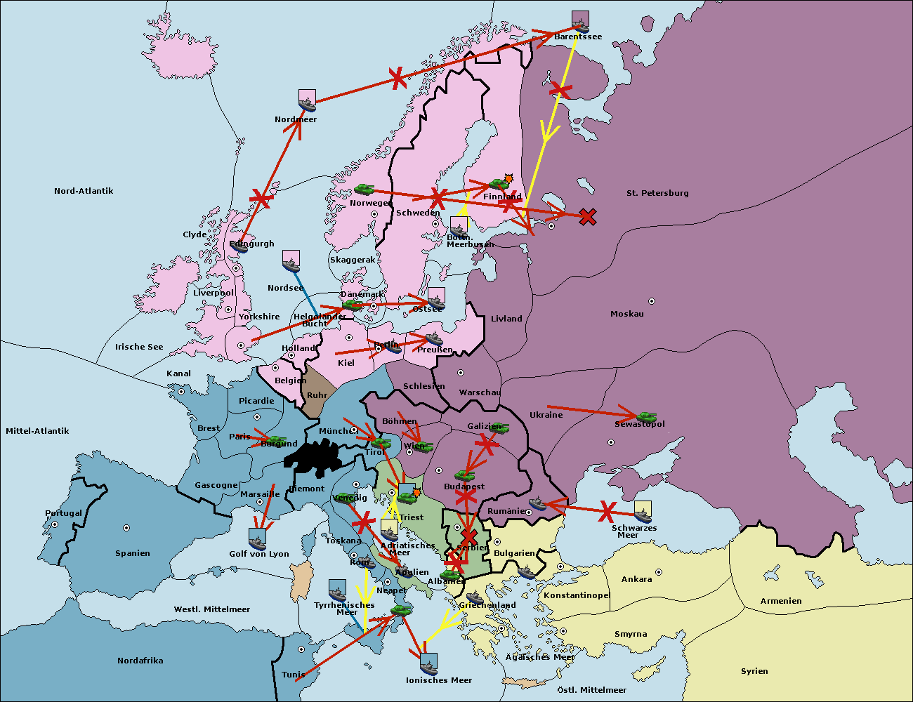• Die Flotte in St. Petersburg (Nordküste) move nach Barentssee.