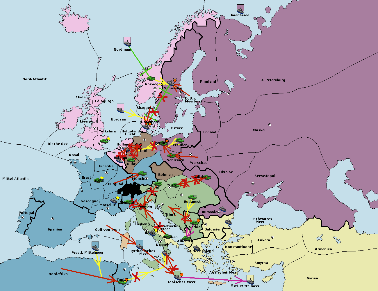 • Die Flotte in Spanien (Südküste) move nach westl. Mittelmeer.