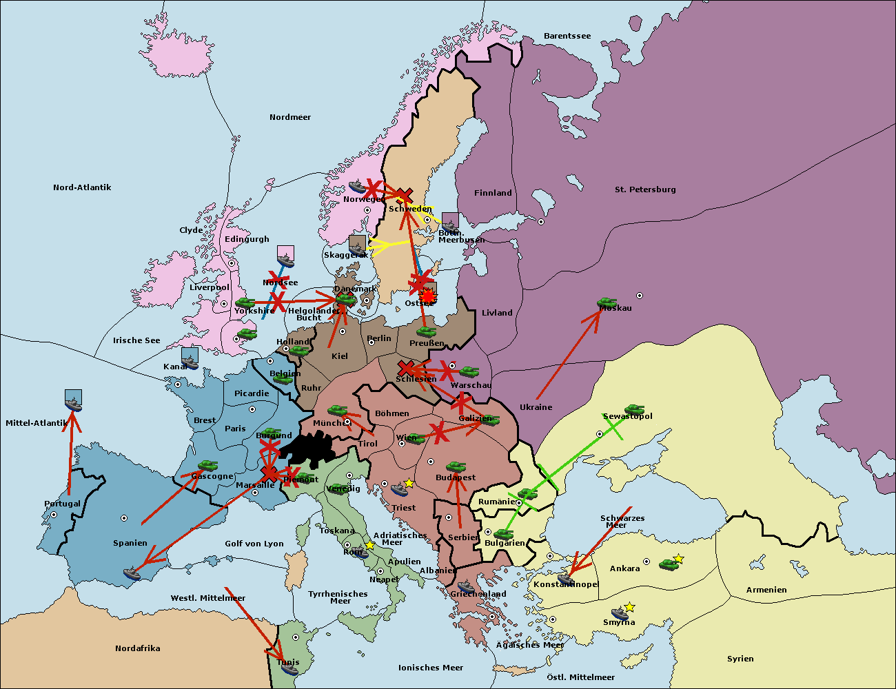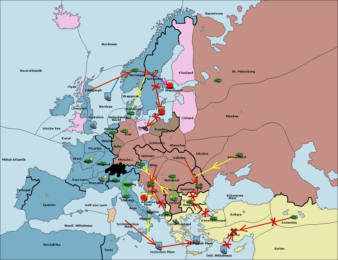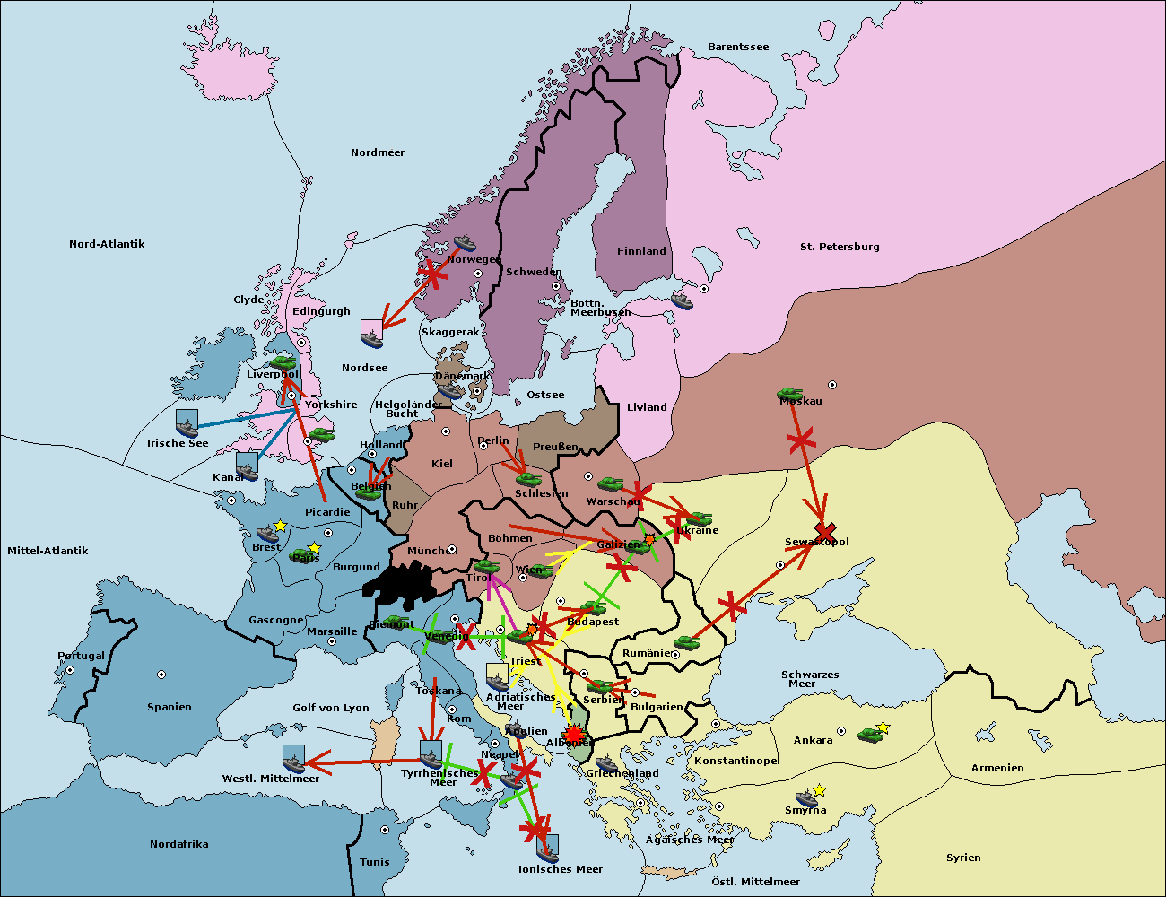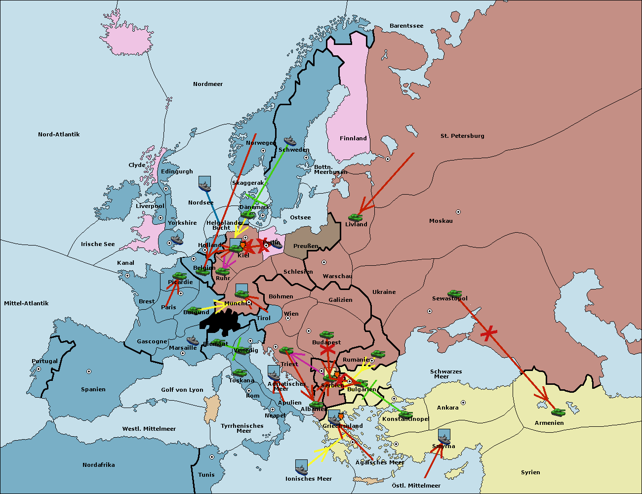 • Die Armee in Konstantinopel support hold nach Bulgarien.