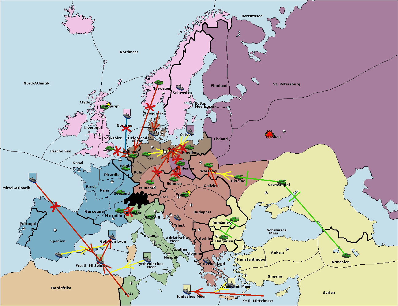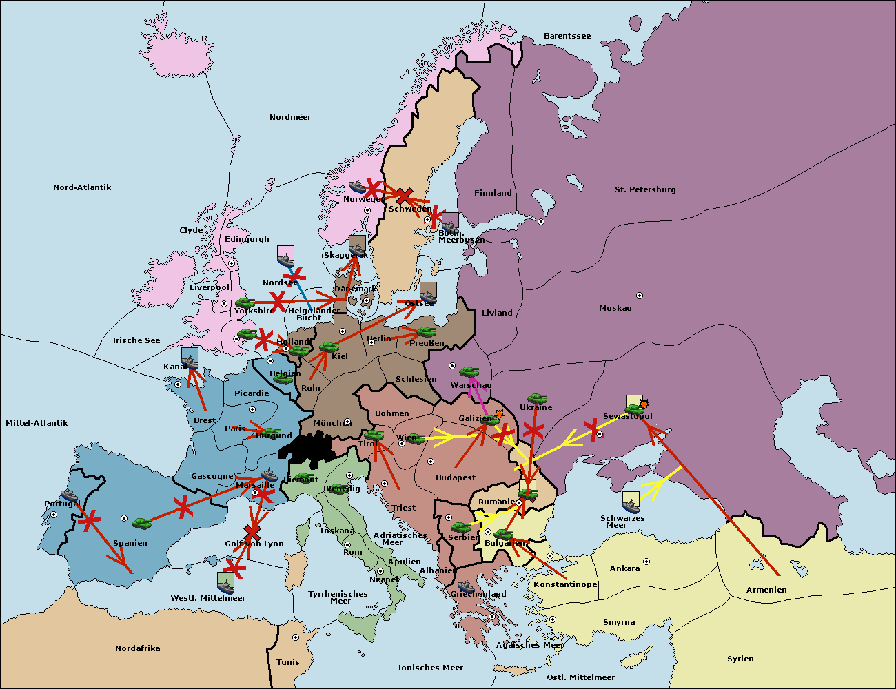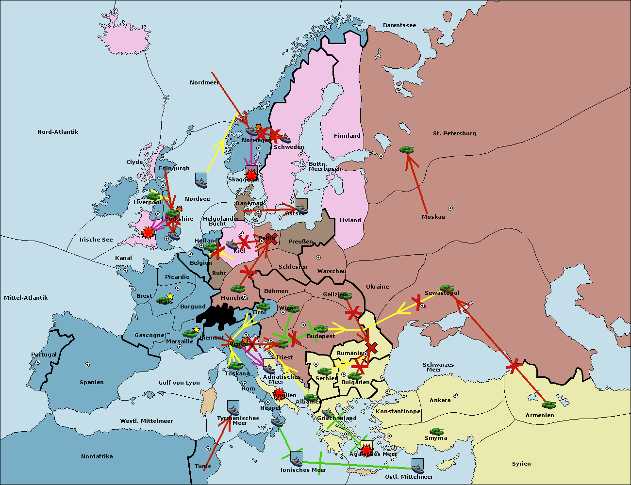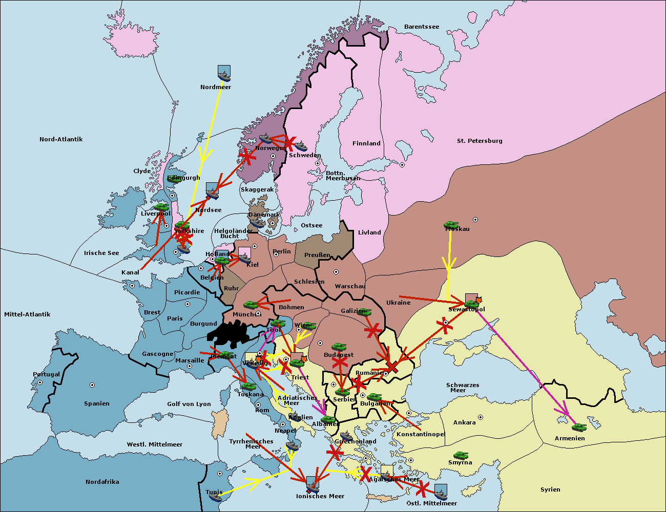 • Die Armee in Konstantinopel support hold nach Bulgarien.