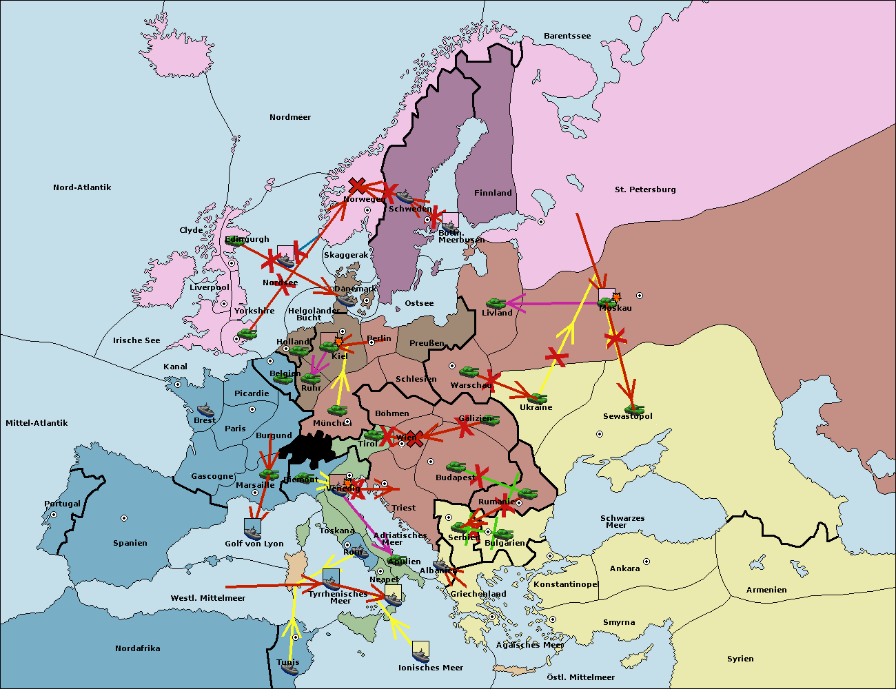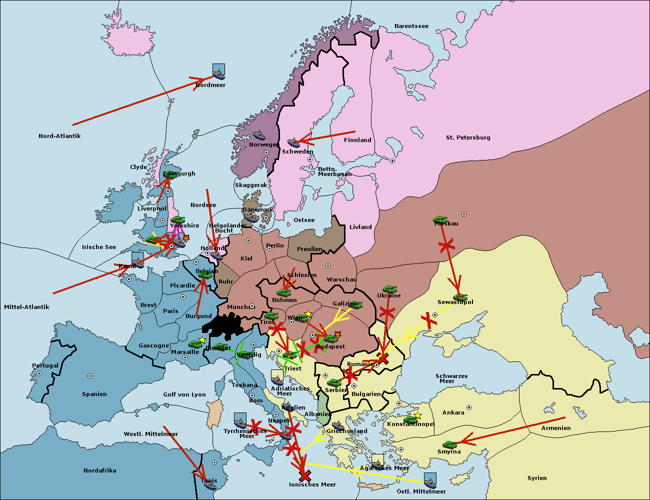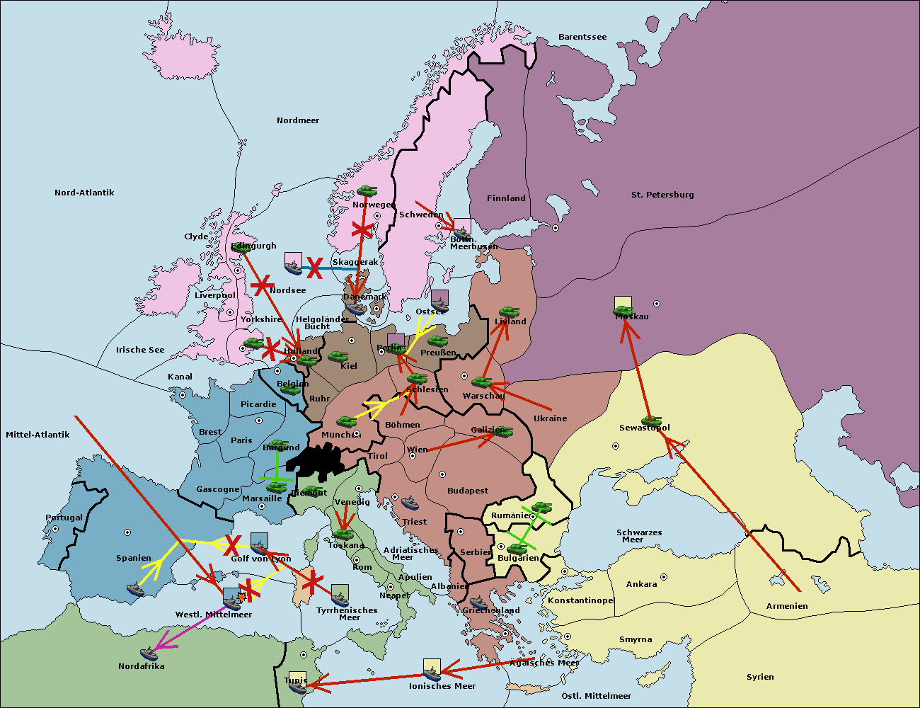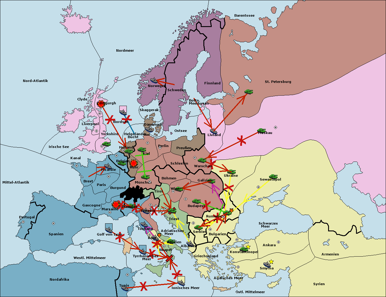 • Die Armee in Konstantinopel support hold nach Bulgarien.