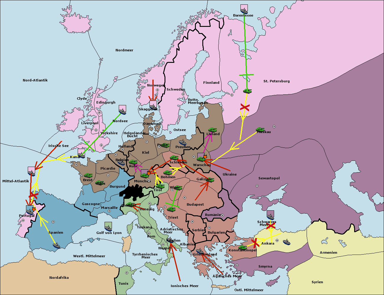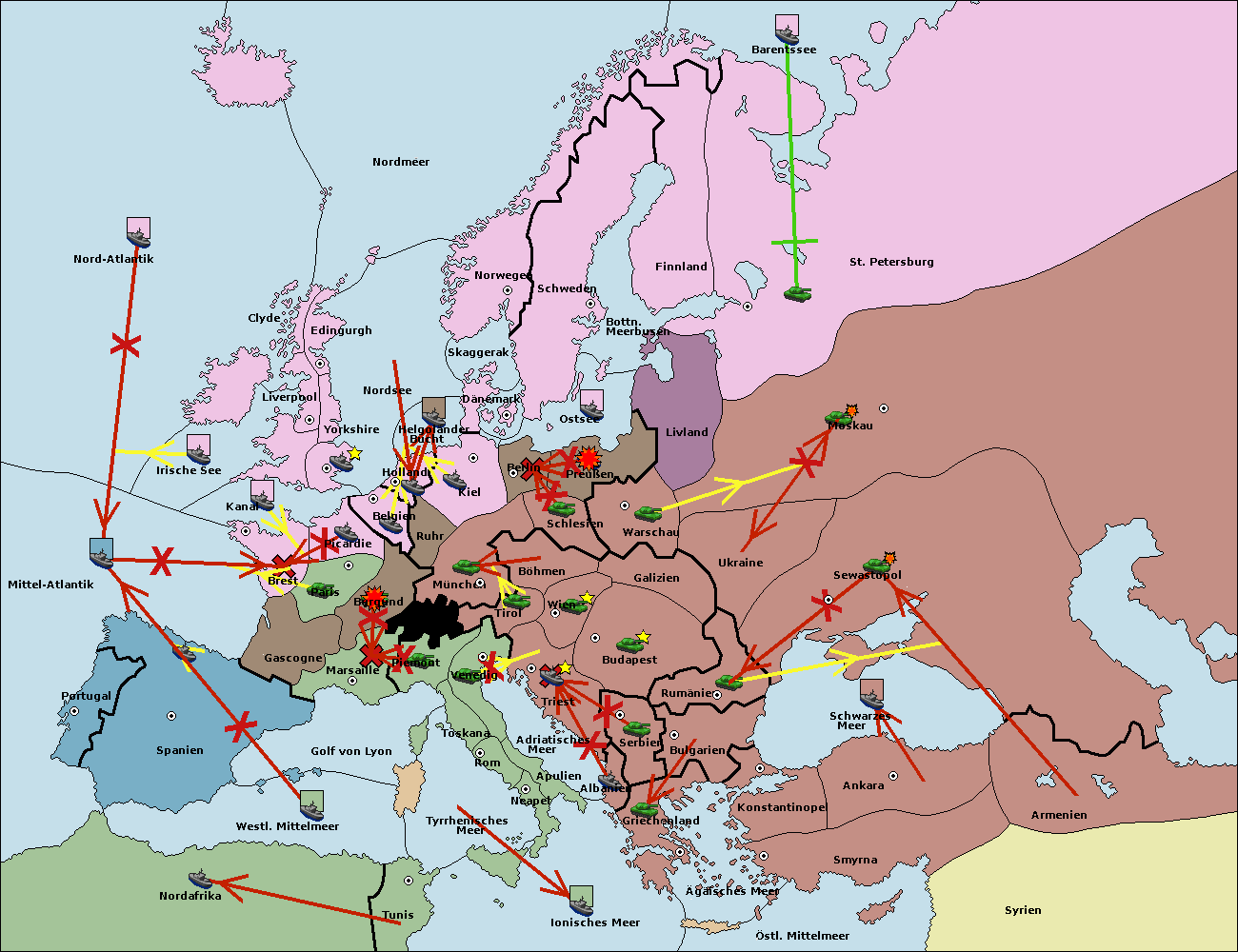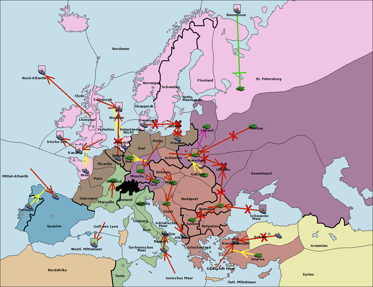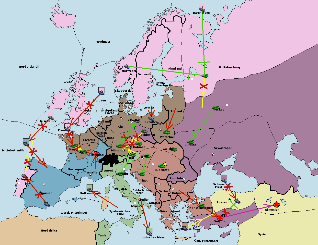 • Die Armee in Bulgarien wird zerstörtFlotte in Bulgarien gebaut.