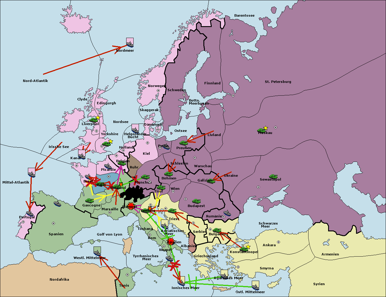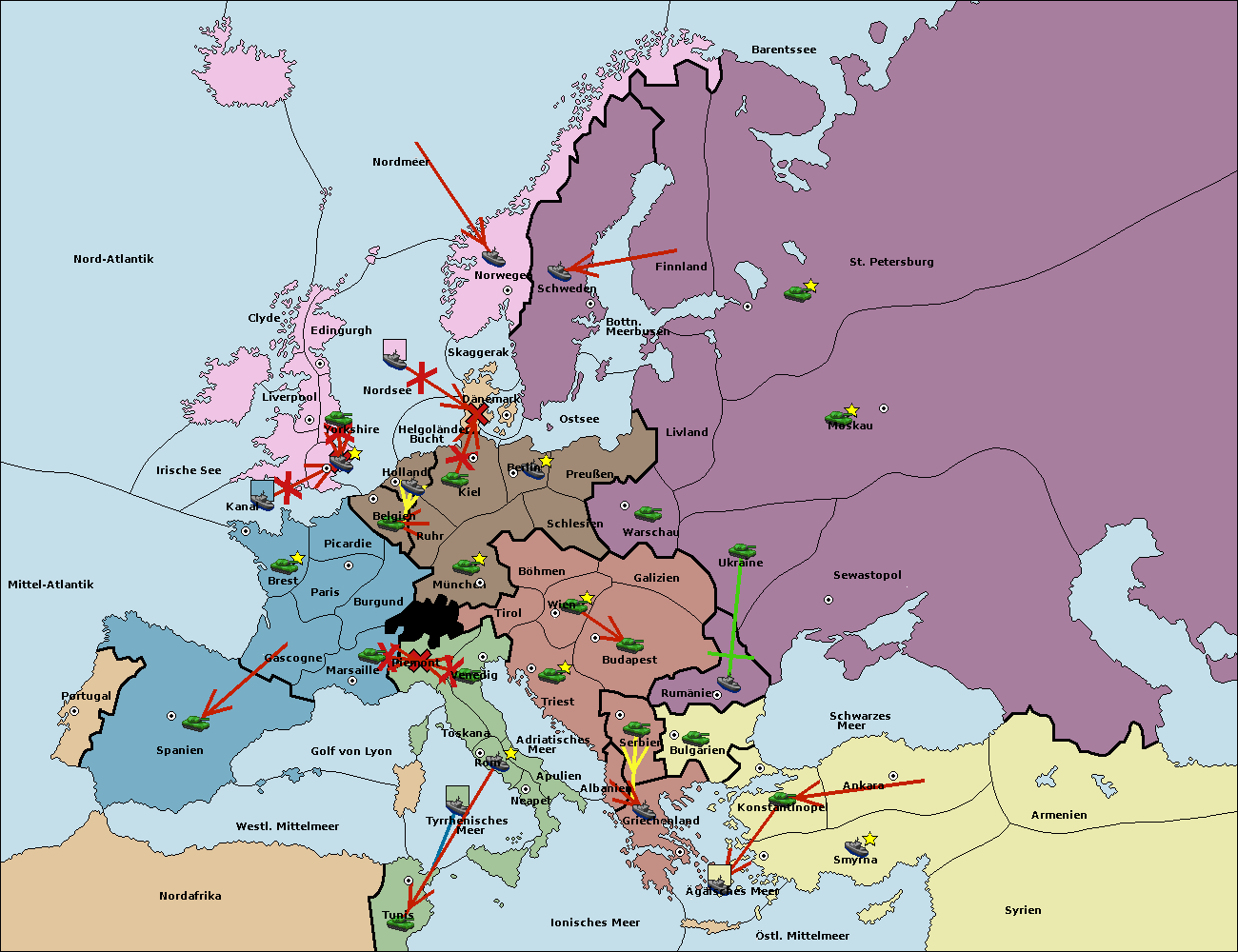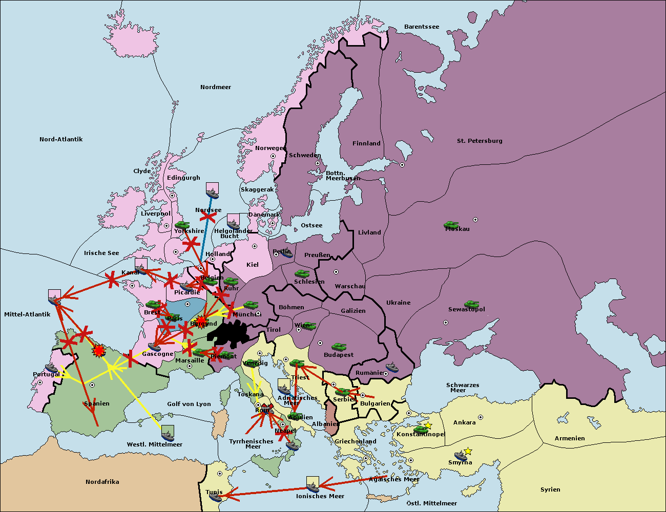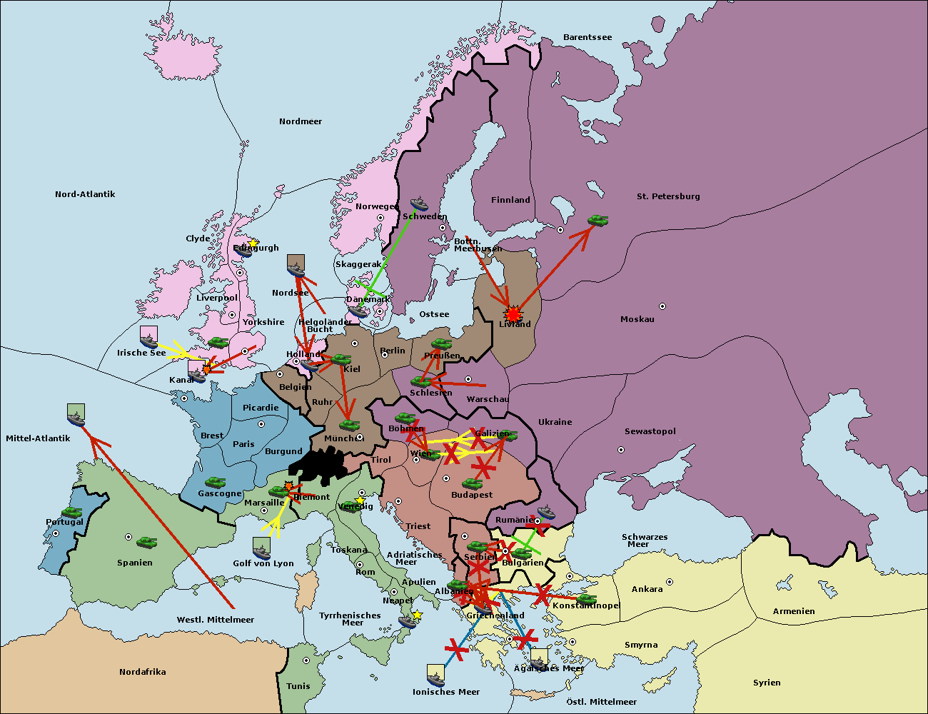 • Die Armee in Konstantinopel support hold nach Bulgarien.