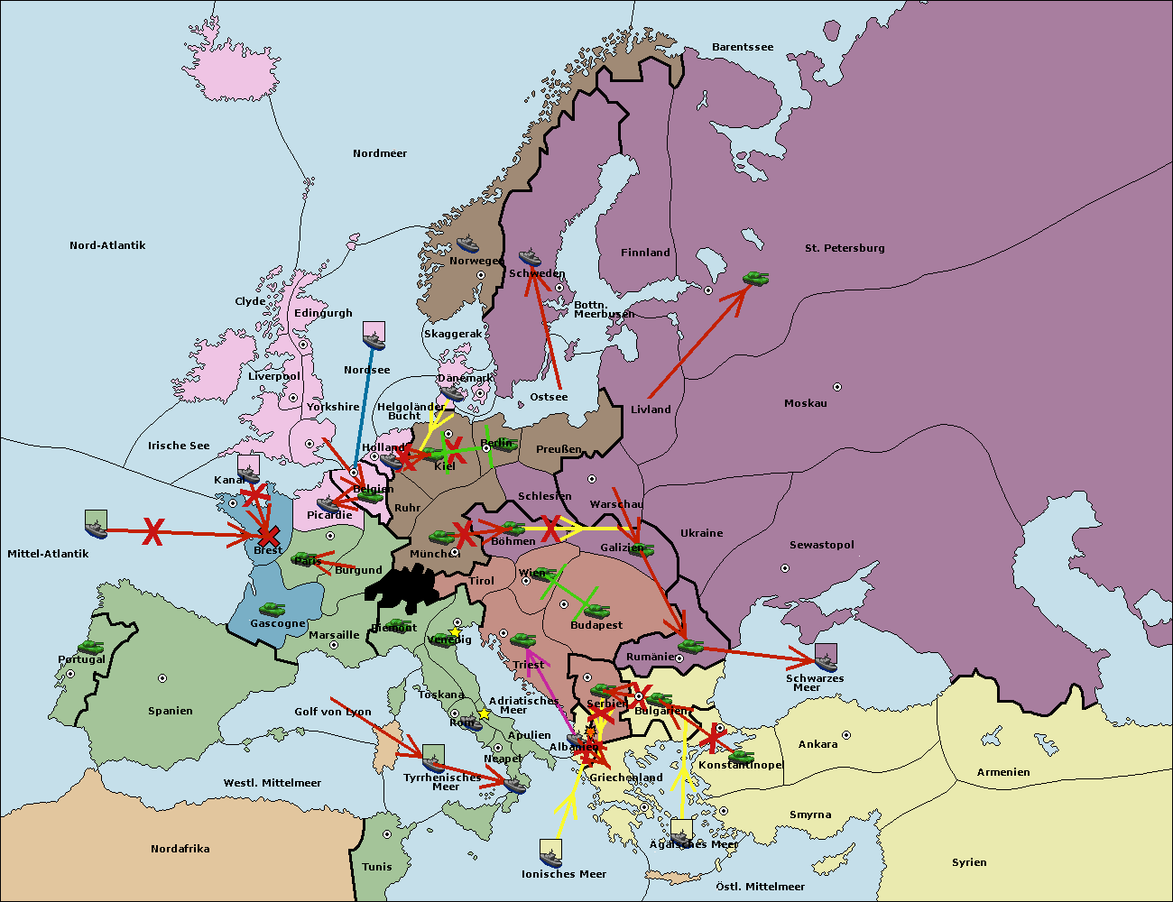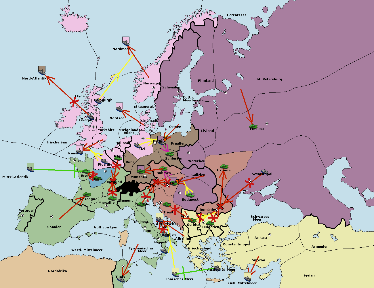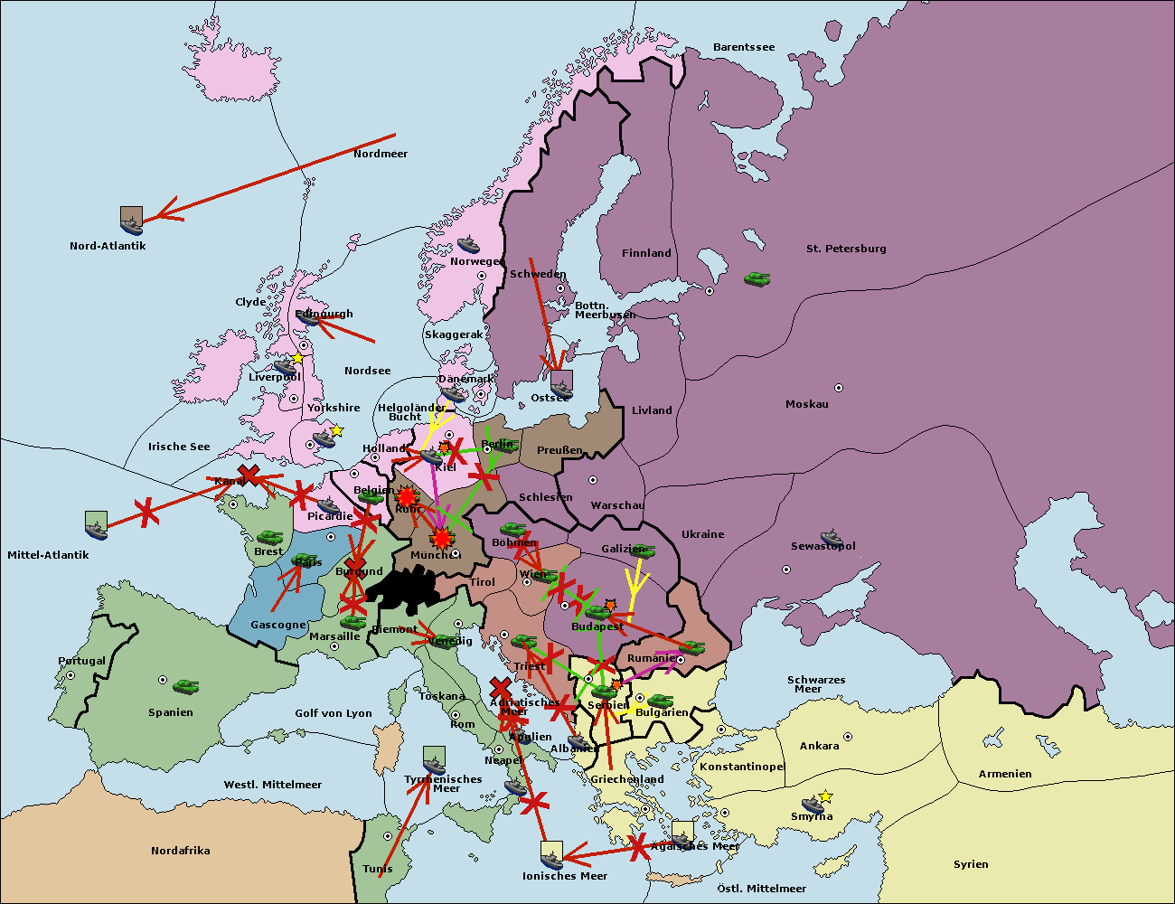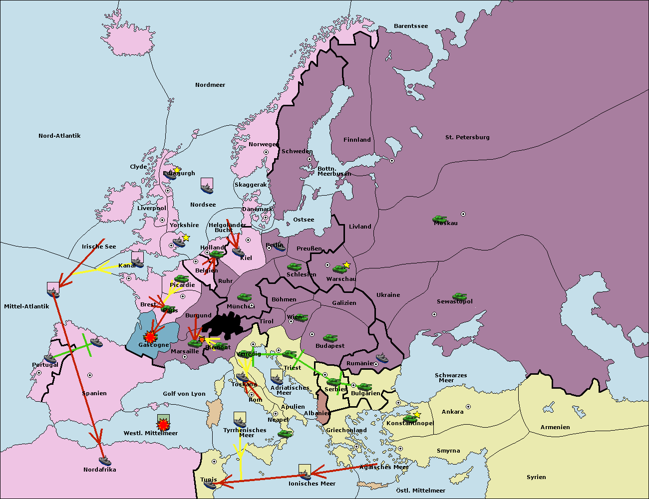 • Die Armee in Konstantinopel support hold nach Bulgarien.