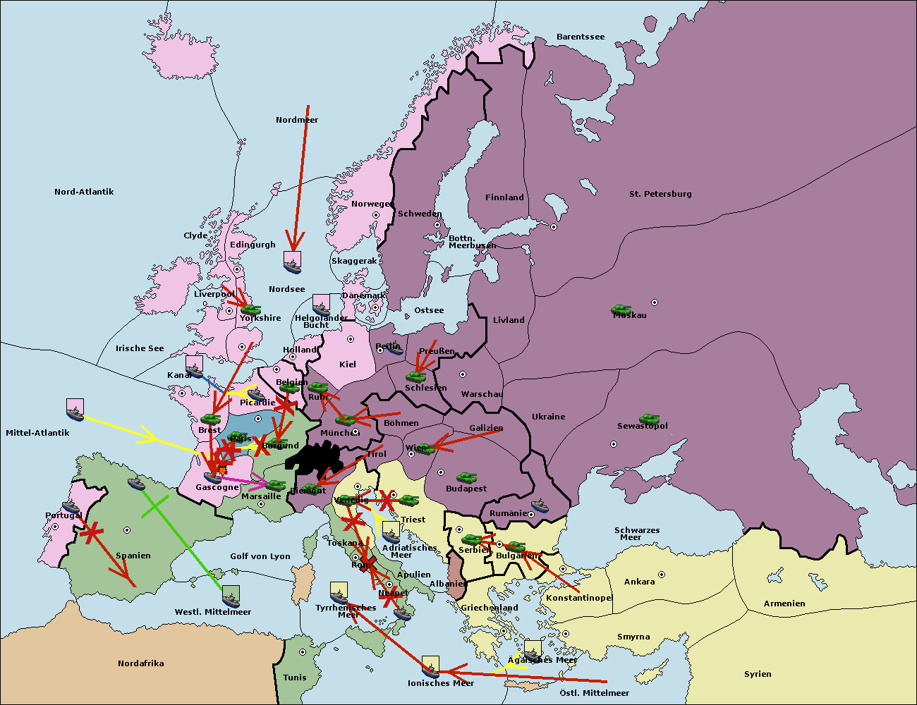 • Die Armee in Brest move nach London via Concoy. (gescheitert)