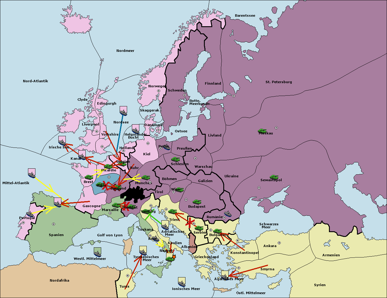 • Die Flotte in St. Petersburg (Südküste) move nach Finnland.