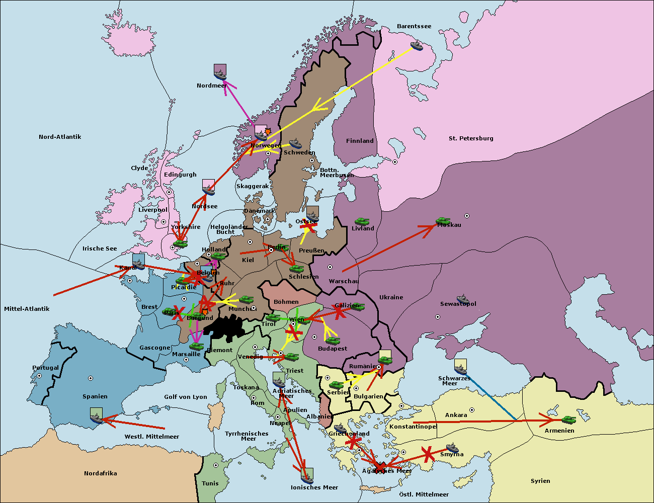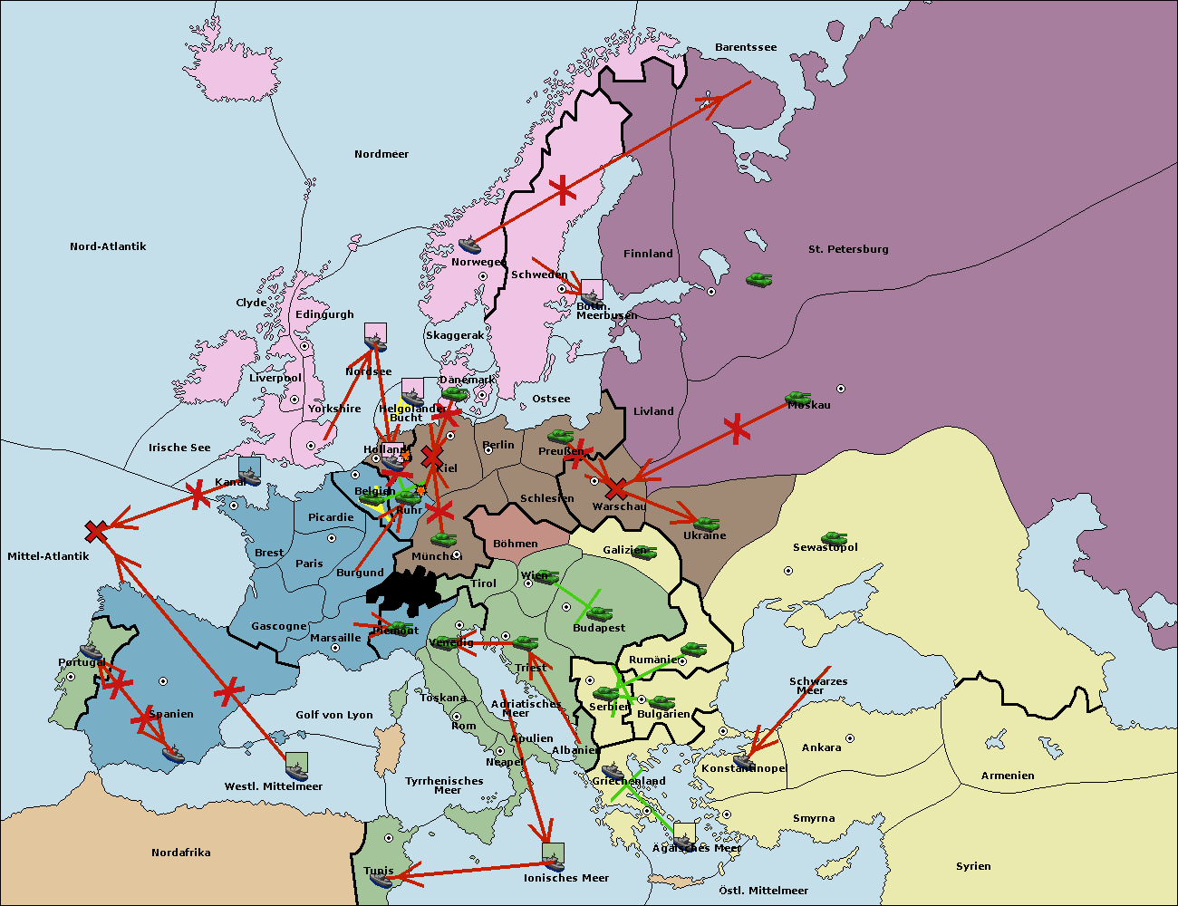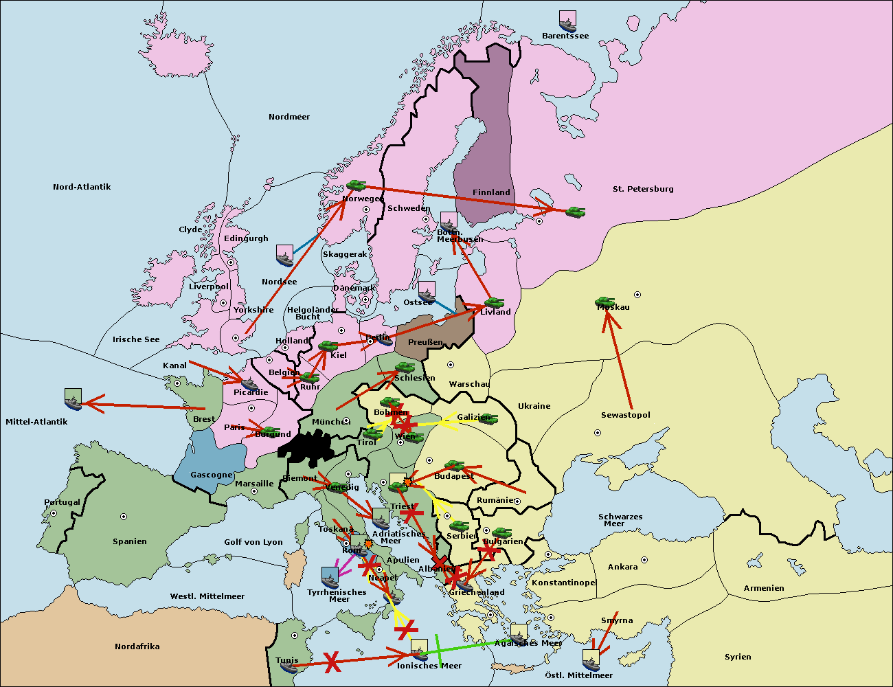 • Die Armee in Triest support move nach Serbien von Bulgarien.