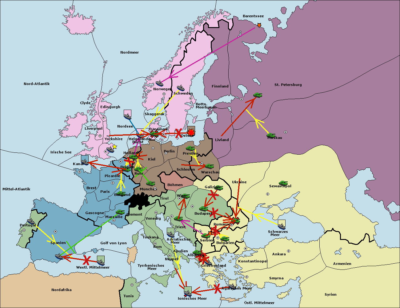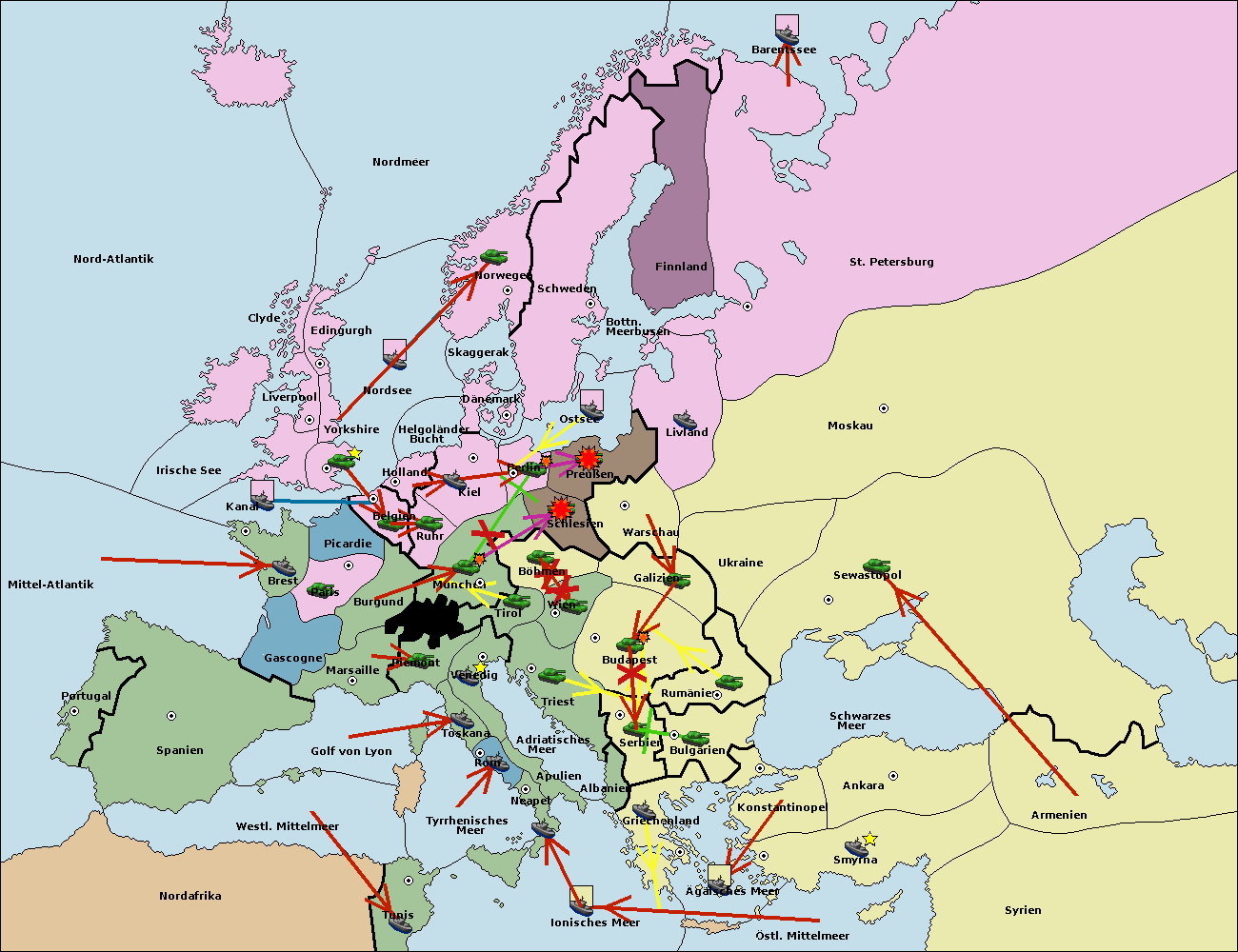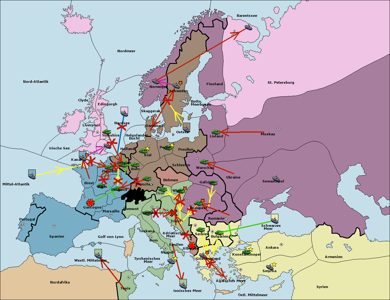 • Die Armee in Triest support move nach Serbien von Bulgarien.