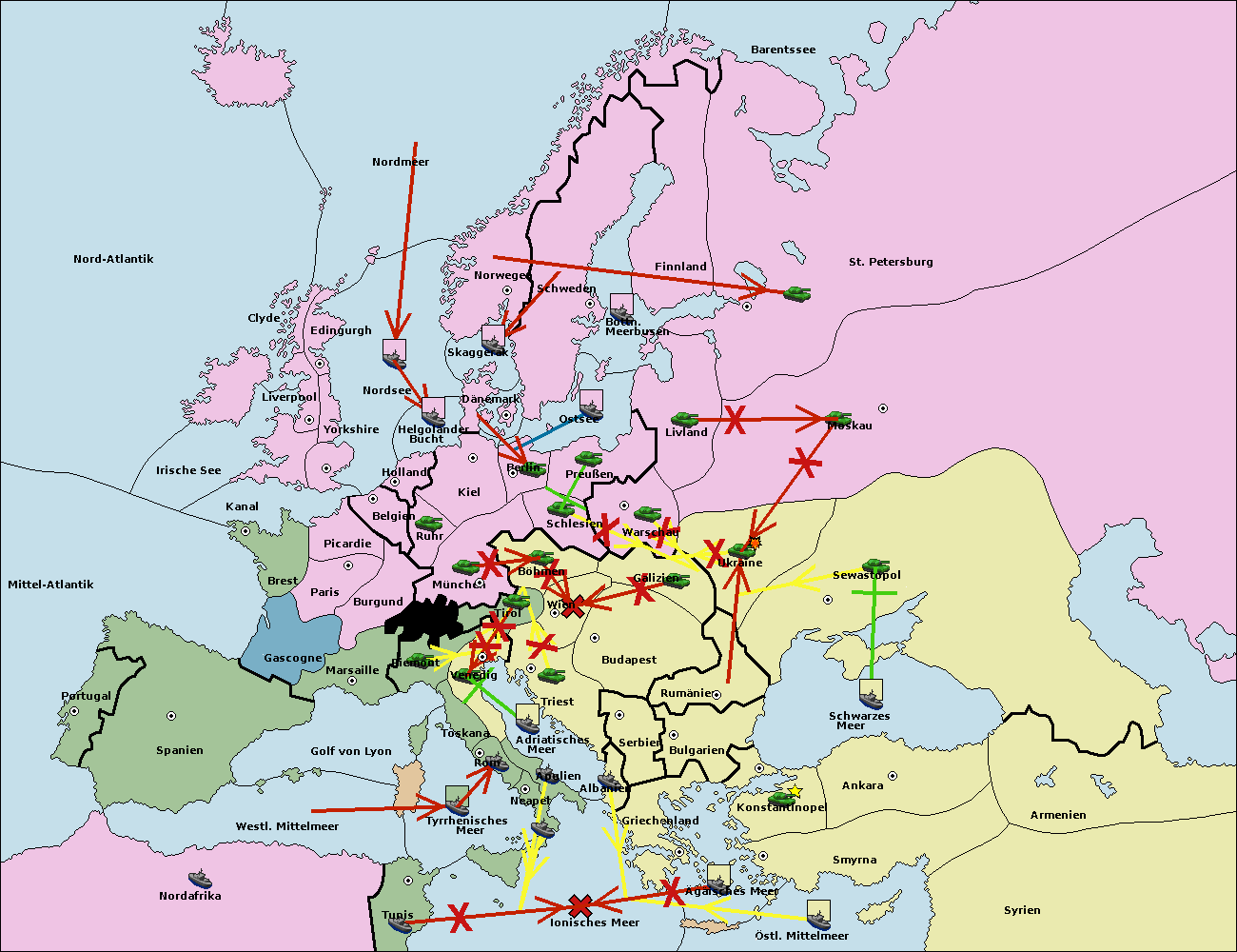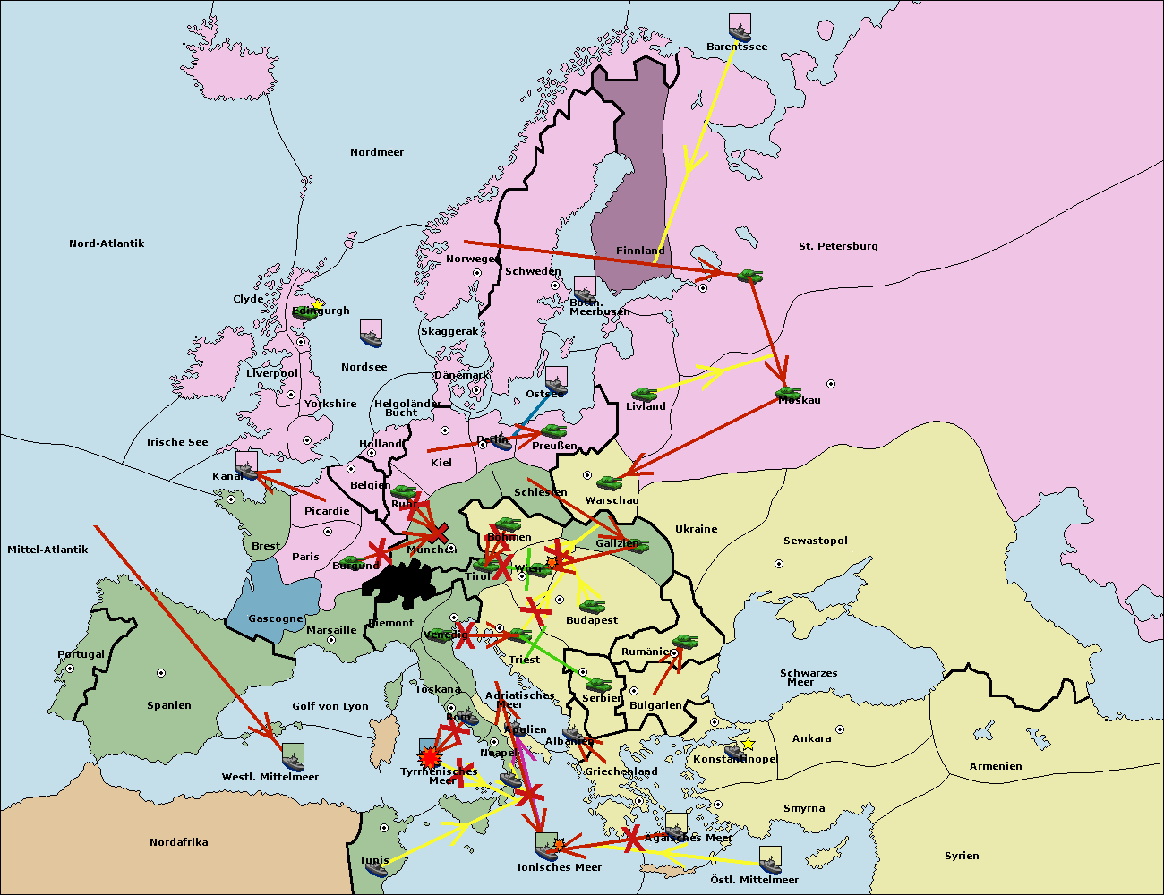 • Die Armee in Triest support move nach Tirol von Böhmen. (gescheitert)