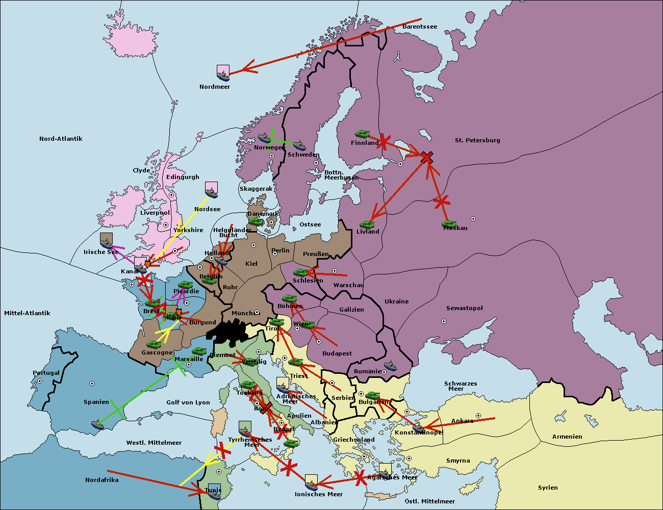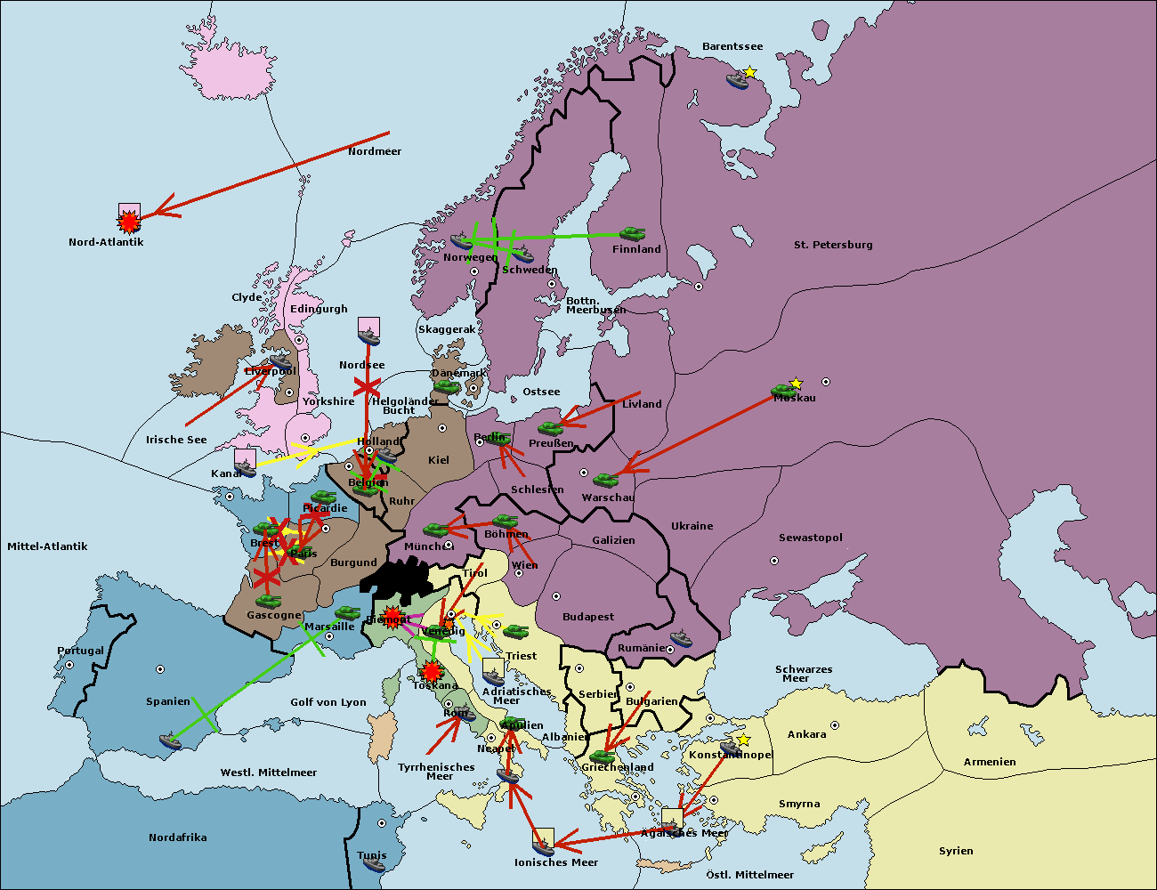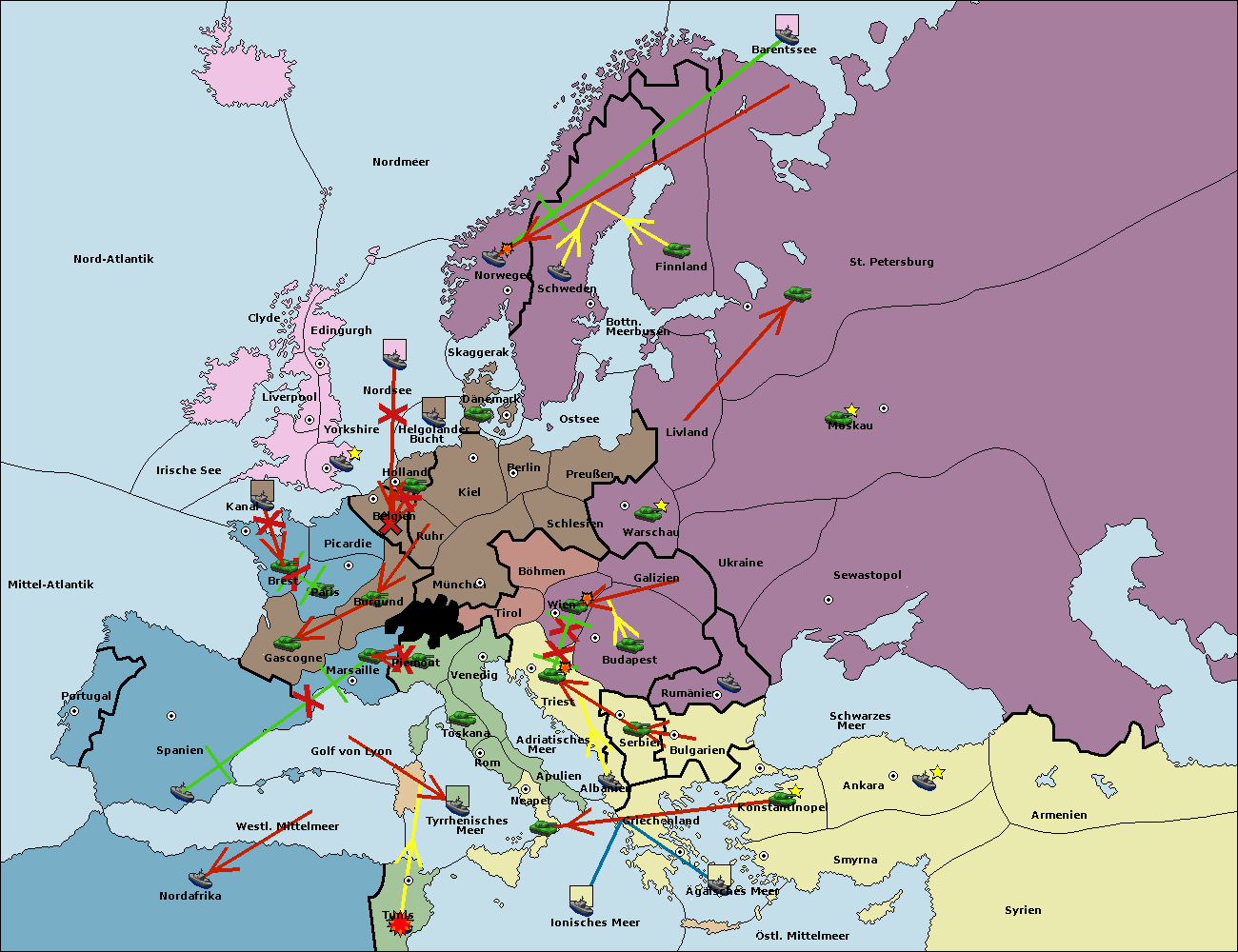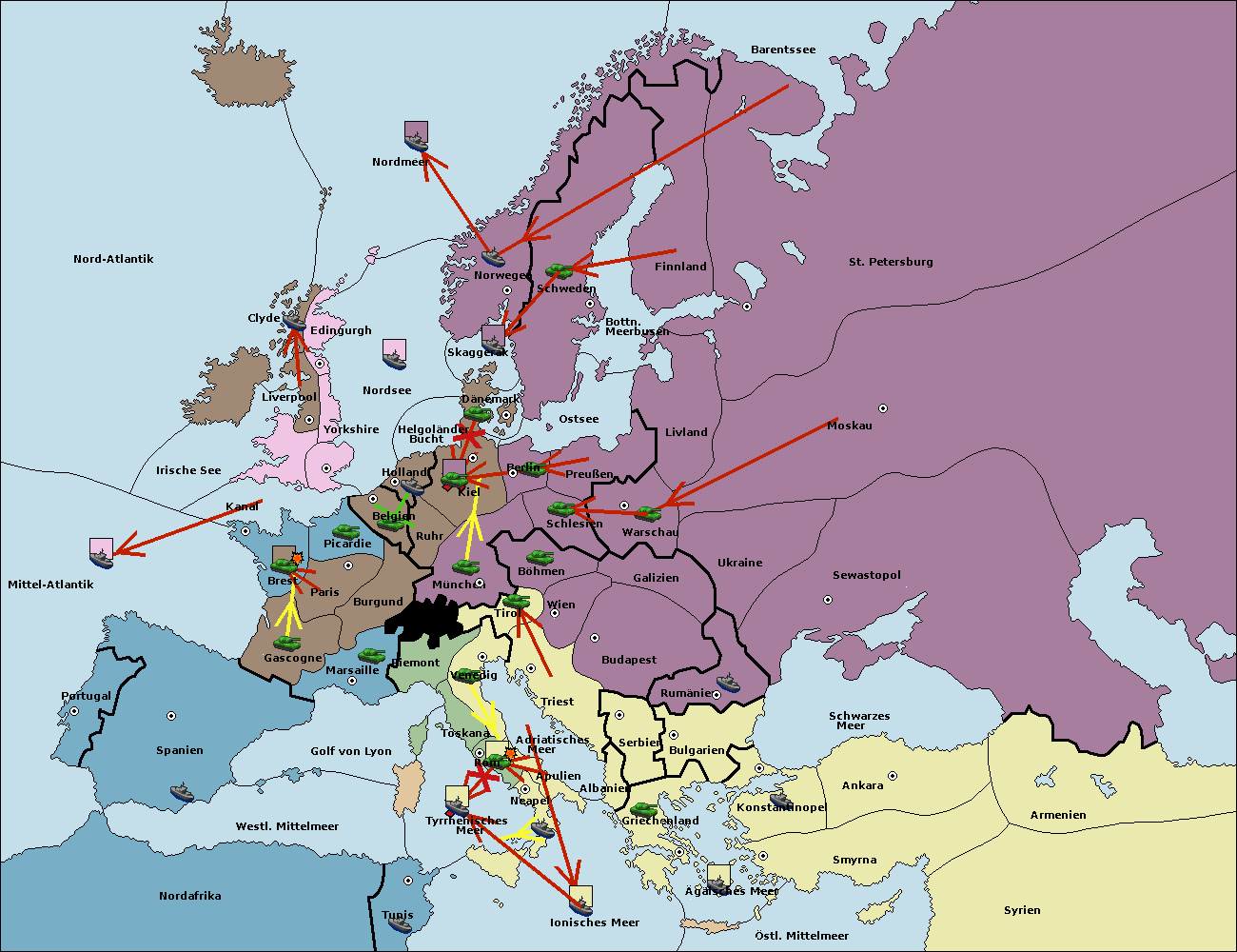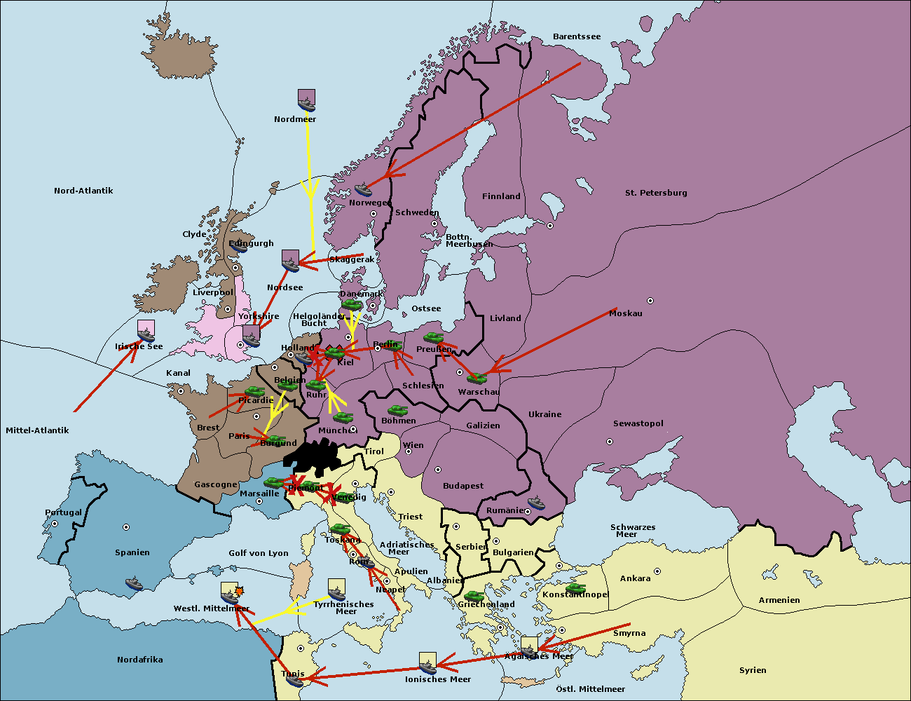 • Die Flotte in St. Petersburg (Nordküste) move nach Norwegen.