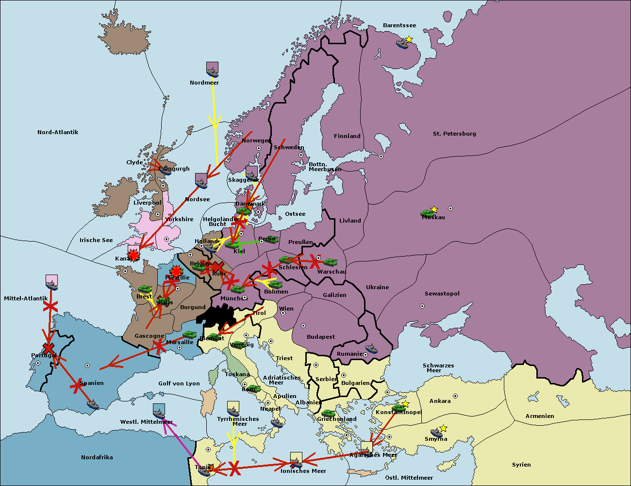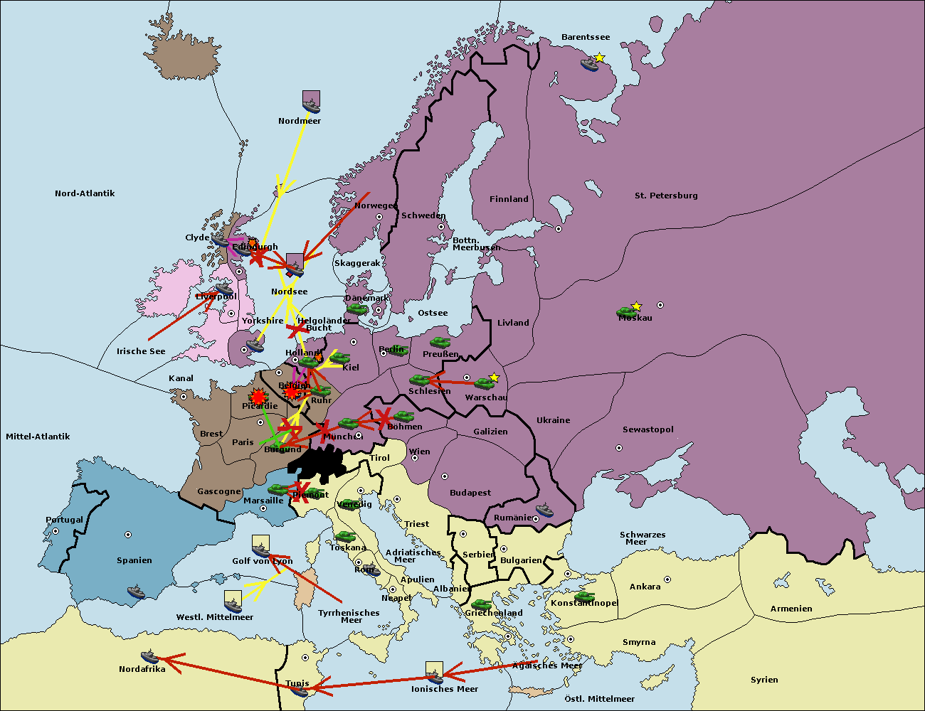 • Die Flotte in Spanien (Südküste) support move nach westl. Mittelmeer von Mittel-Atlantik.