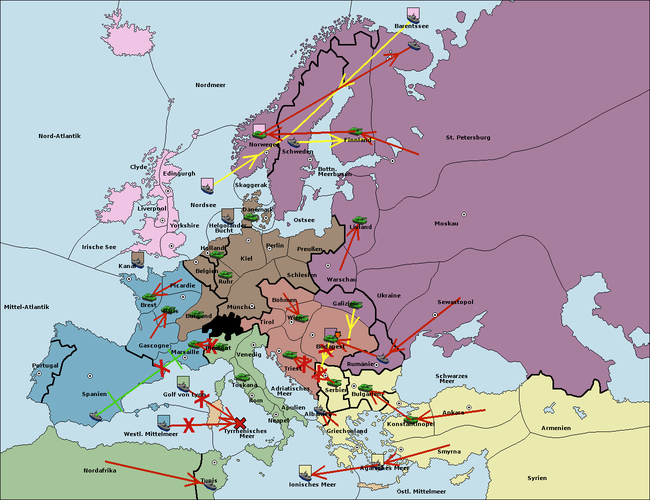 • Die Armee in Budapest support move nach Galizien von Wien.