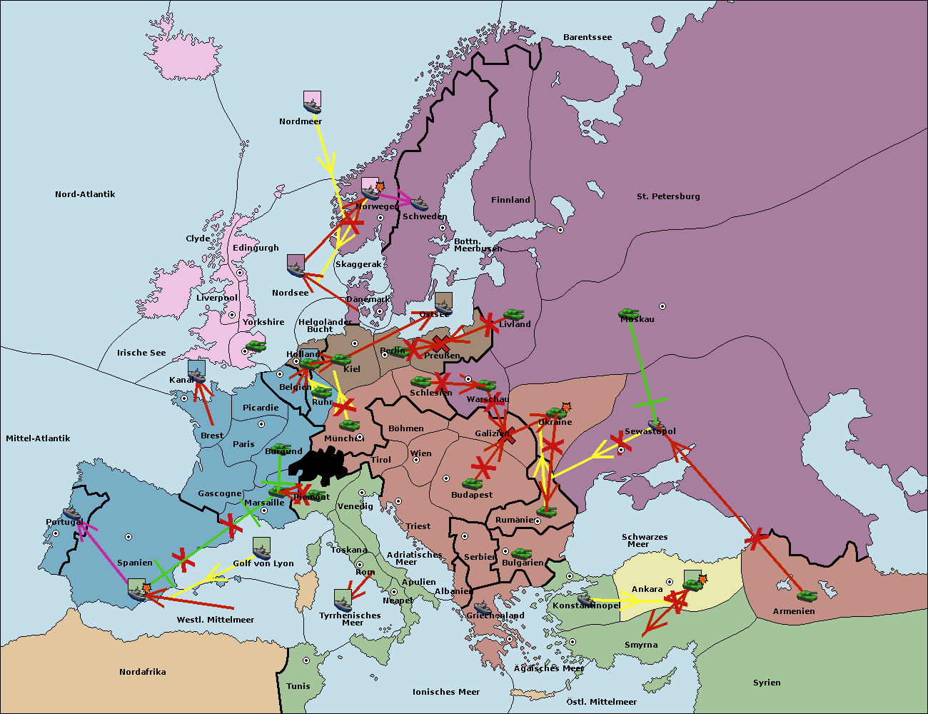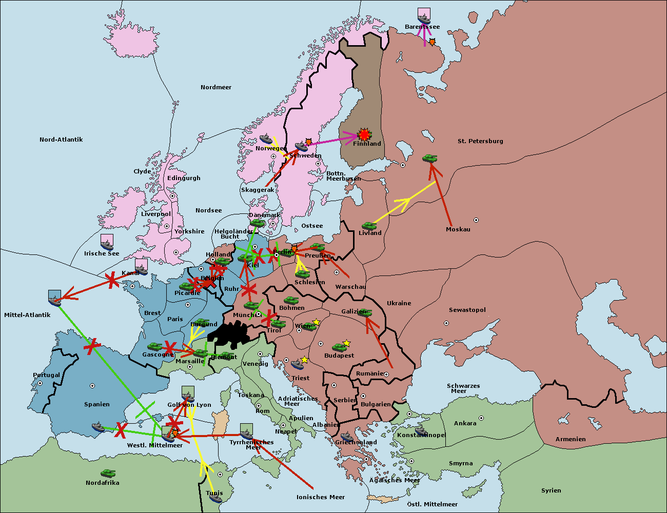 • Die Flotte in St. Petersburg (Nordküste) move nach Norwegen.