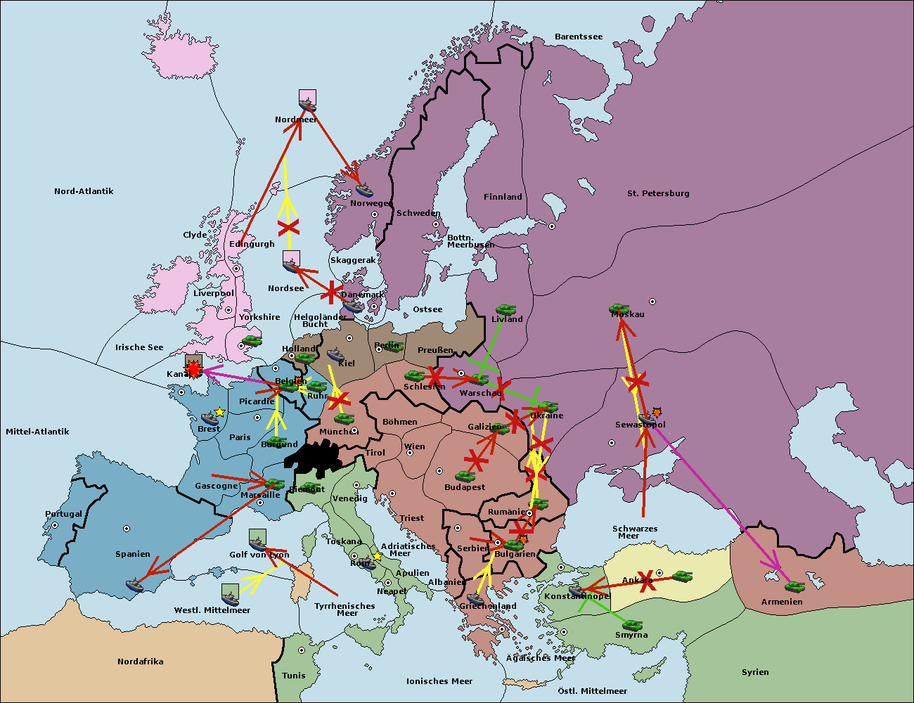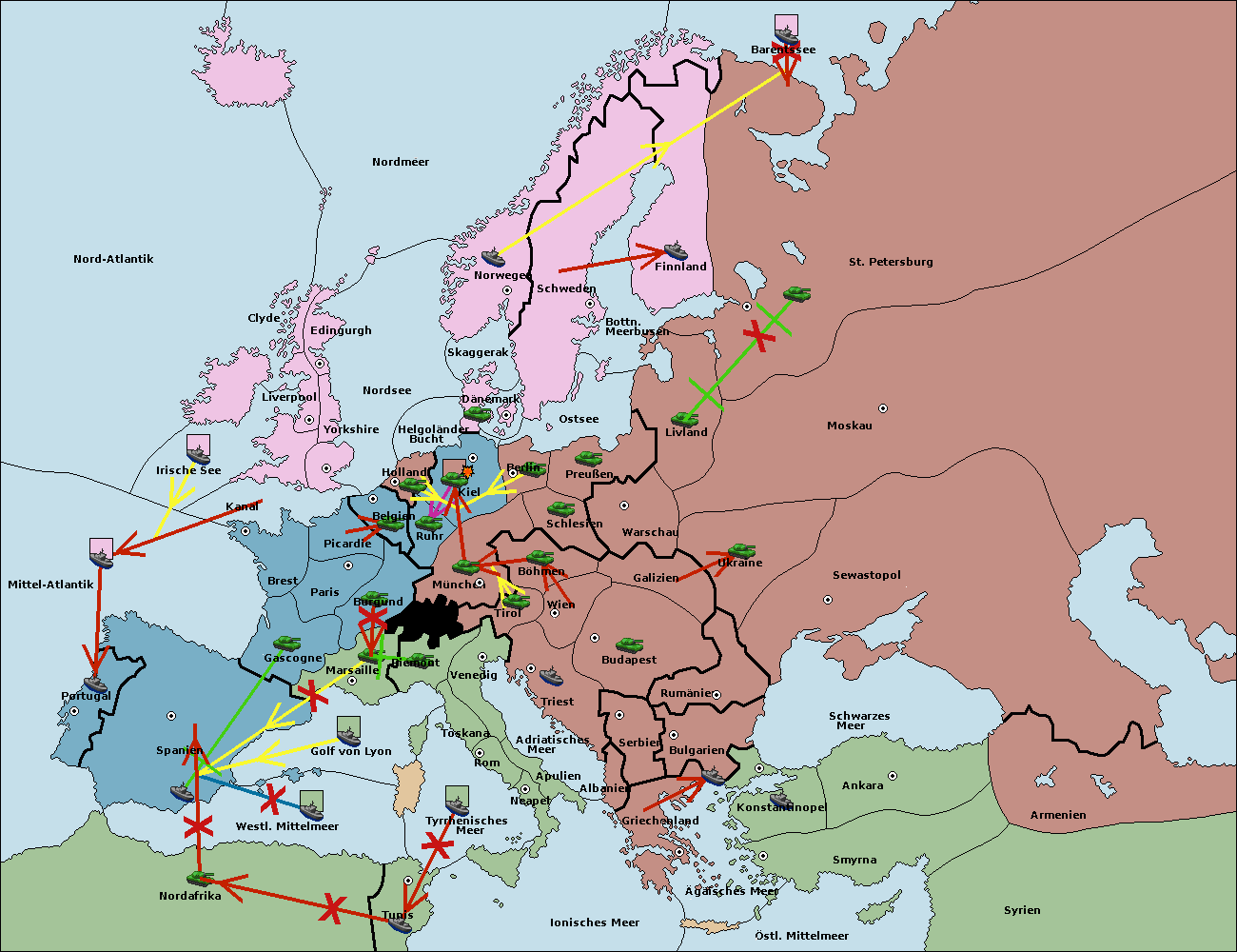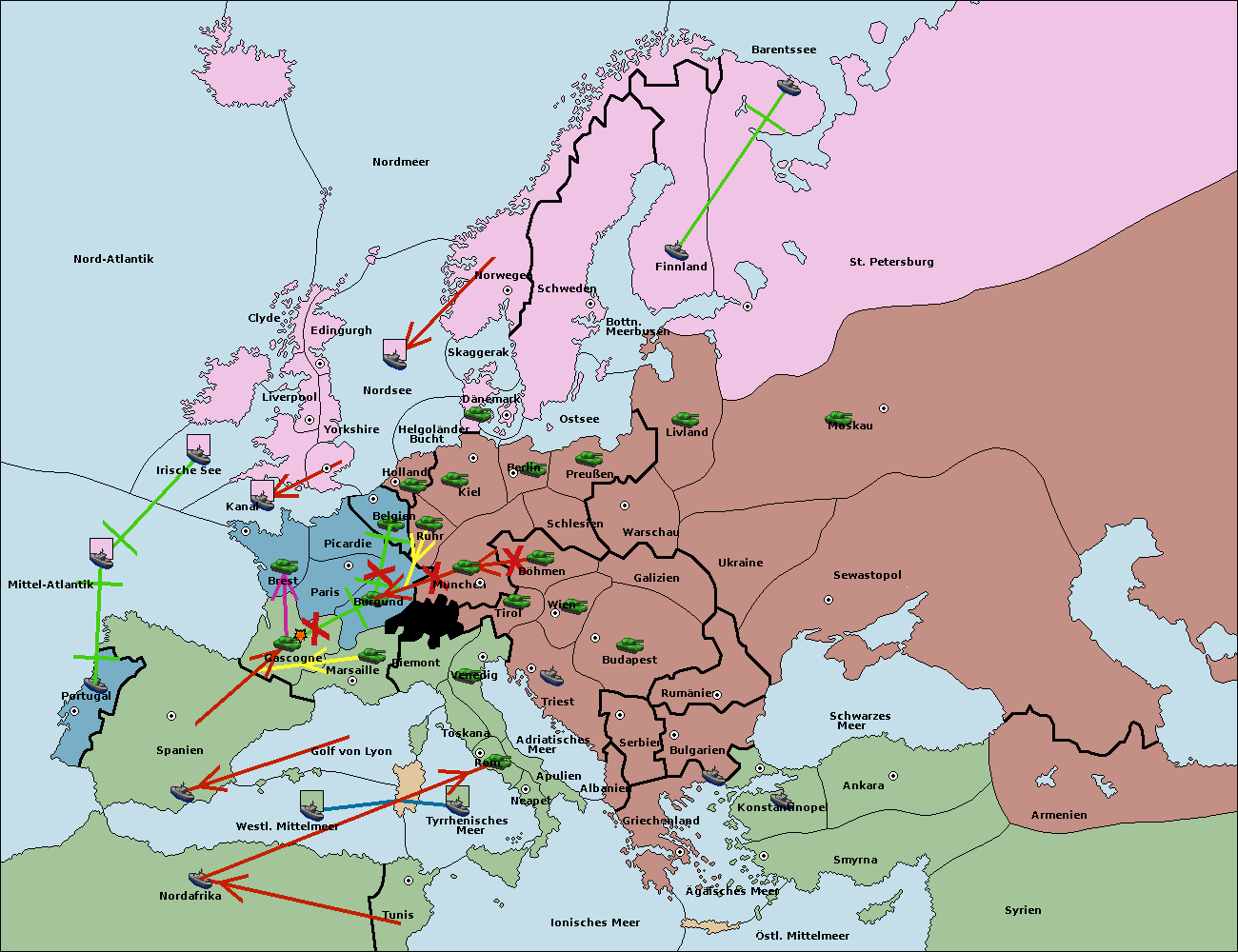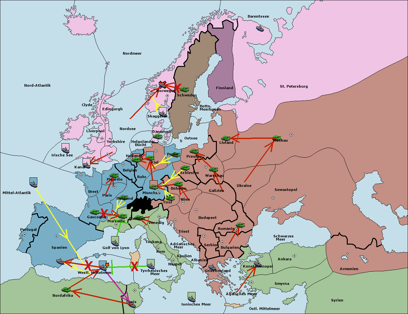 • Die Flotte in Tunis move nach Nord Afrika. (gescheitert)