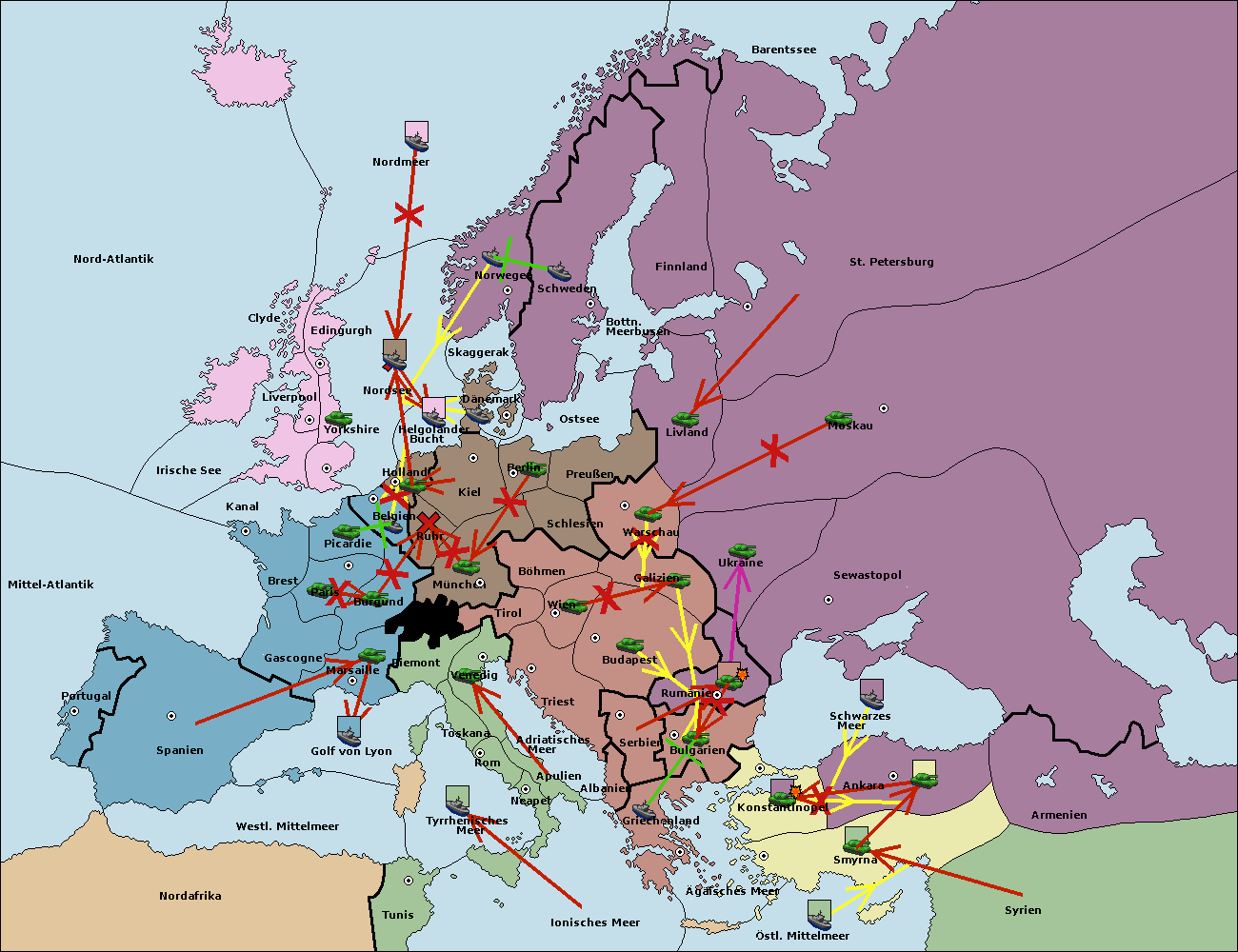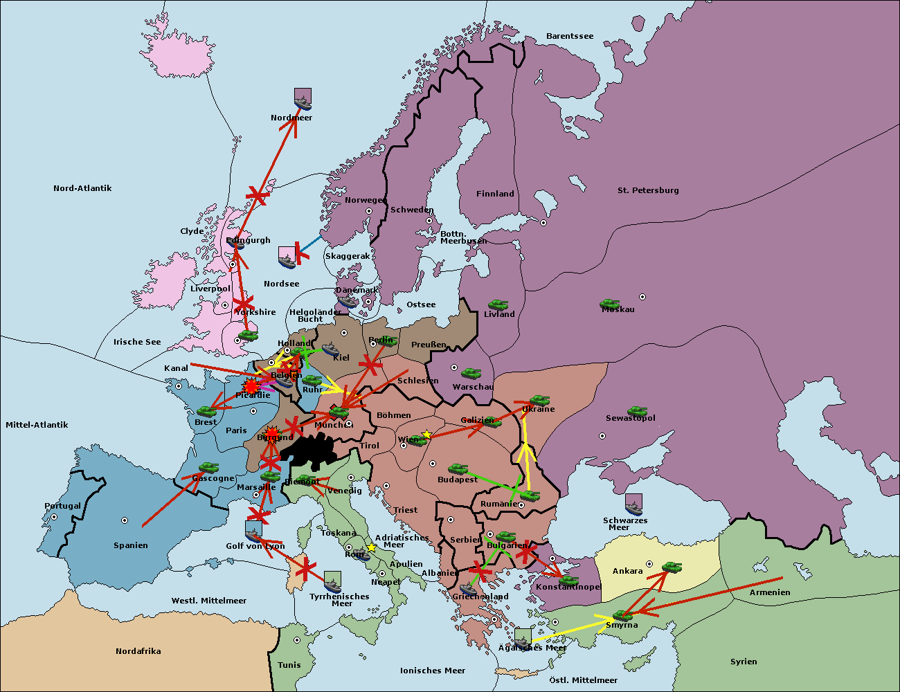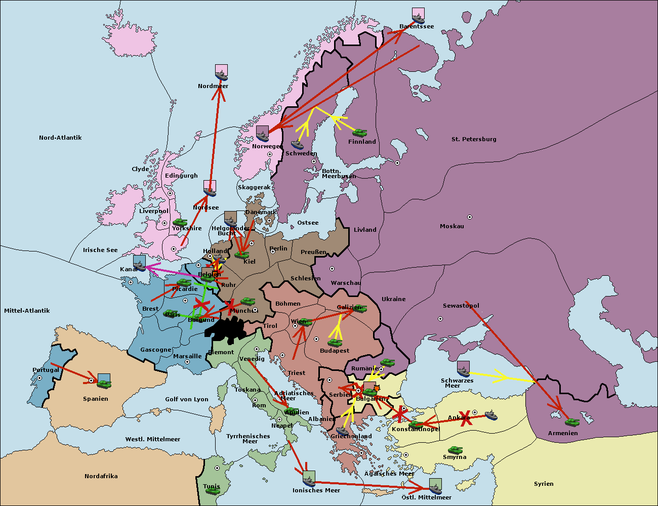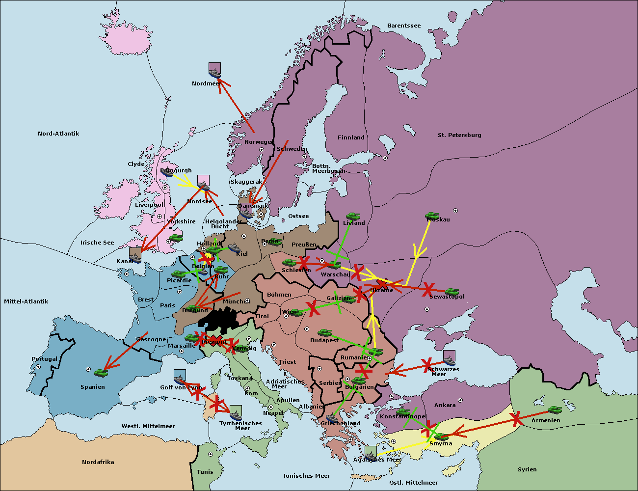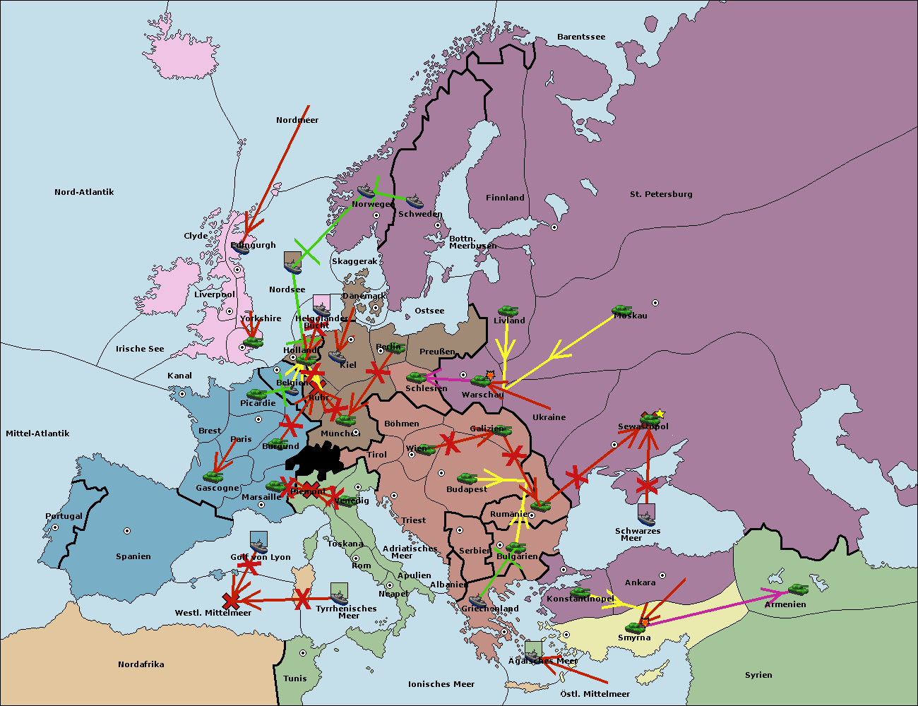 • Die Flotte in Tunis move nach Nord Afrika. (gescheitert)