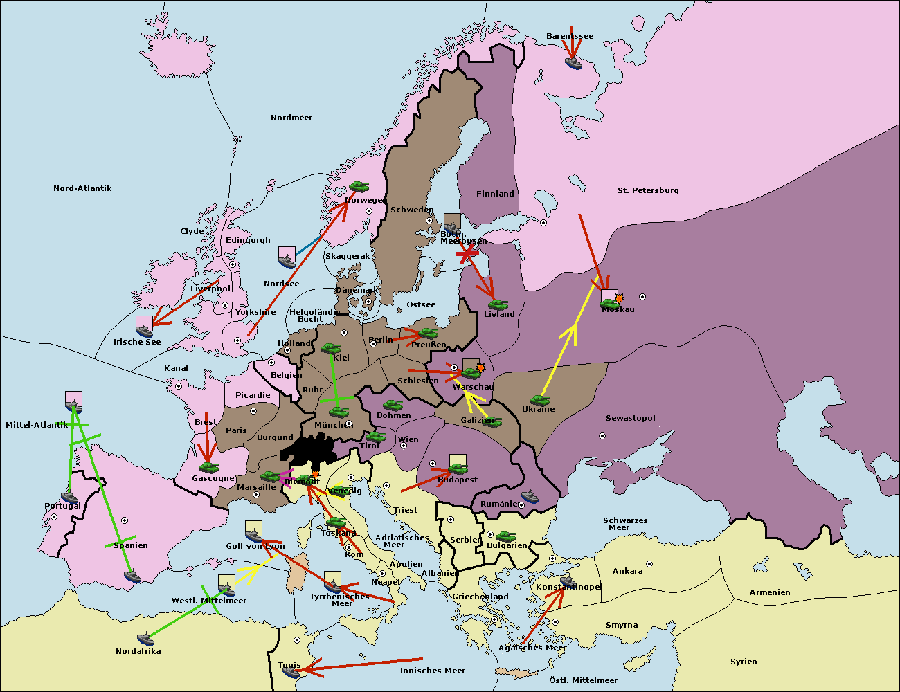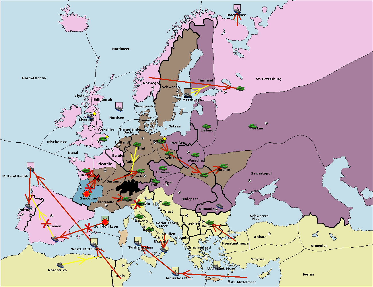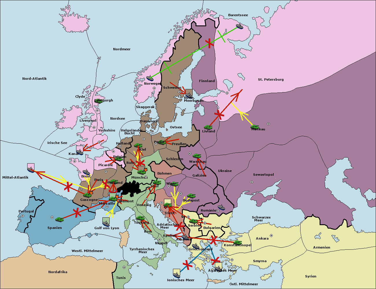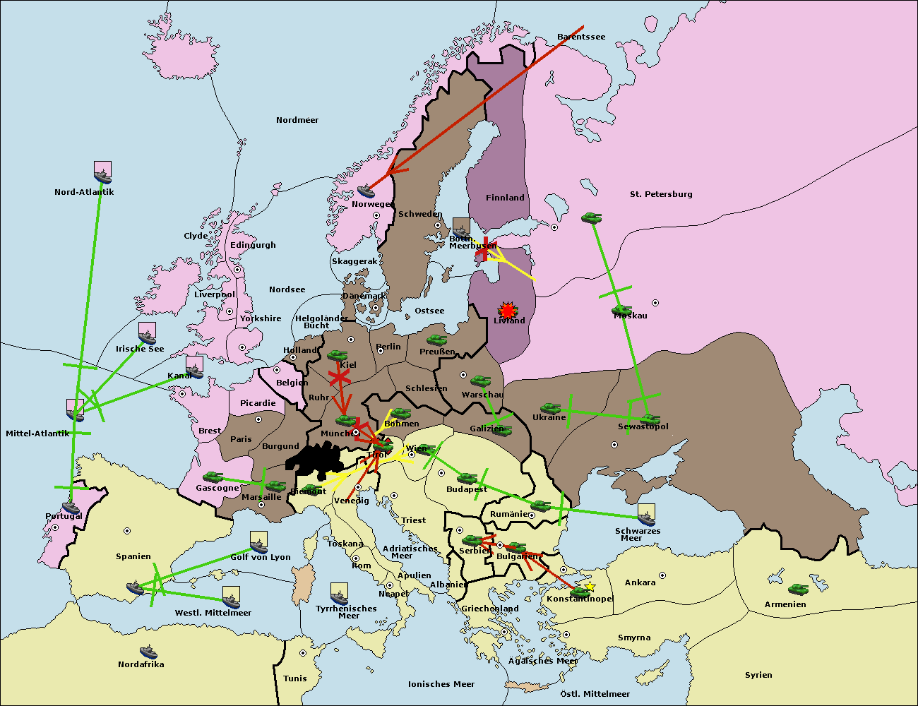 • Die Flotte in St. Petersburg (Nordküste) move nach Barentssee.