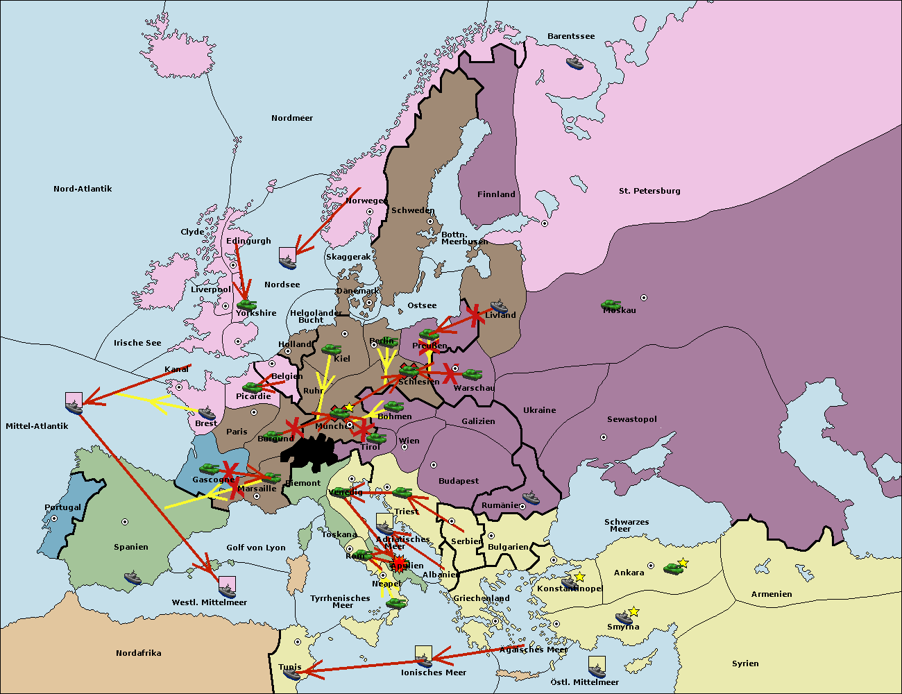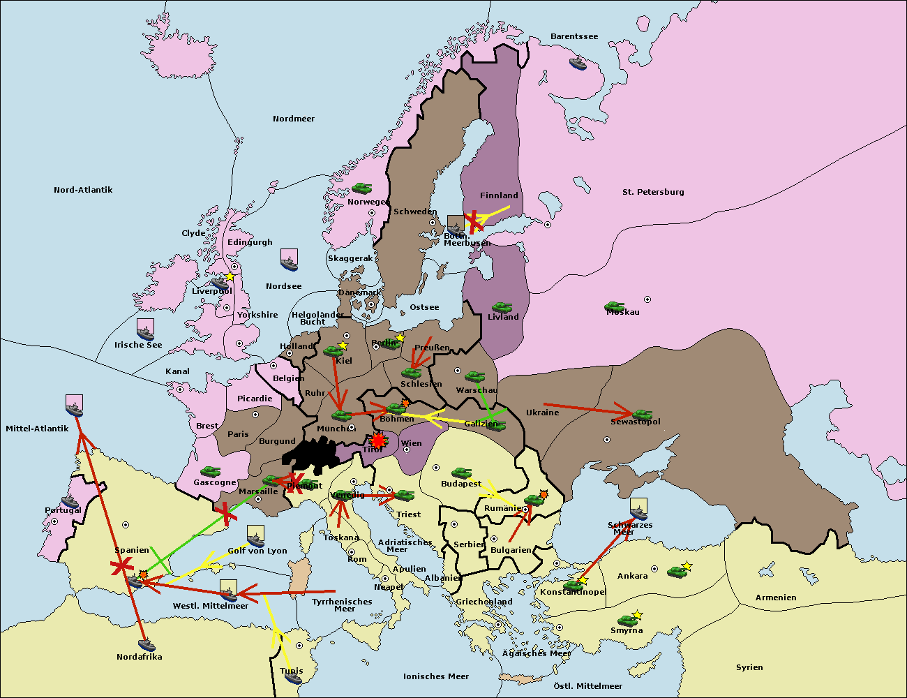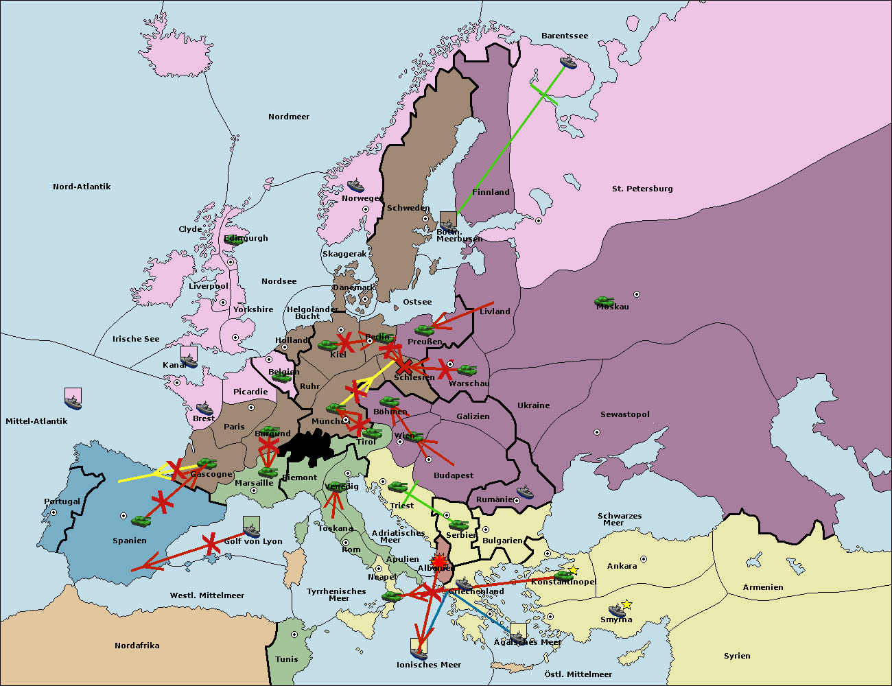 • Die Flotte in St. Petersburg (Nordküste) move nach Barentssee.