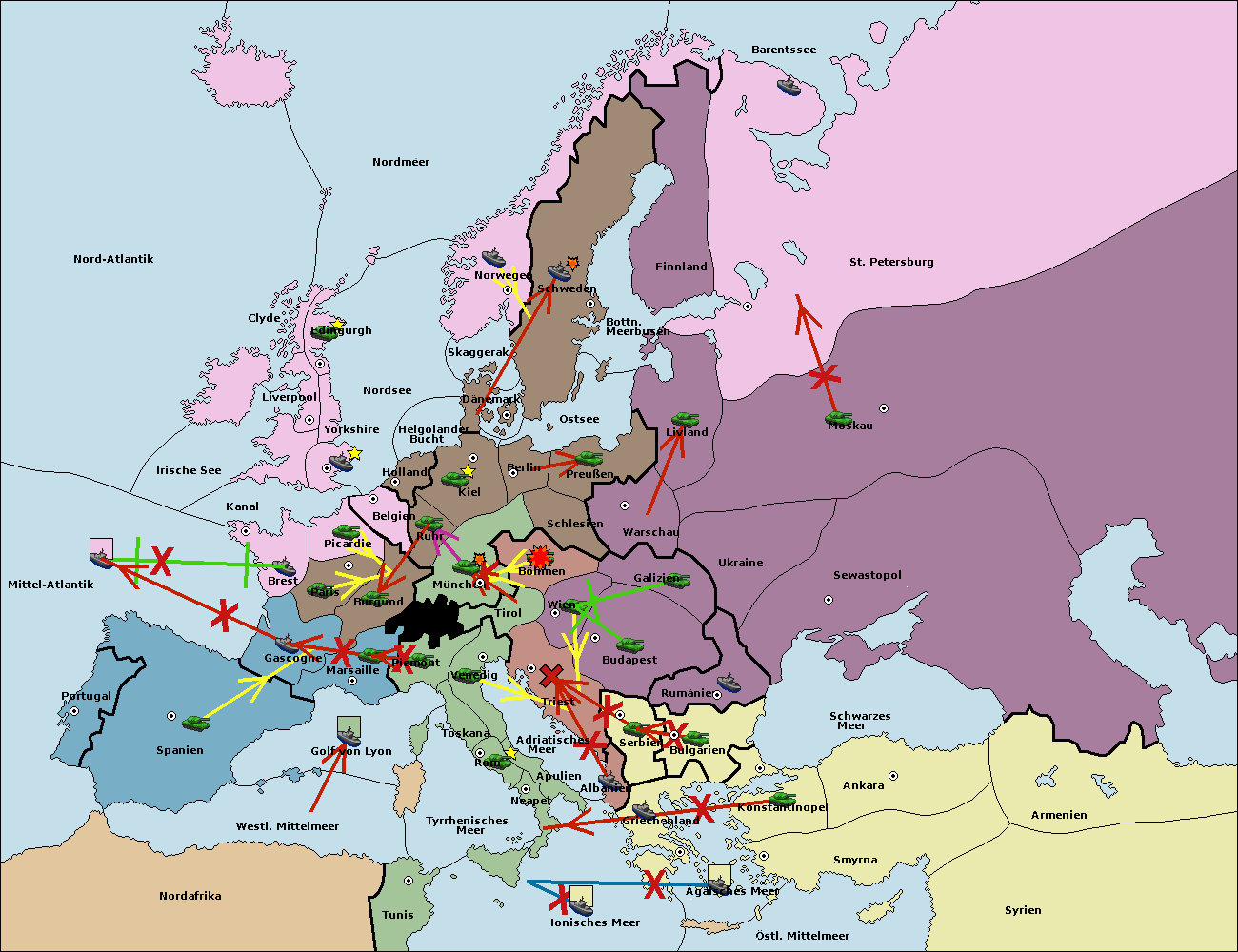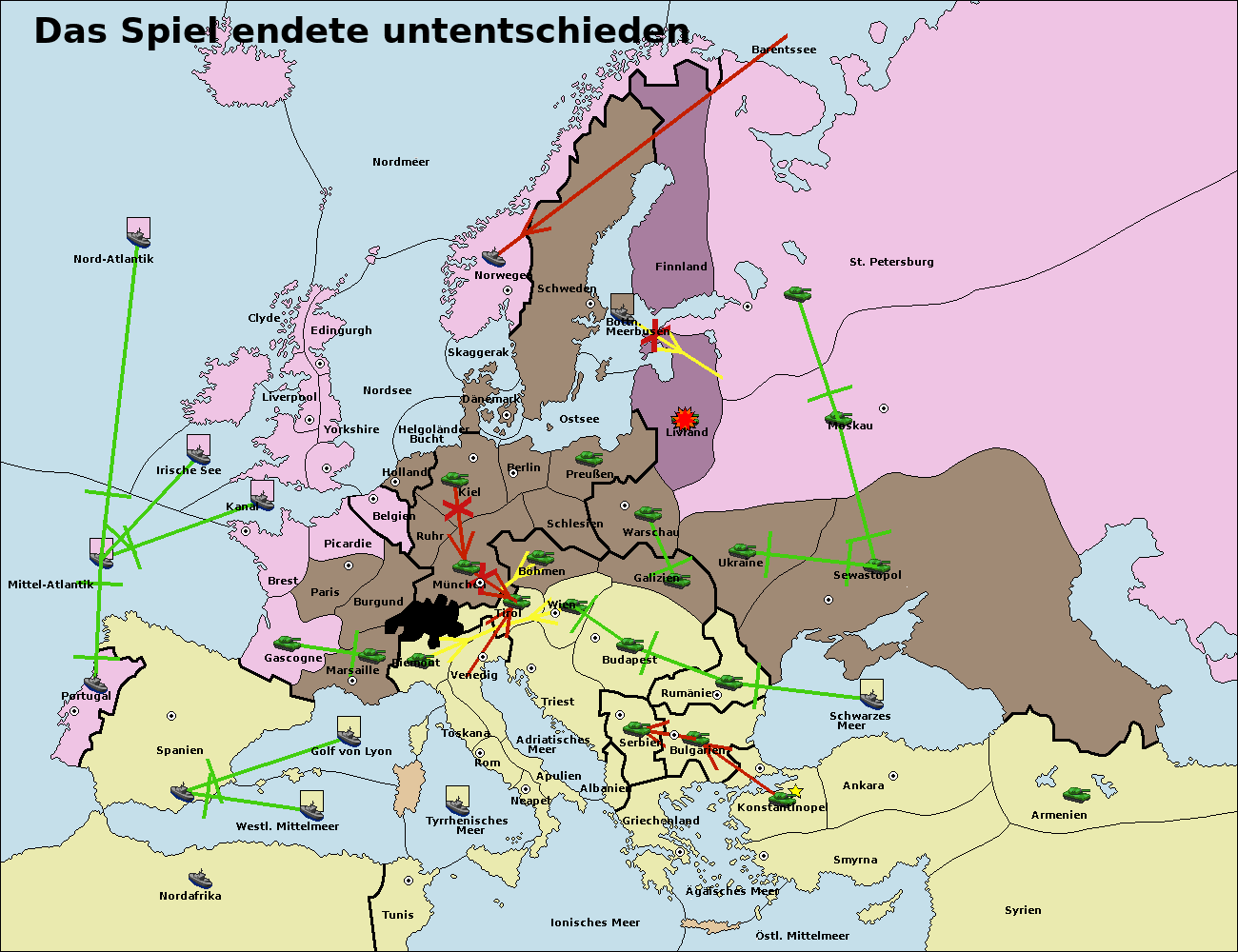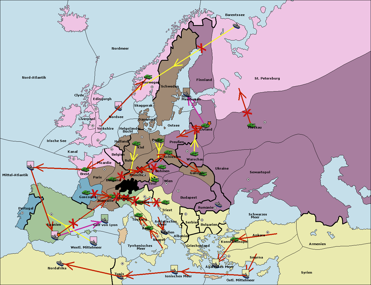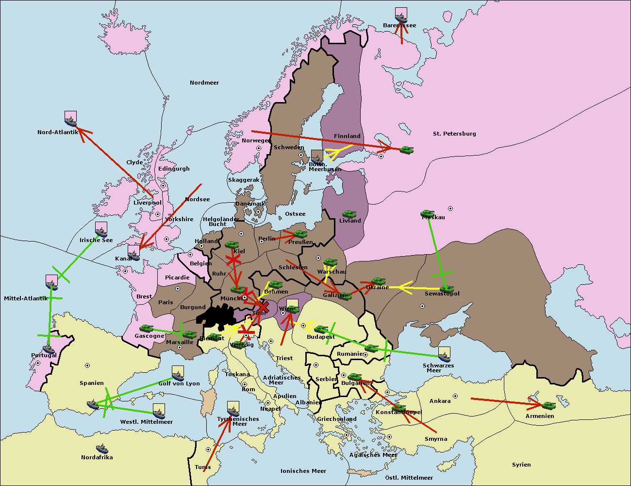 • Die Flotte in St. Petersburg (Nordküste) move nach Barentssee.