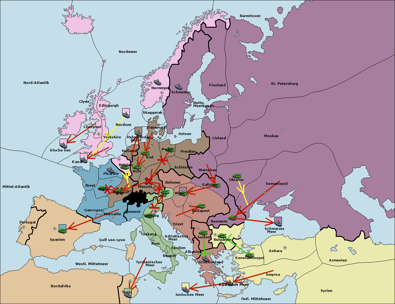 • Die Armee in München support move nach Burgund von Ruhr. (gescheitert)