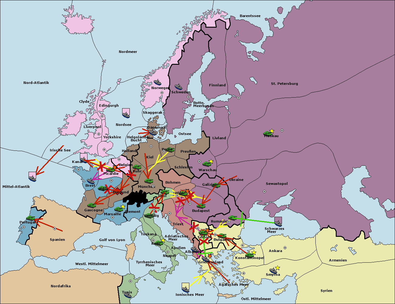 • Die Armee in Konstantinopel support hold nach Bulgarien.