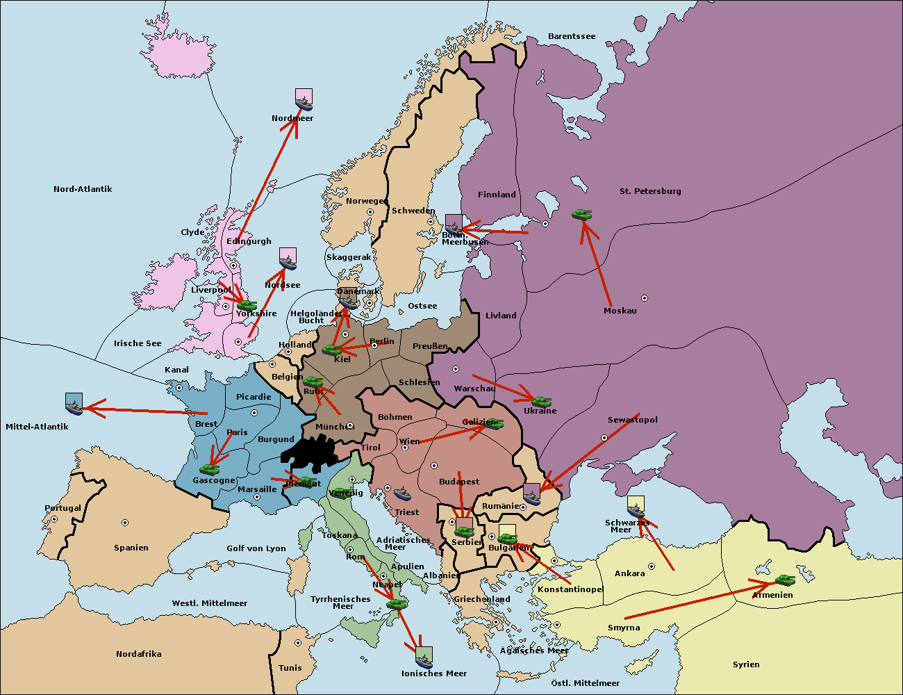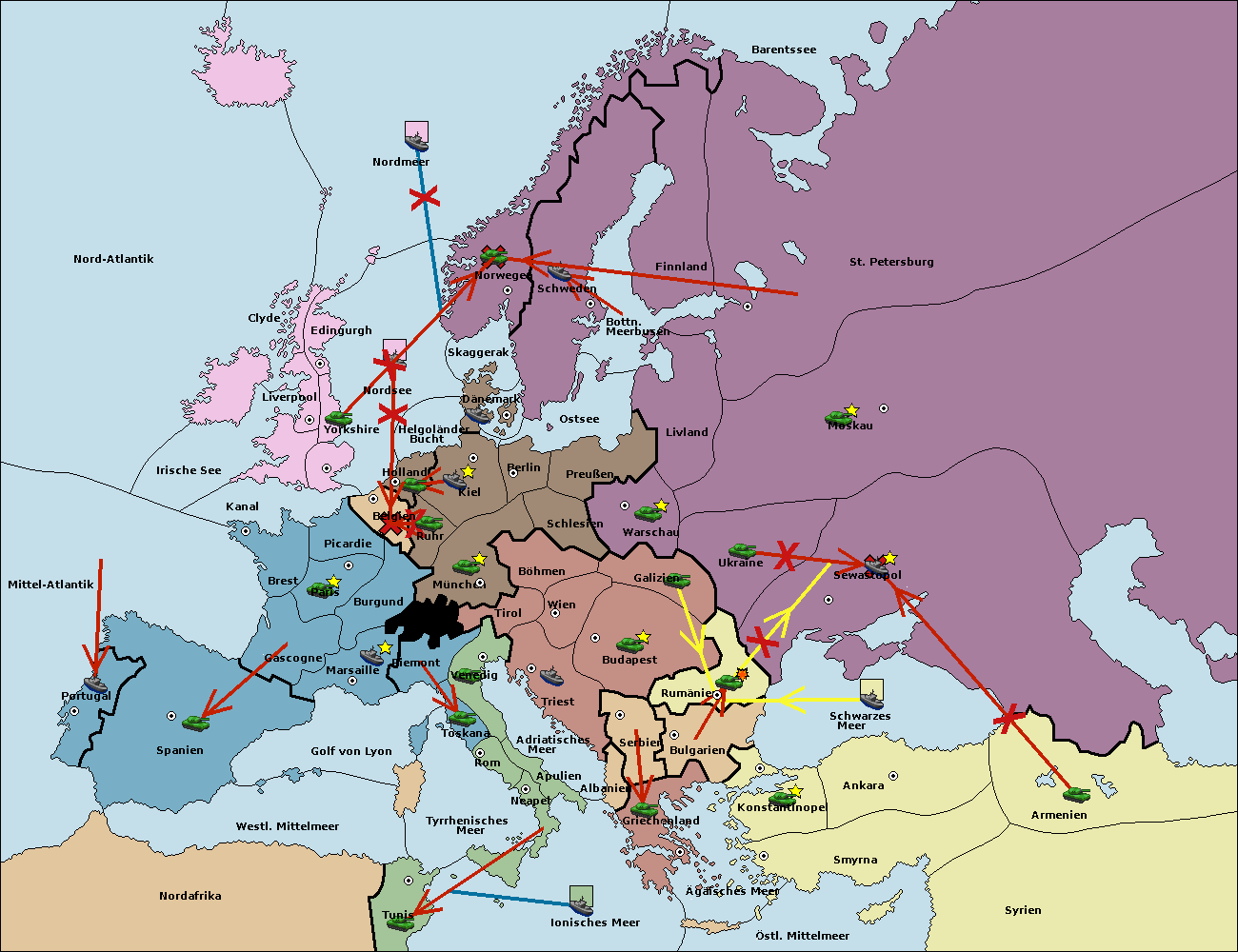 • Die Armee in Sewastopol support move nach Rumänien von Bulgarien. (gescheitert)