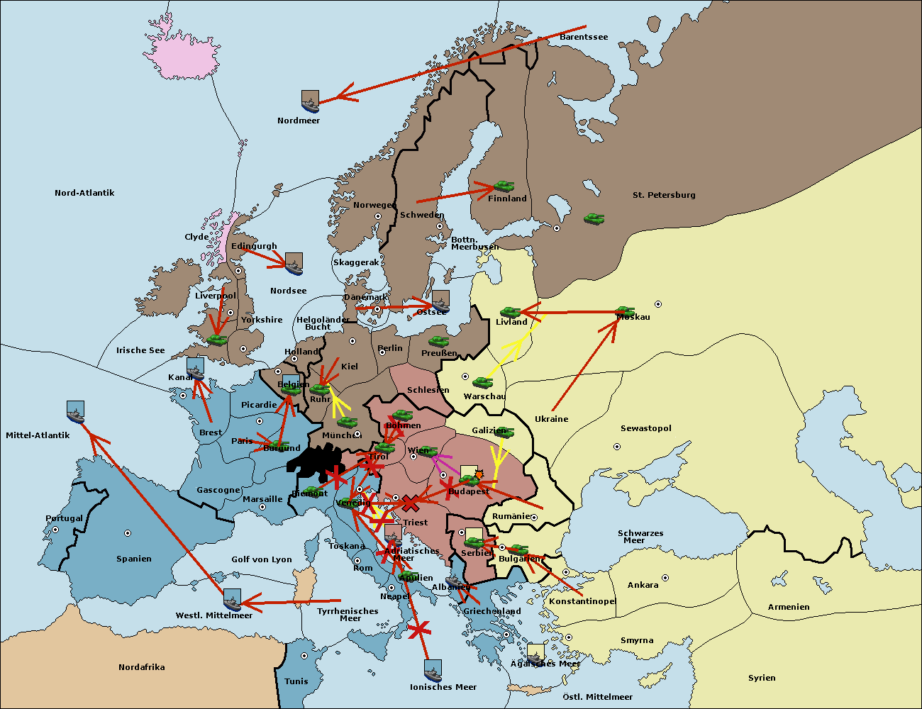 • Die Armee in Budapest support hold nach Galizien. (gescheitert)