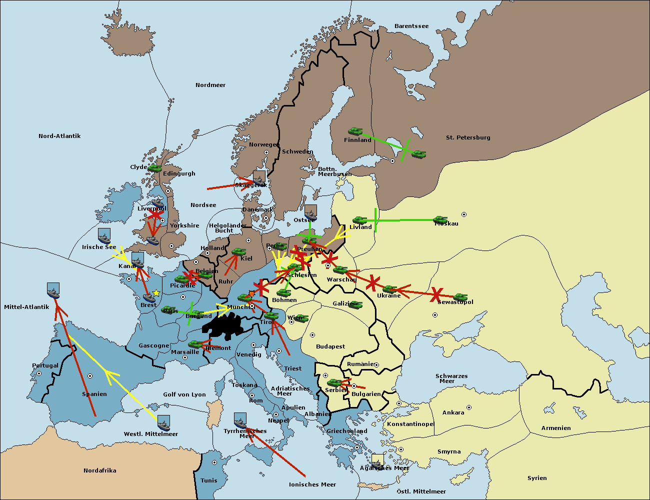 • Die Armee in Berlin wird zerstörtFlotte in Berlin gebaut.
