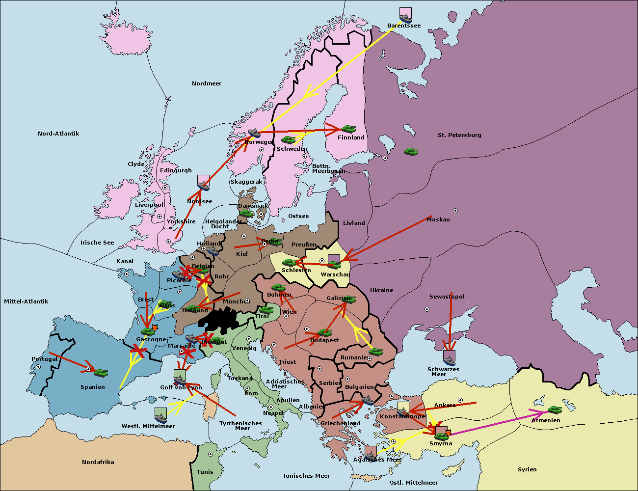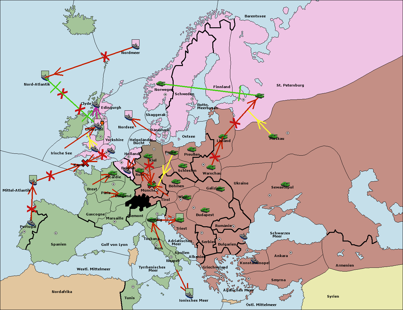 • Die Flotte in Barentssee move nach St. Petersburg (Nordküste). (gescheitert)