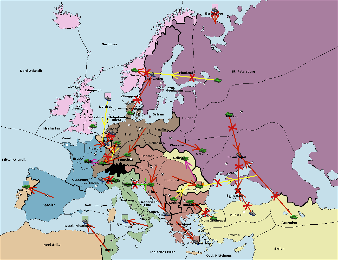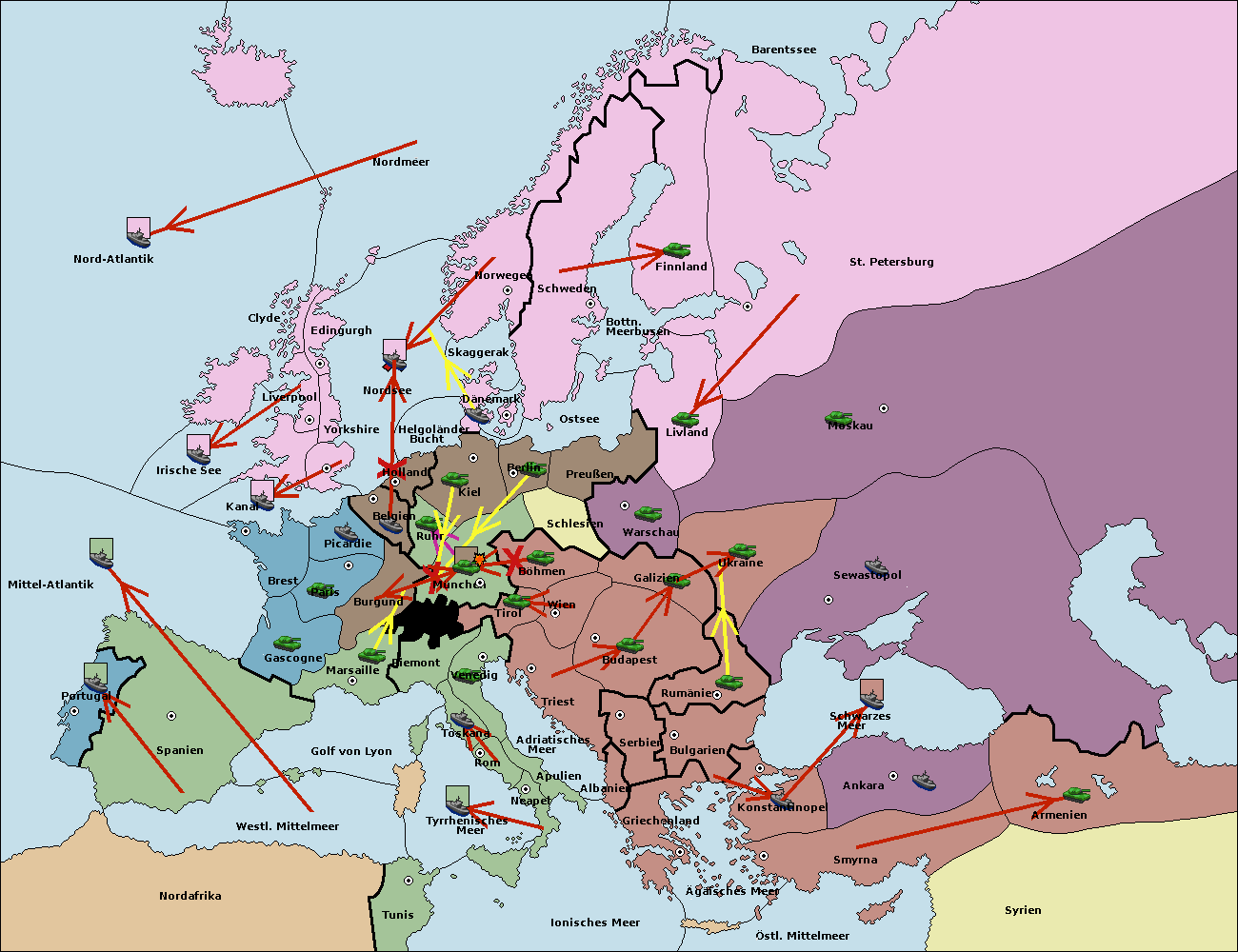 • Die Armee in Belgien support move nach Burgund von München. (gescheitert)
