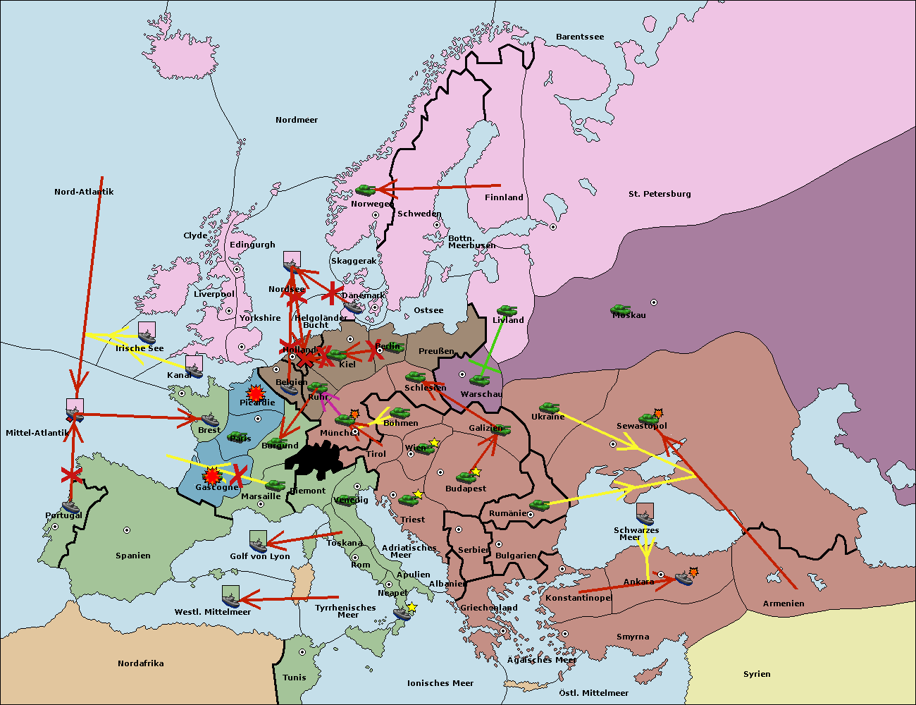 • Die Flotte in Belgien support move nach Holland von Nordsee. (gescheitert) (verdrängt)