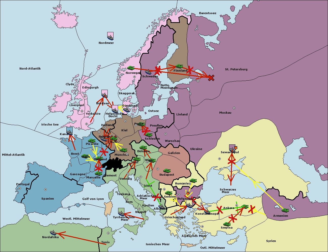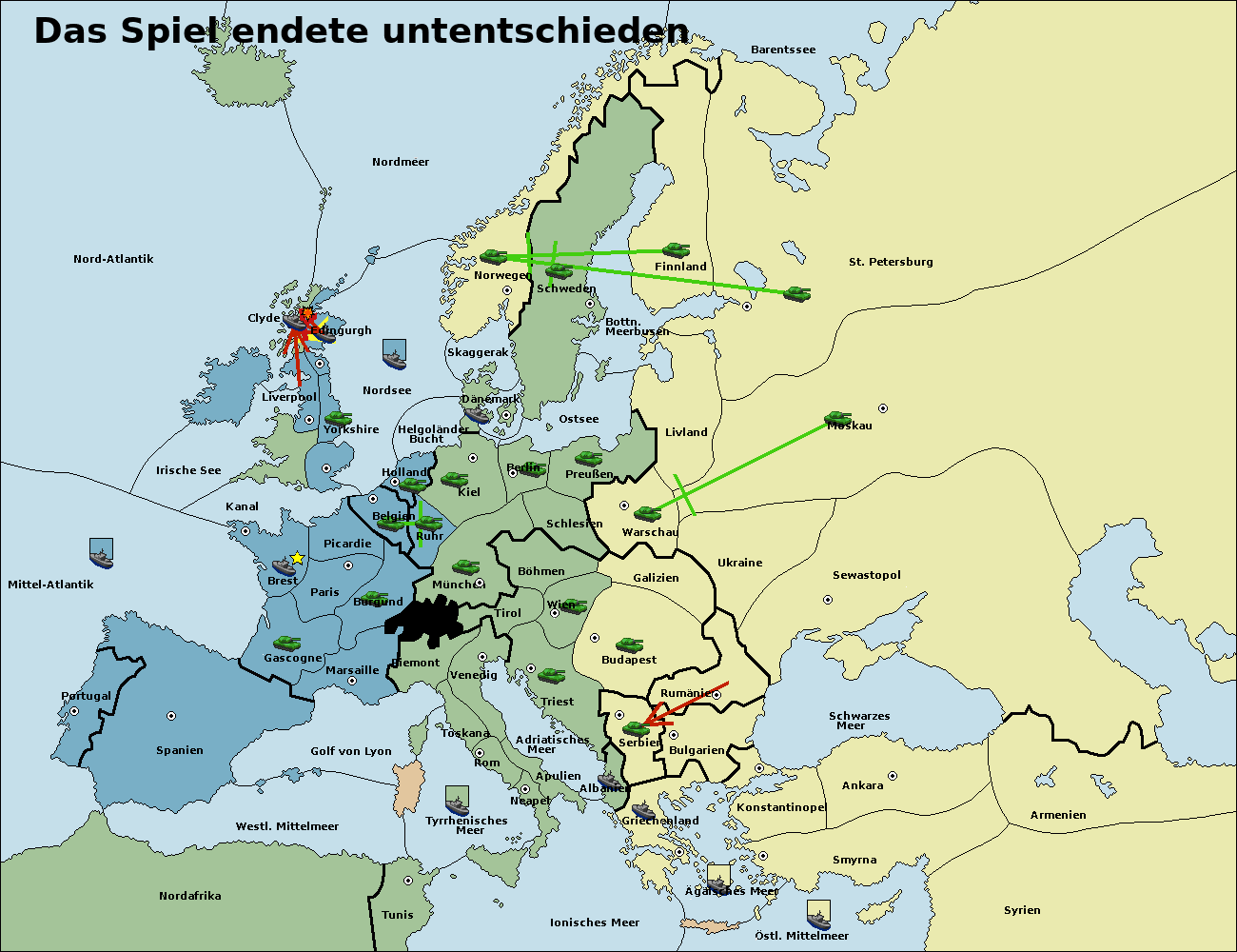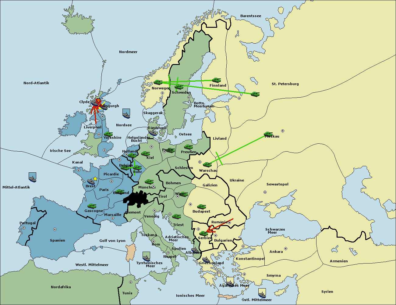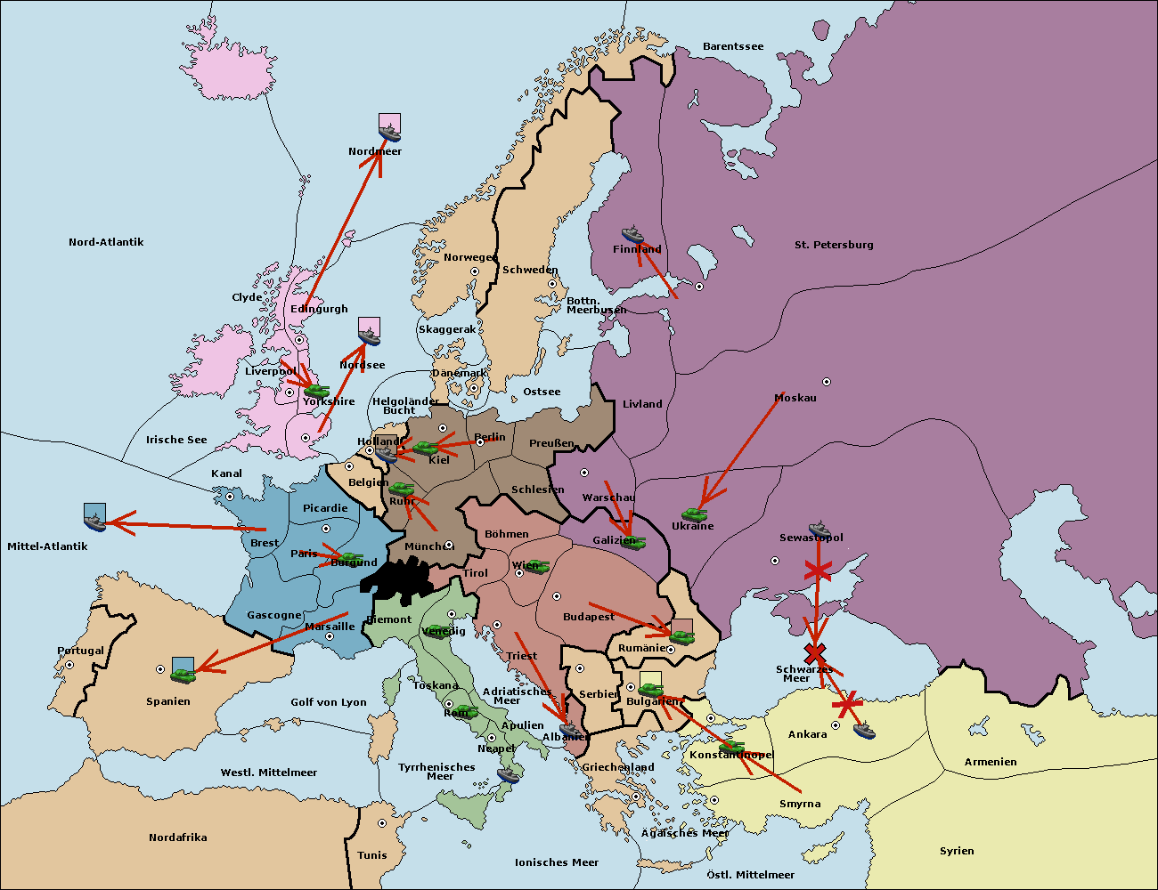 • Die Armee in Bulgarien wird zerstörtFlotte in Bulgarien gebaut.