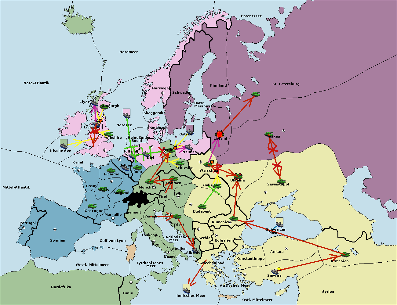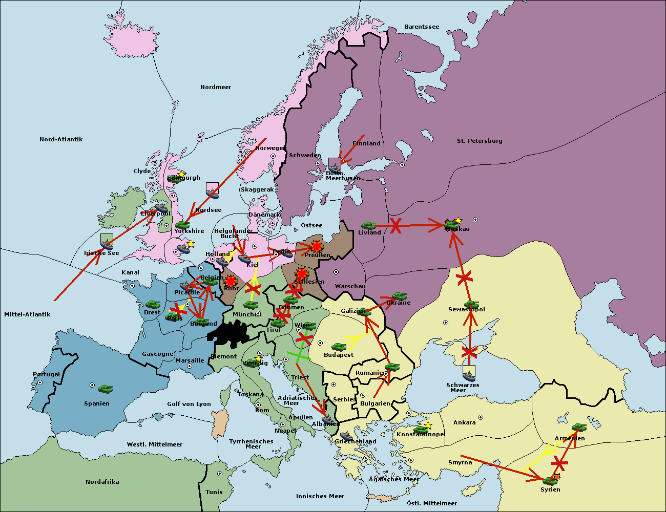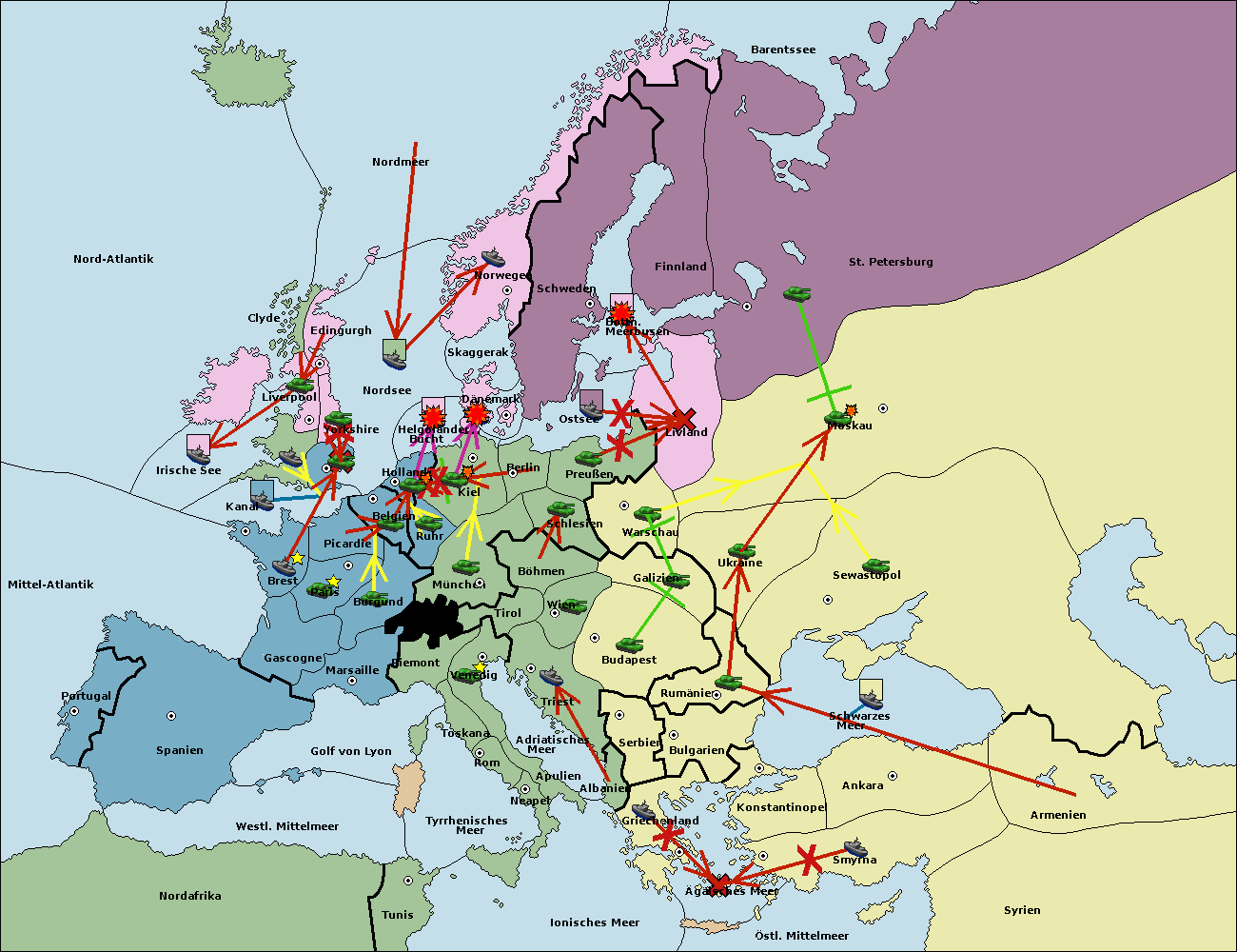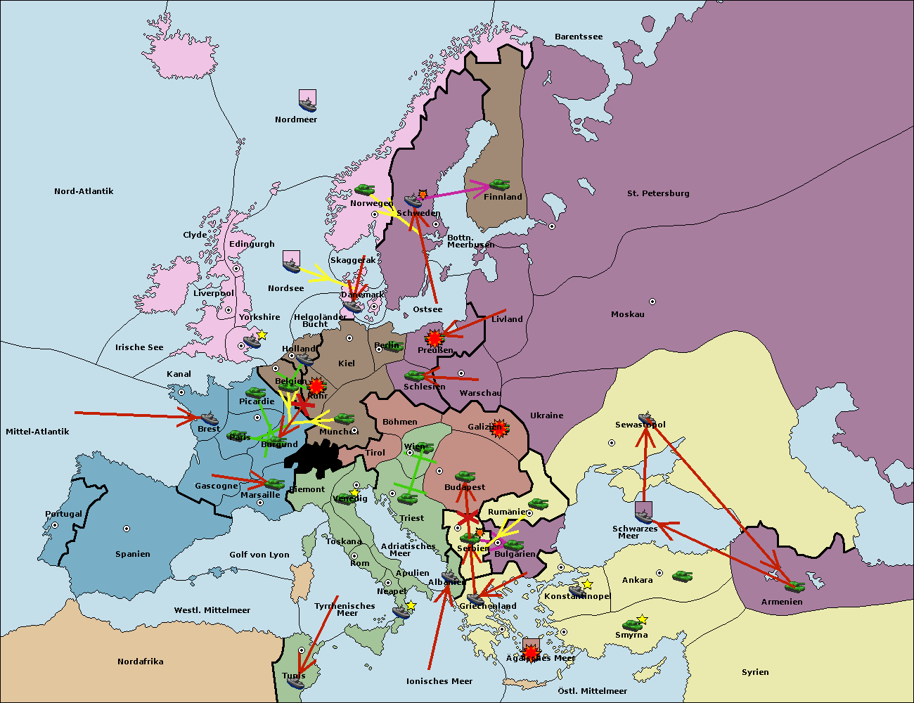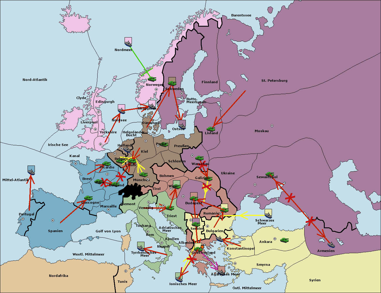 • Die Armee in Bulgarien wird zerstörtFlotte in Bulgarien gebaut.
