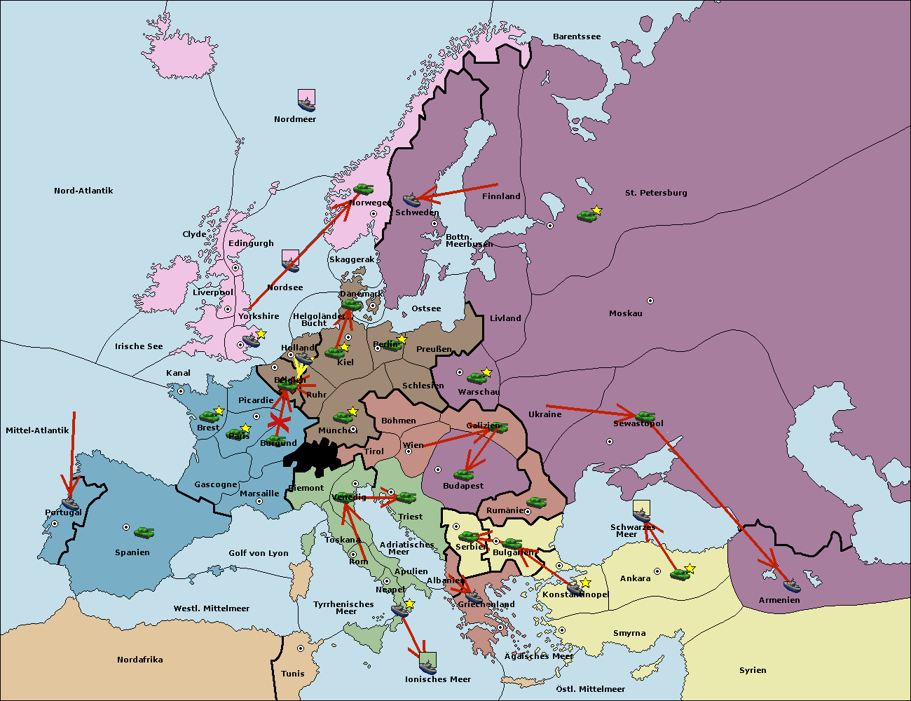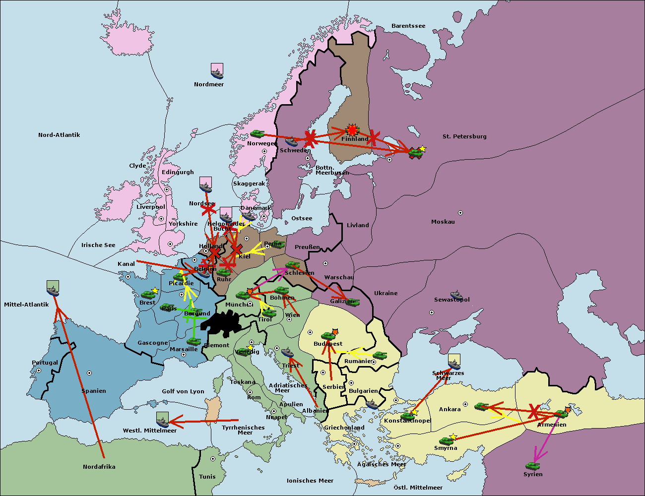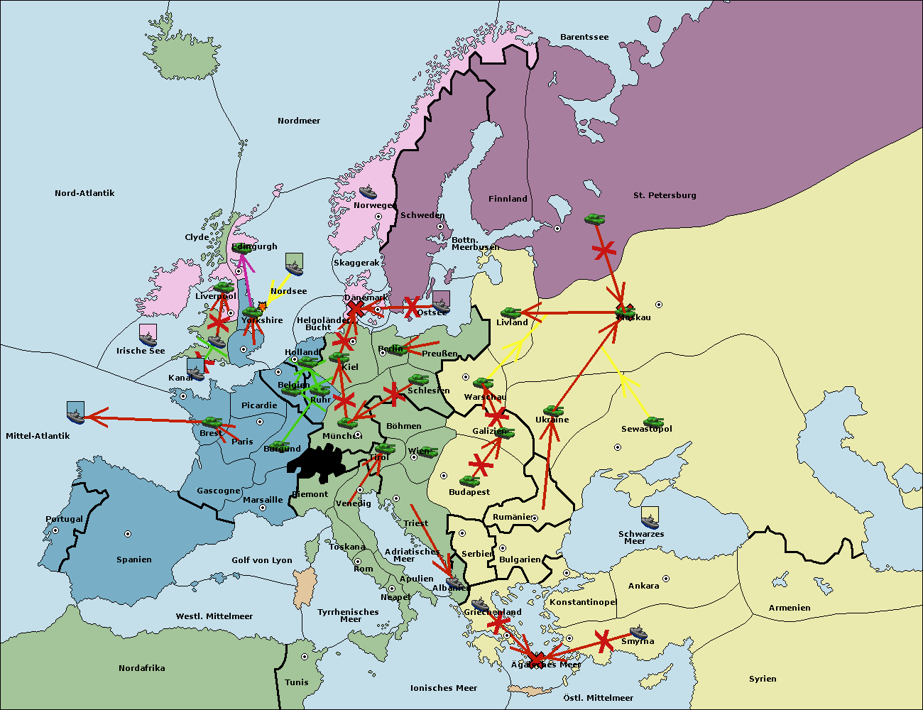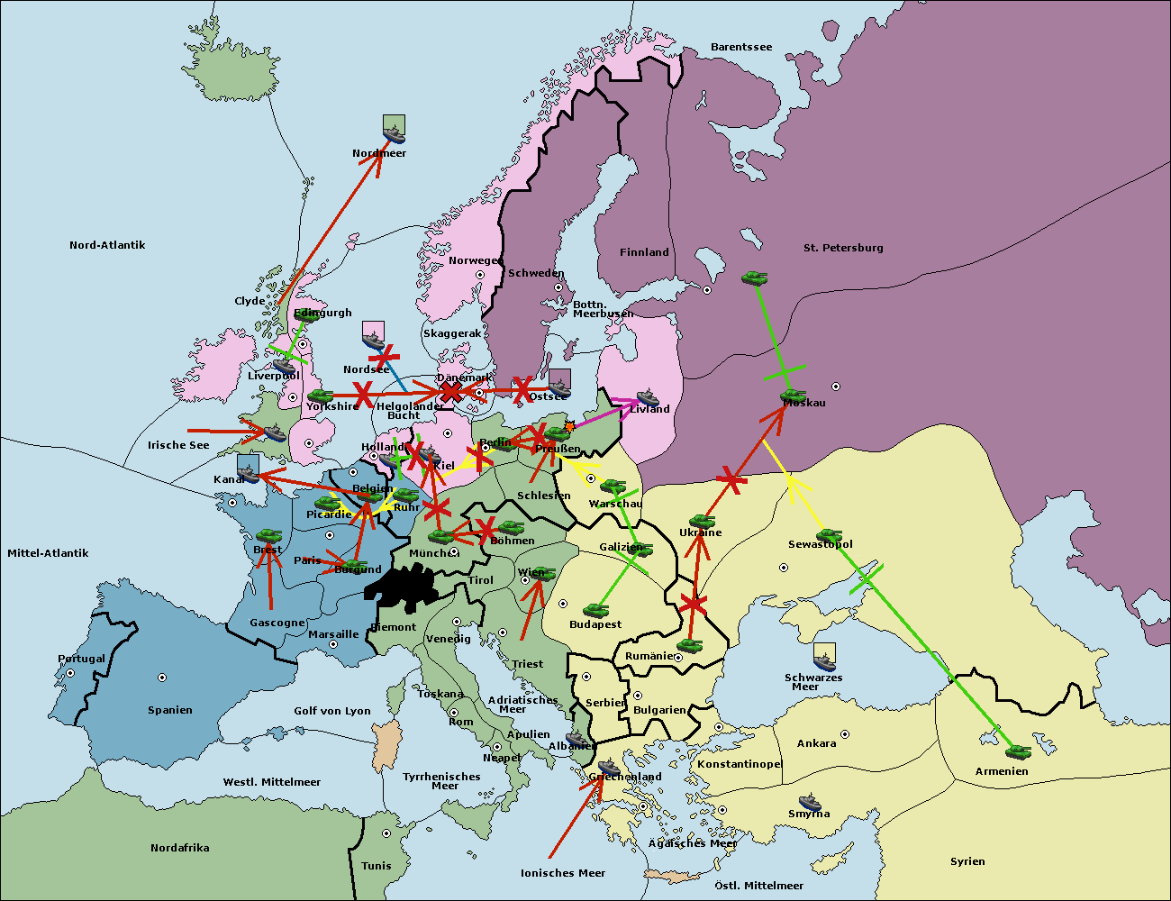 • Die Armee in Bulgarien wird zerstörtFlotte in Bulgarien gebaut.