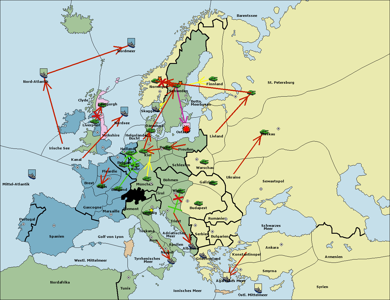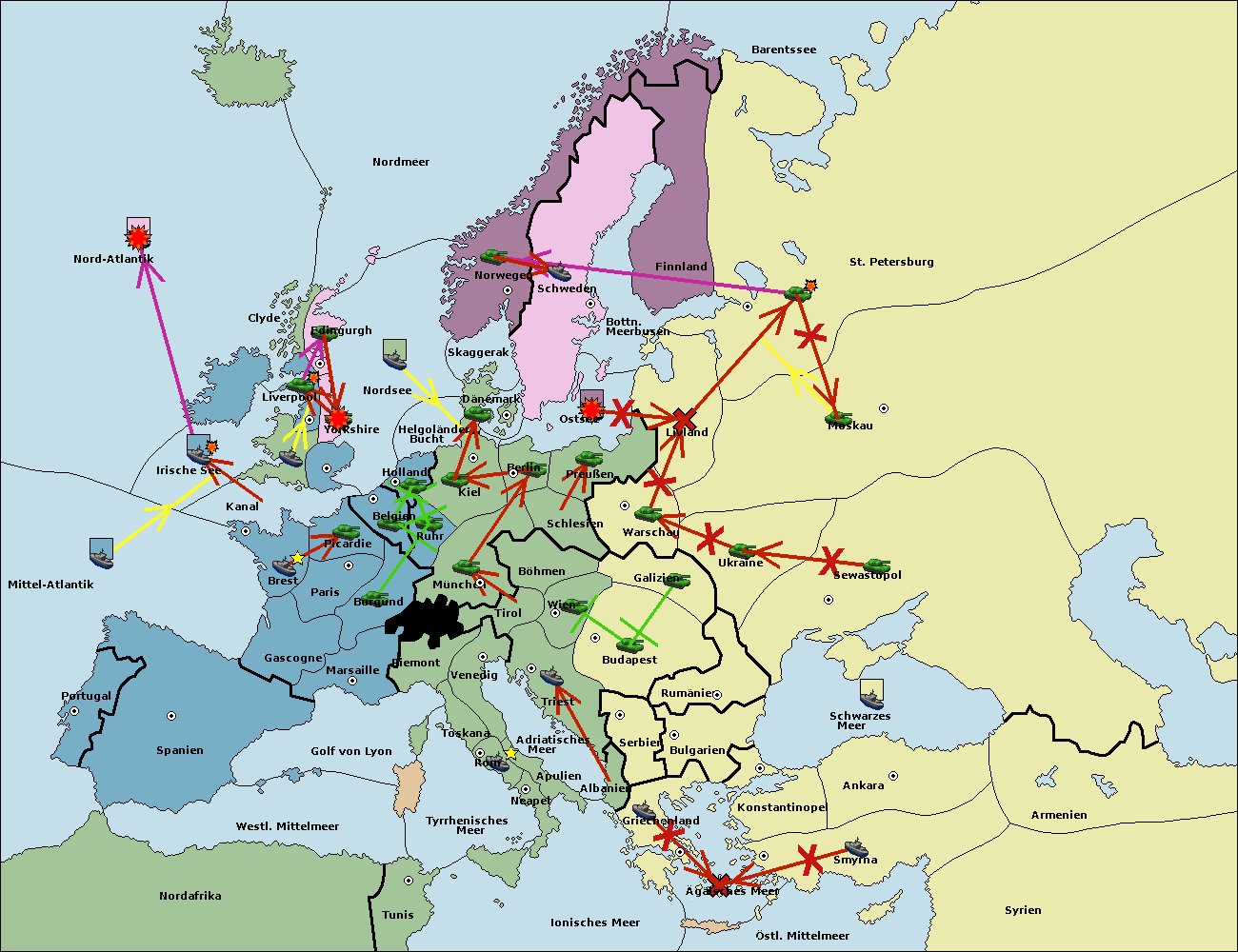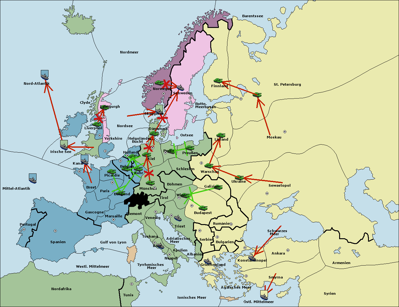 • Die Flotte in St. Petersburg (Südküste) move nach Finnland.