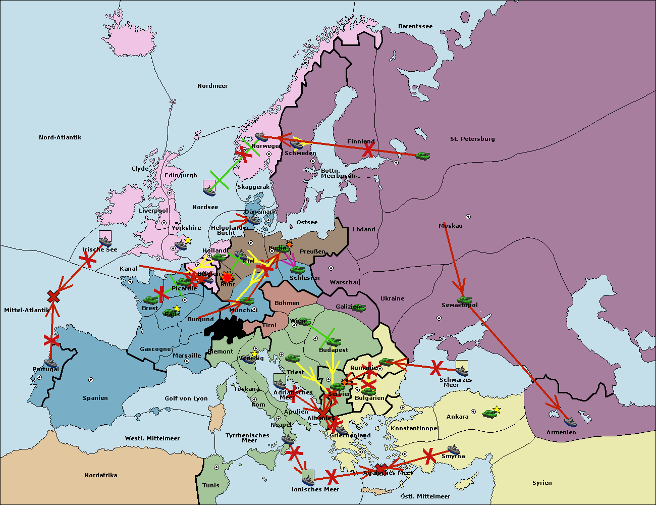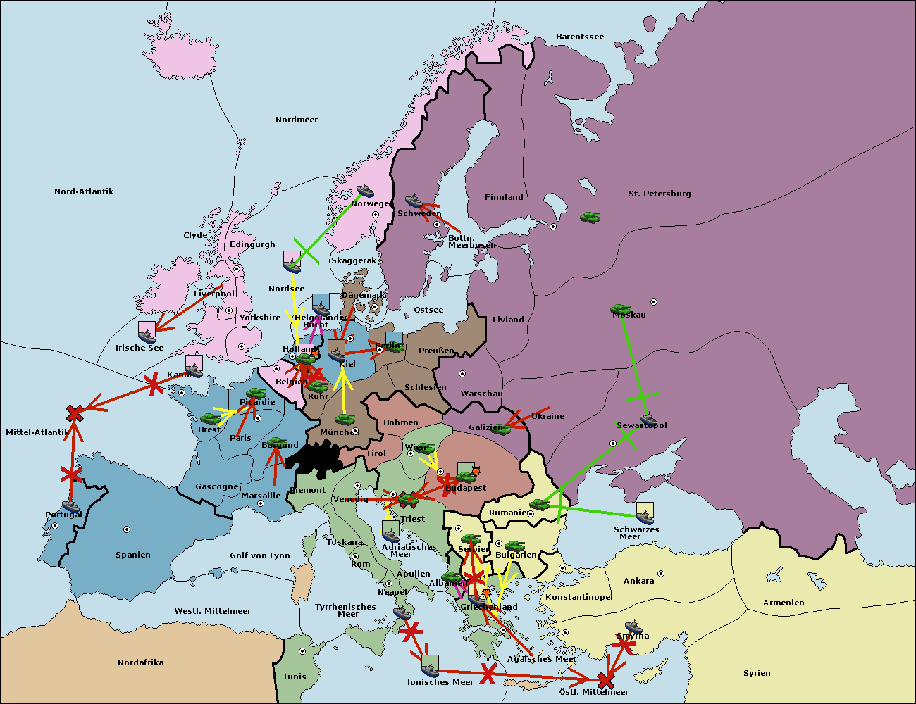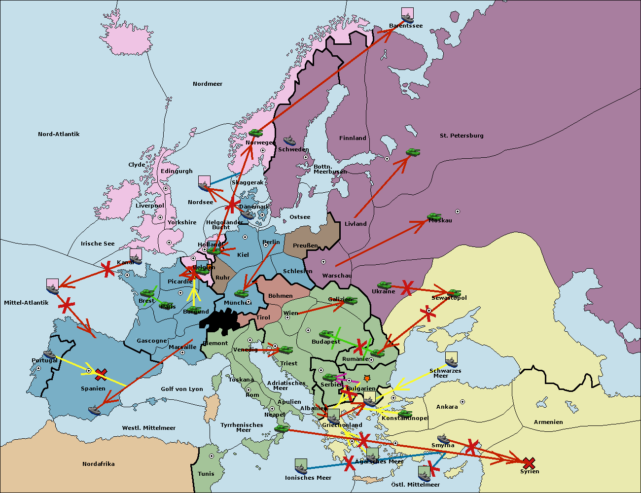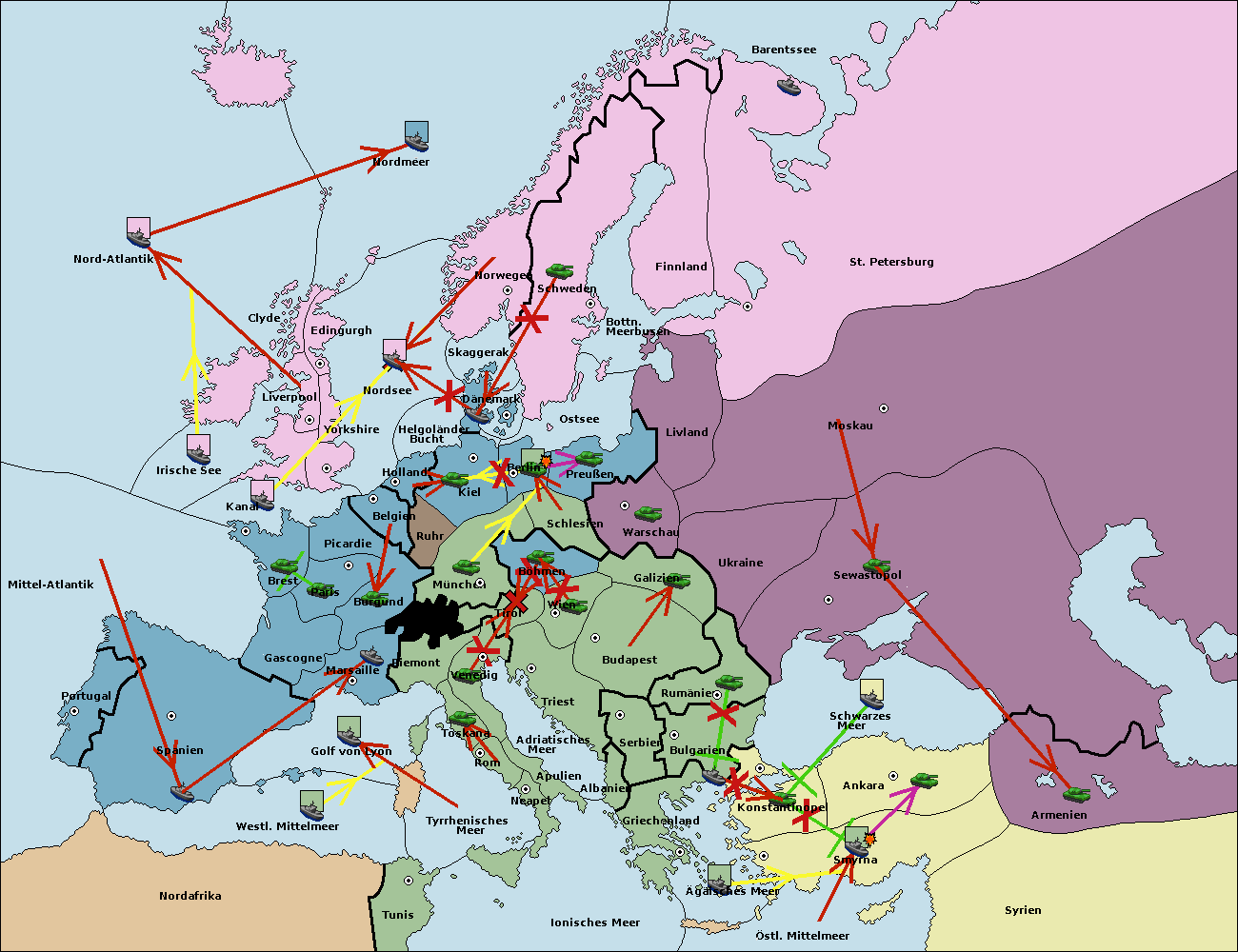 • Die Armee in Kiel support move nach München von Berlin. (gescheitert)